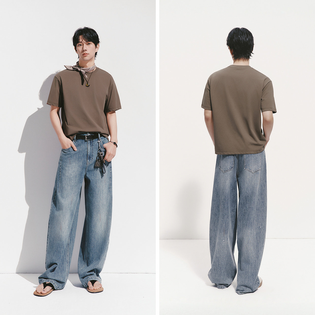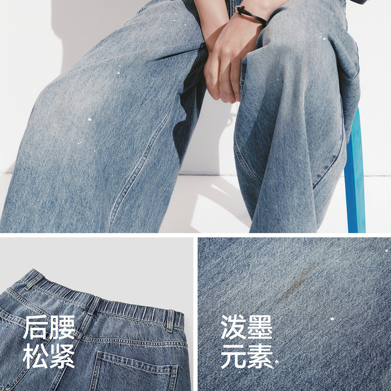 【王安宇同款】森马牛仔裤男夏宽松弧形弯刀裤2026款泼墨水洗裤子