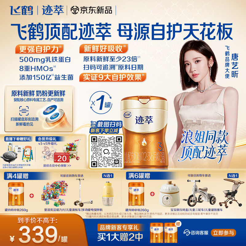 飞鹤迹萃专利母源自护幼儿配方奶粉3段(12-36月龄)750g乳铁蛋白8HMOs