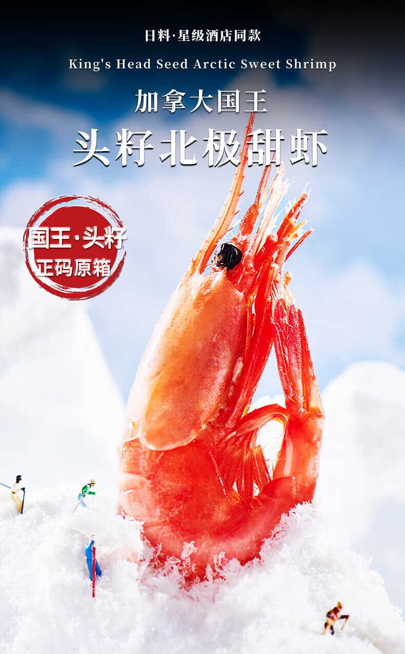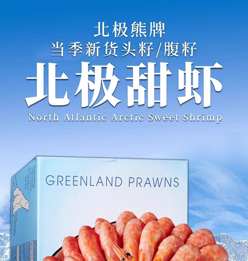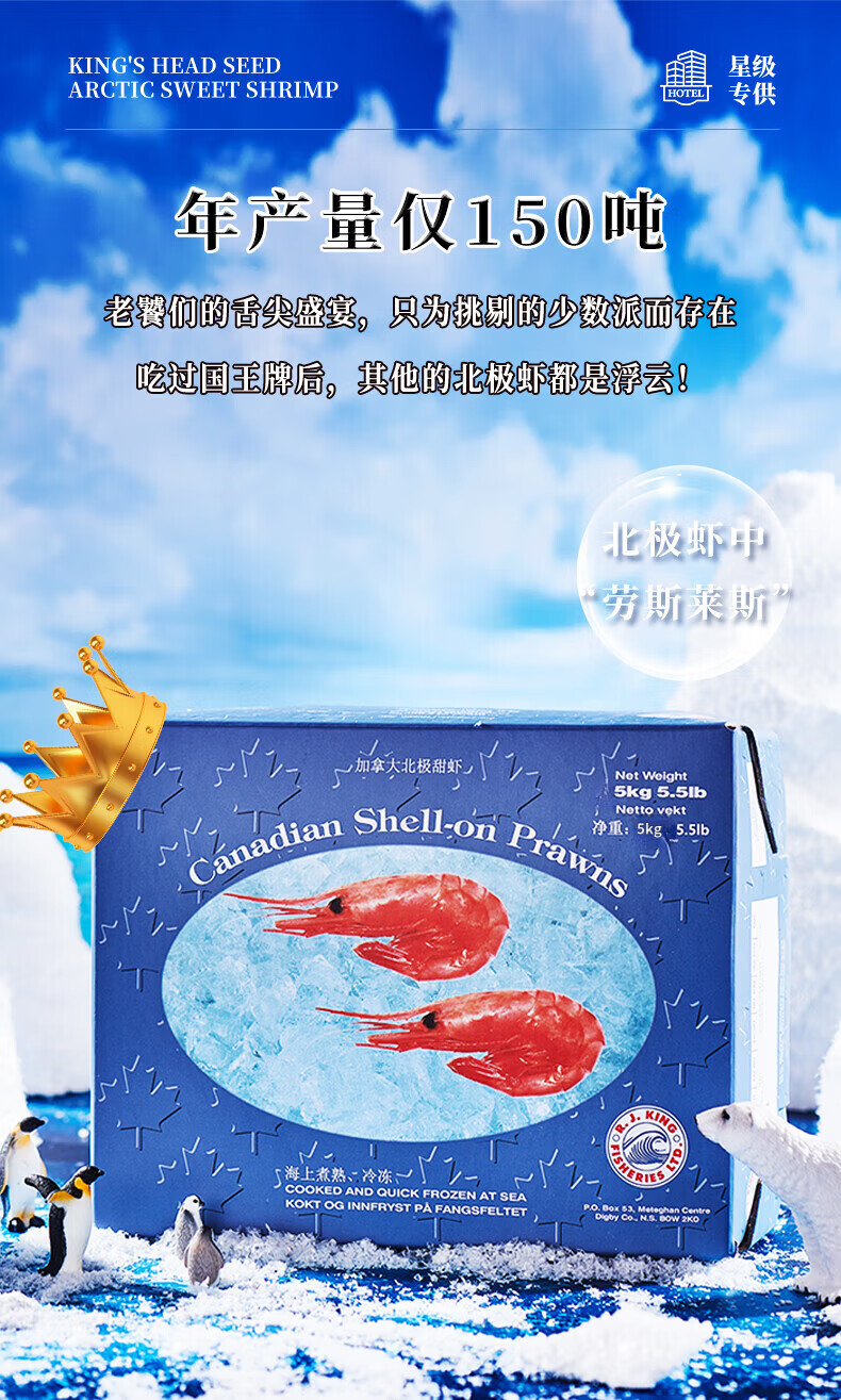 大号北极甜虾头籽冰虾新货北极熊甜虾国王北极甜虾10斤原箱原盒 国王北极甜虾原盒70-90 10斤(净重)