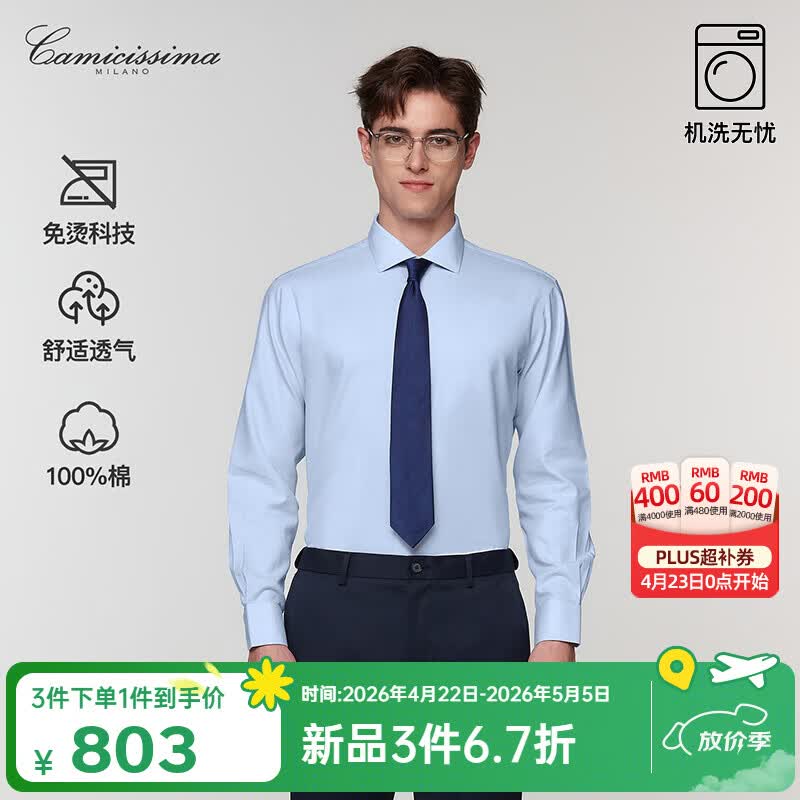 恺米切(CAMICISSIMA)商务休闲男士免烫长袖衬衫 天蓝提花纹衬衣长袖男 天蓝 37