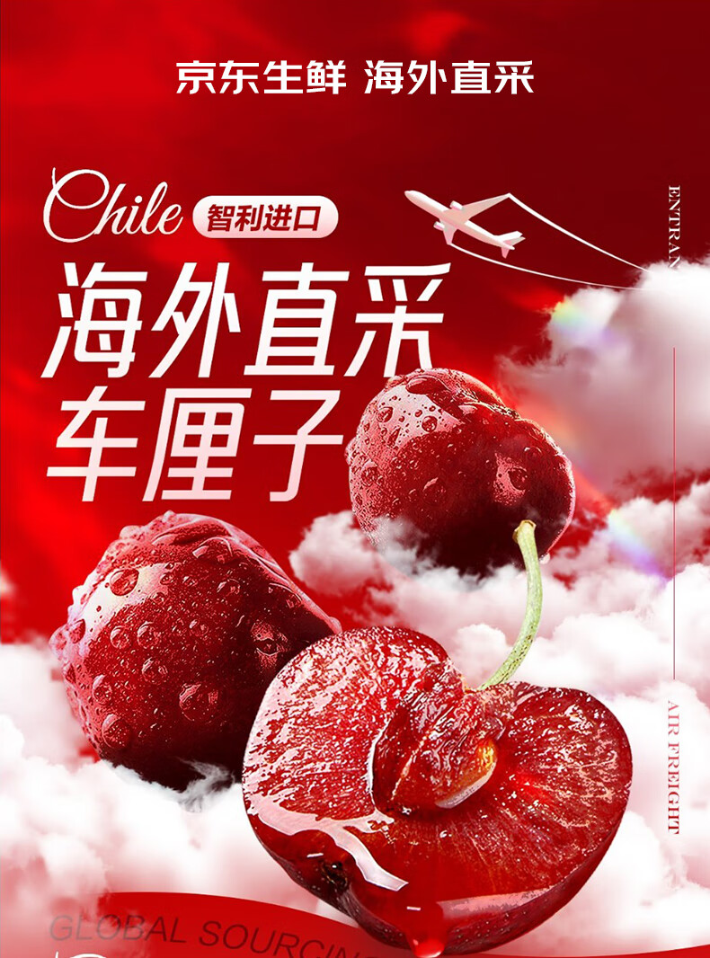 京鲜生 智利空运Santina车厘子超级巨无霸4J 5斤礼盒果径32-34mm送卡尺