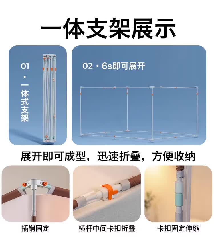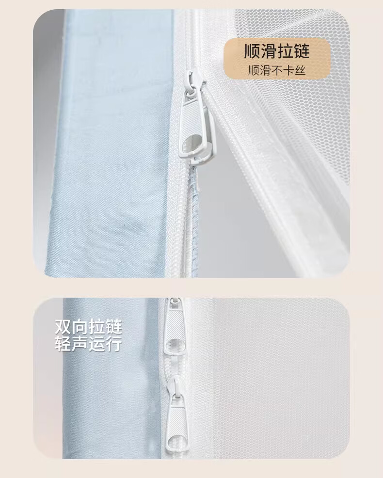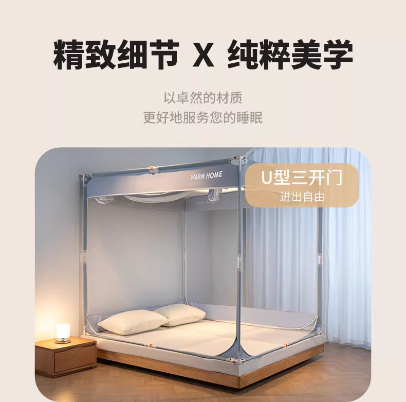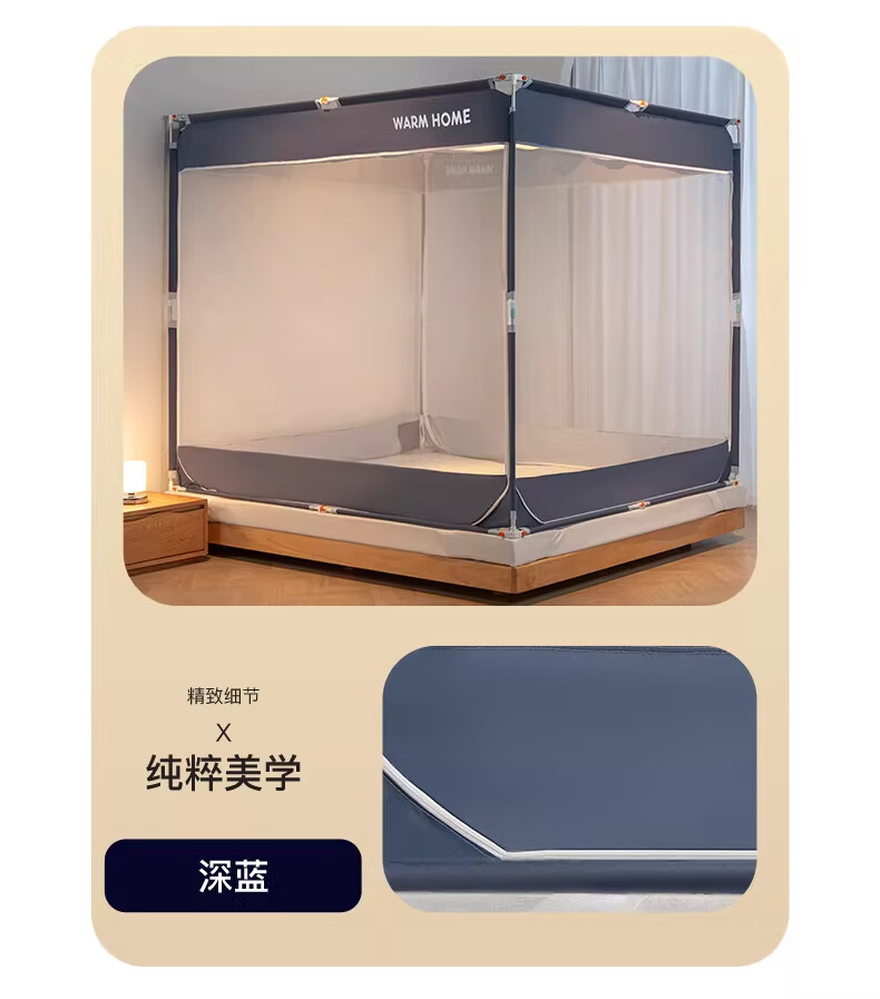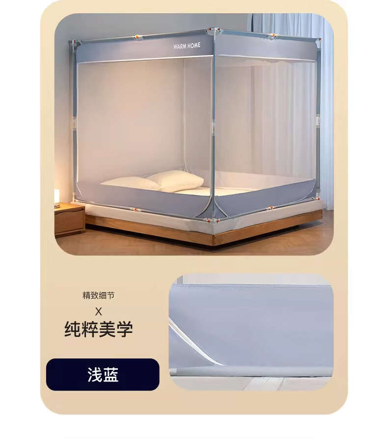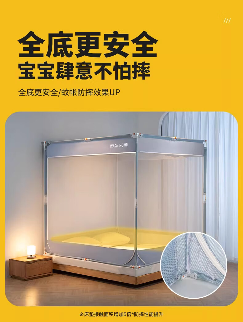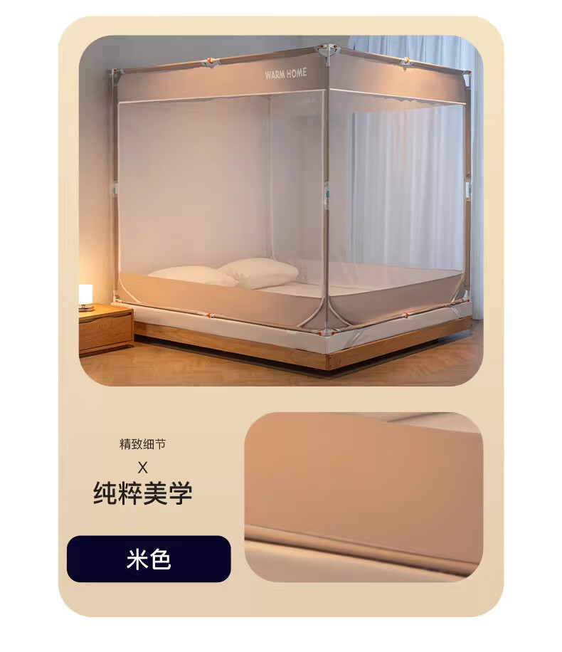 无印良品防摔蚊帐1.8x2米家用一体式免安装防蚊儿童防掉卧室全包底三开门 米色【防蚊防摔 一体式免安装】 200cm*180cm*170cm 适用于1.8米床【一体式免安装支架】