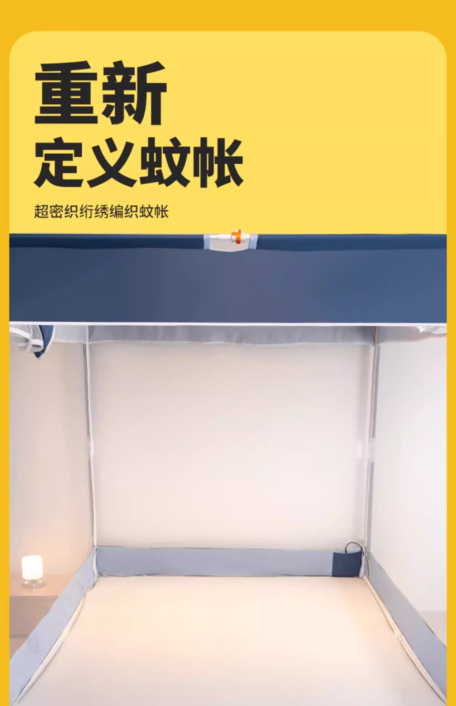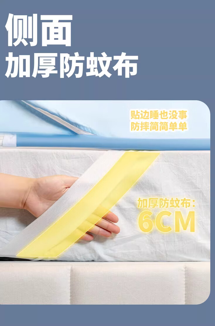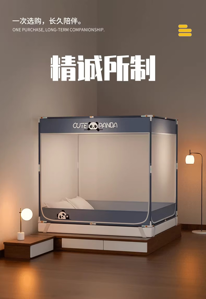 无印良品防摔蚊帐1.8x2米家用一体式免安装防蚊折叠蚊帐防掉床儿童床围栏 熊猫深蓝【一体式免安装 拆开即用】 200cm*180cm*170cm 适用1.8米【一体式免安装打开即用】