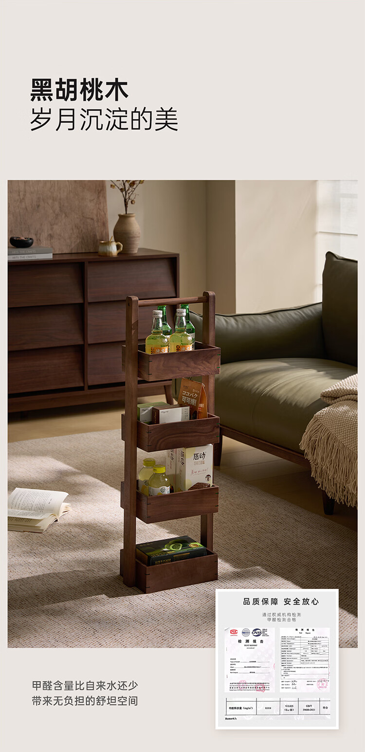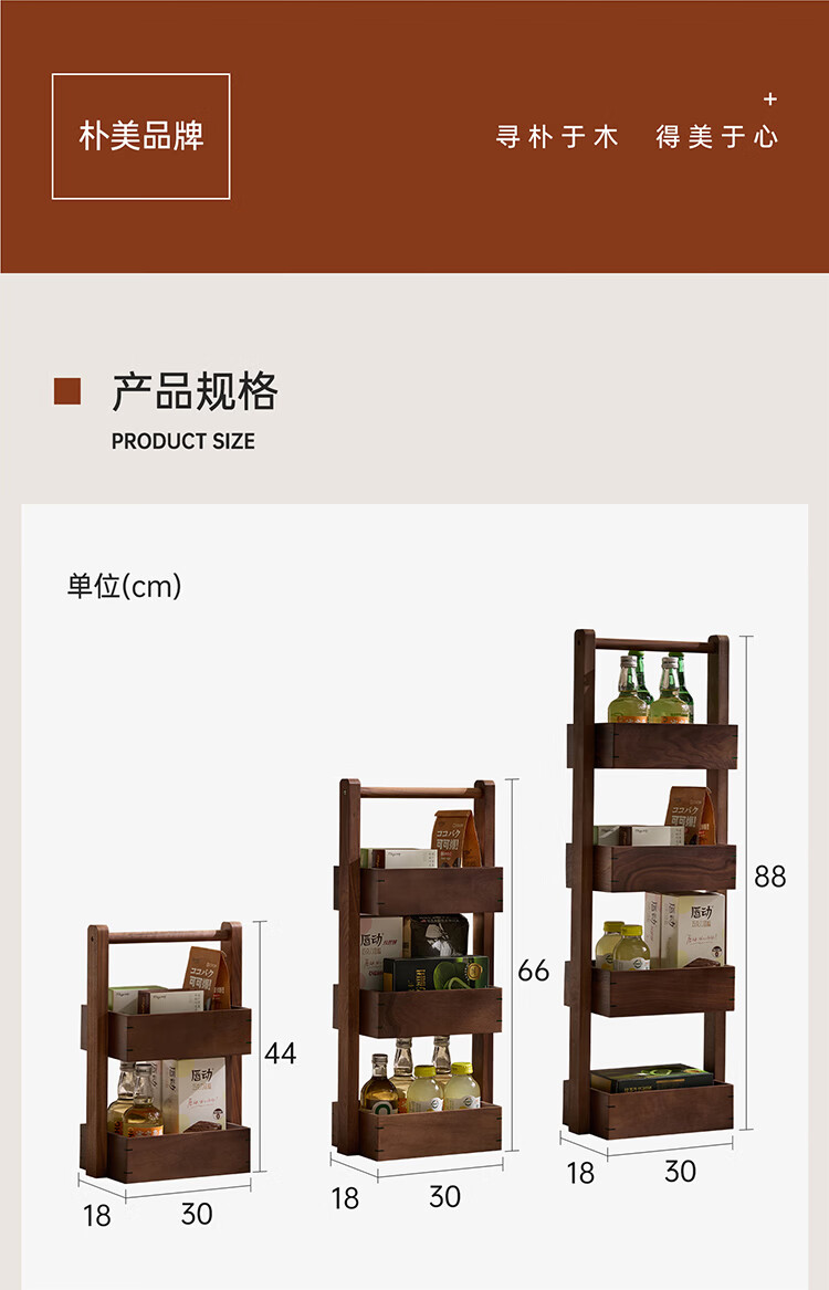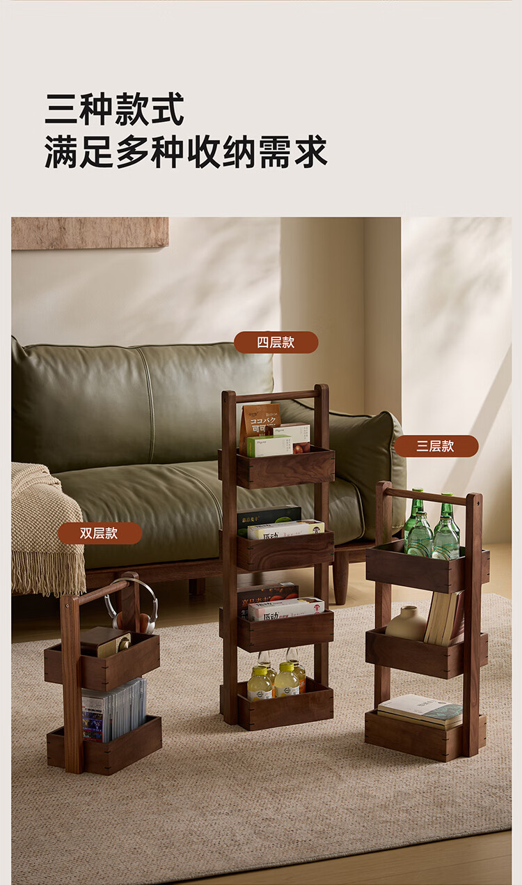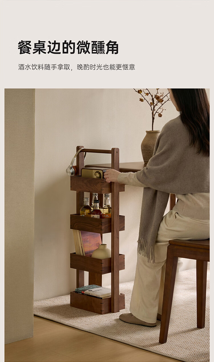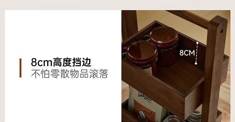 朴美实木可移动客厅零食架小推车厨房放菜置物架水果蔬菜筐收纳神器