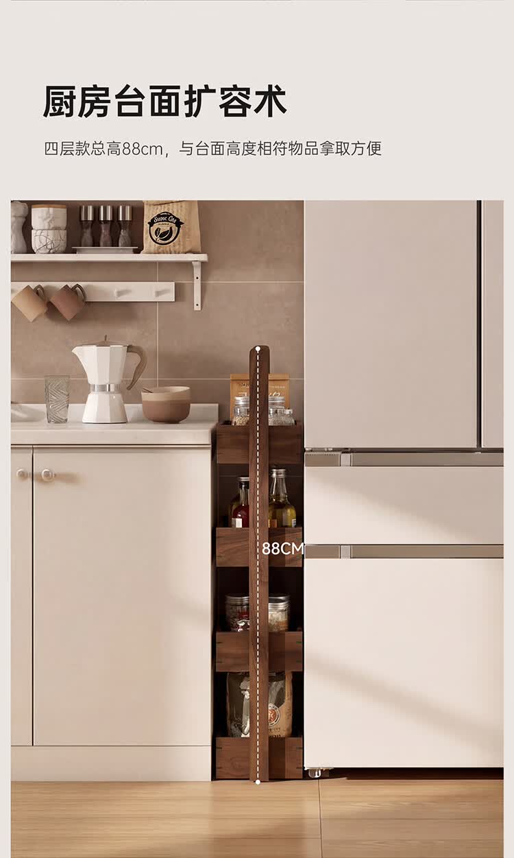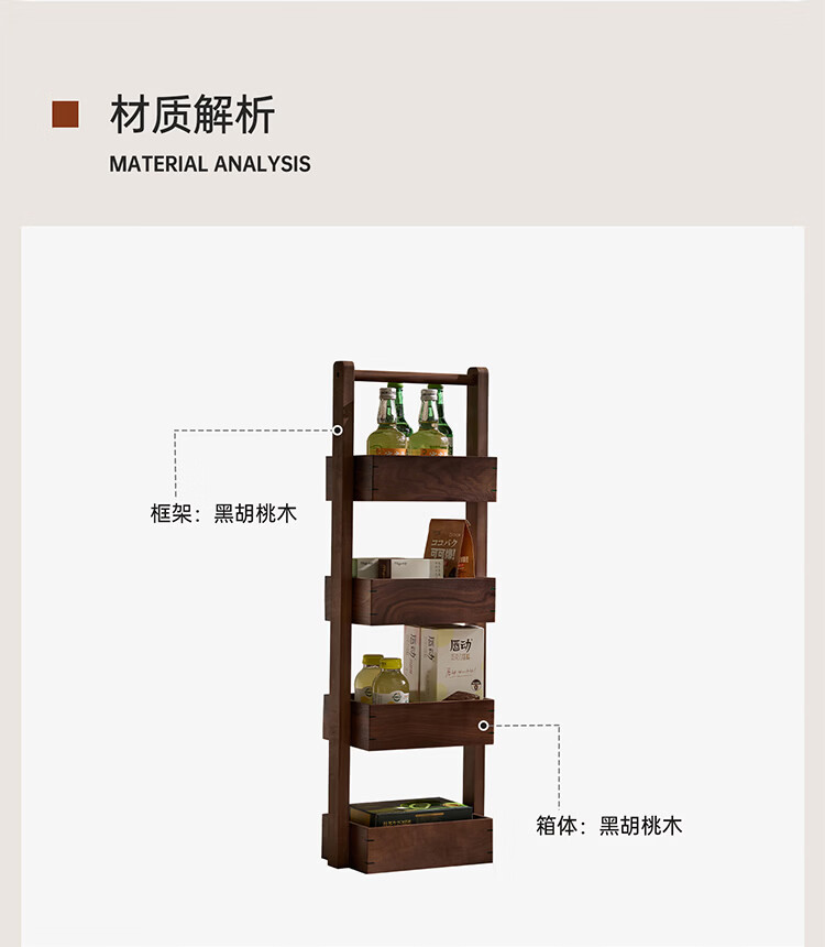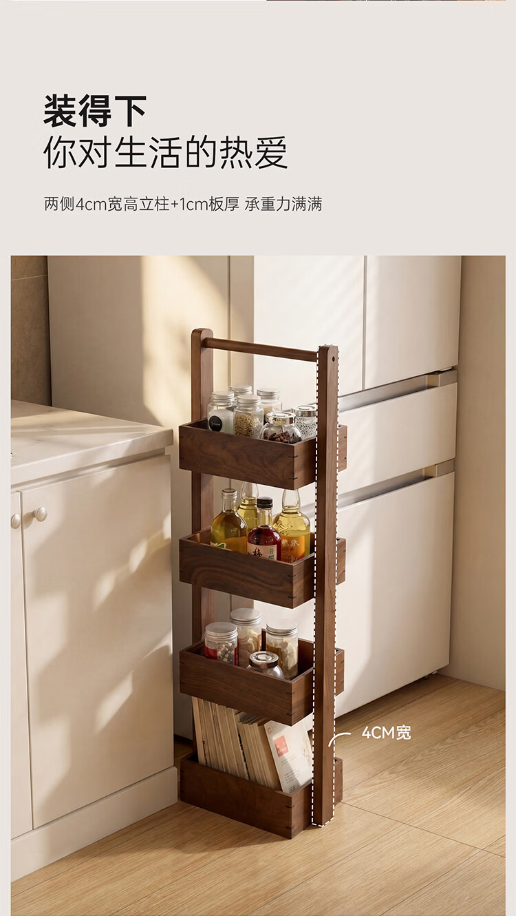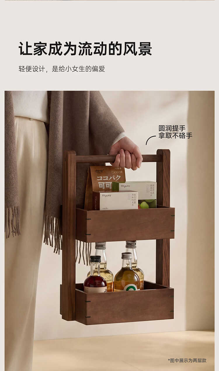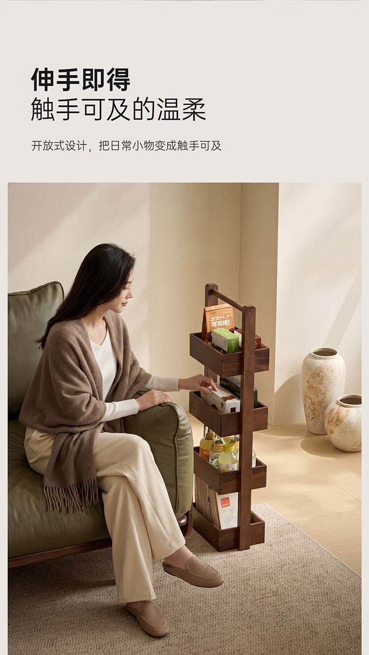 朴美实木可移动客厅零食架小推车厨房放菜置物架水果蔬菜筐收纳神器