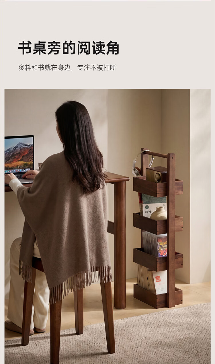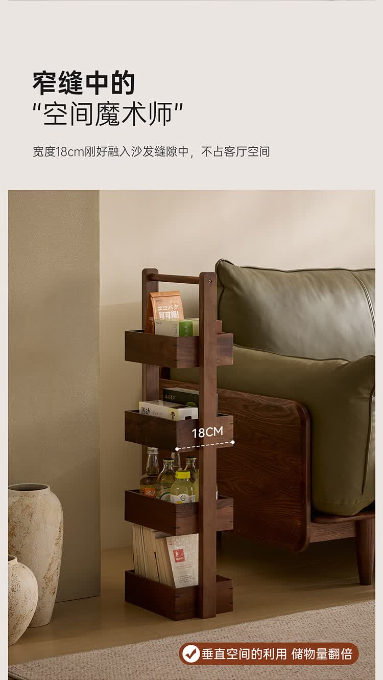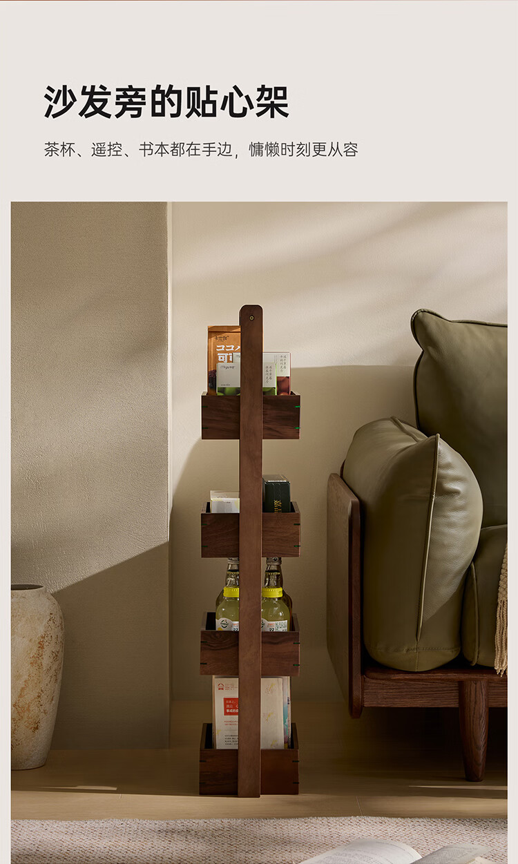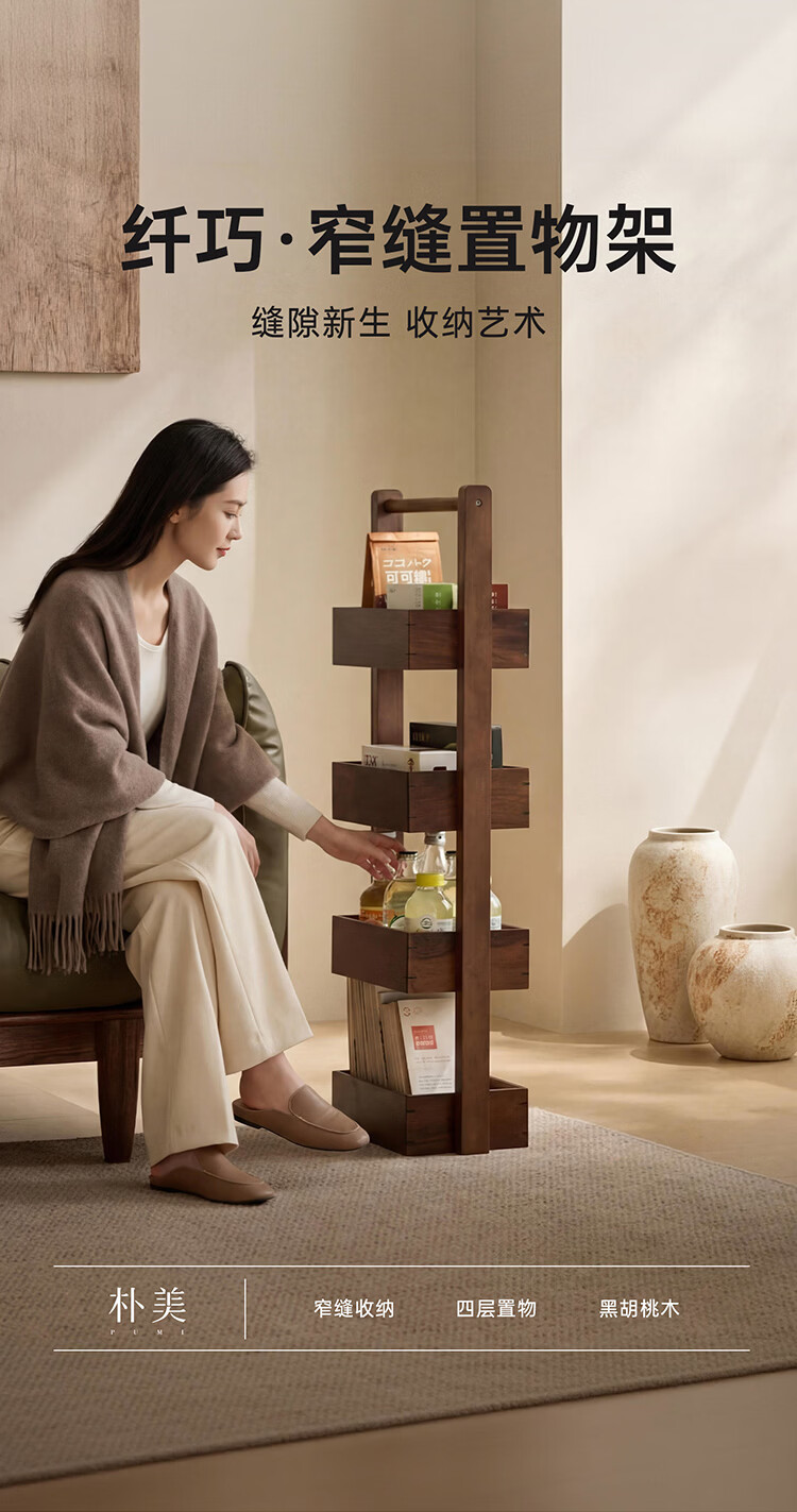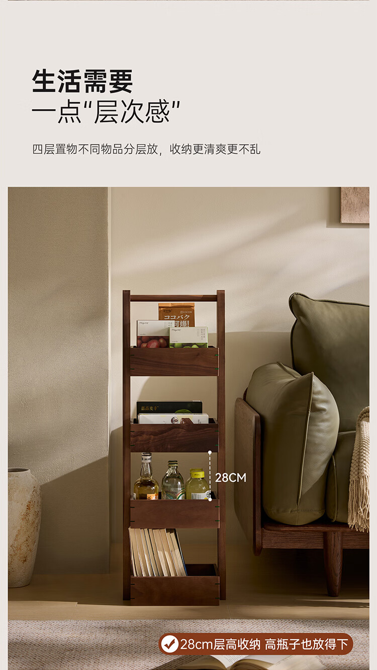 朴美实木可移动客厅零食架小推车厨房放菜置物架水果蔬菜筐收纳神器