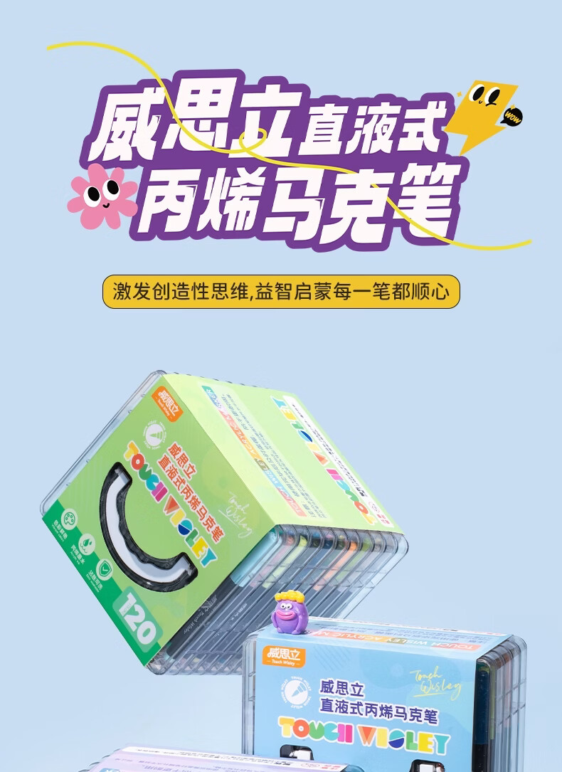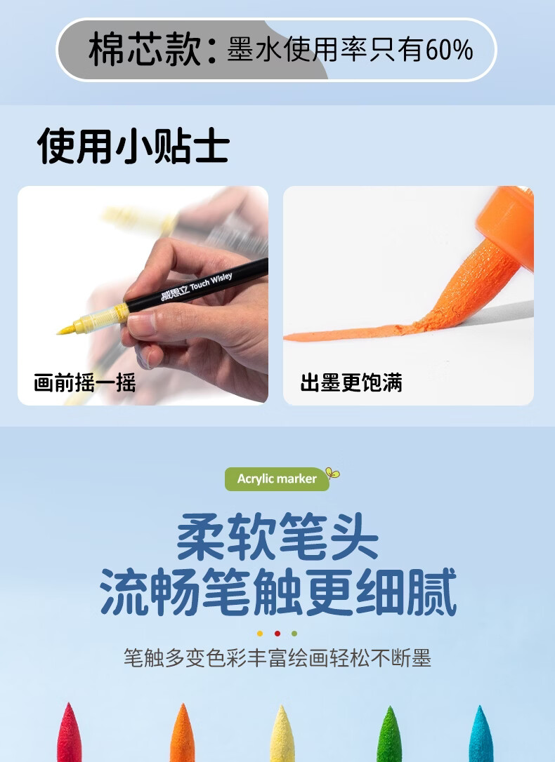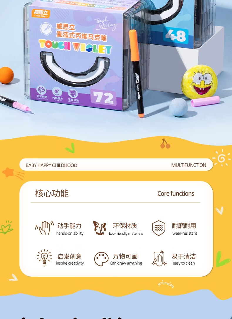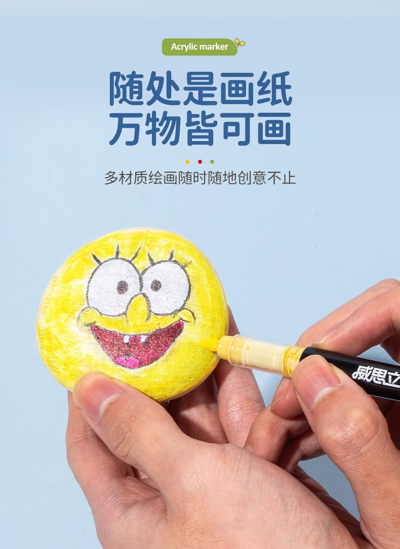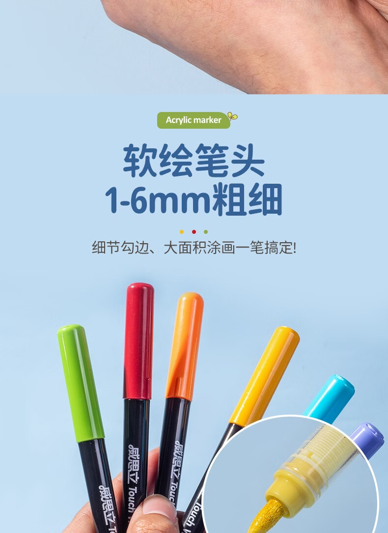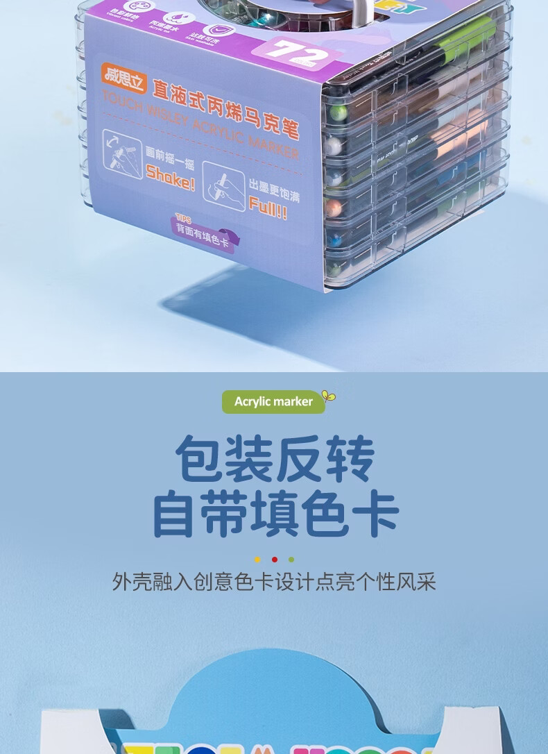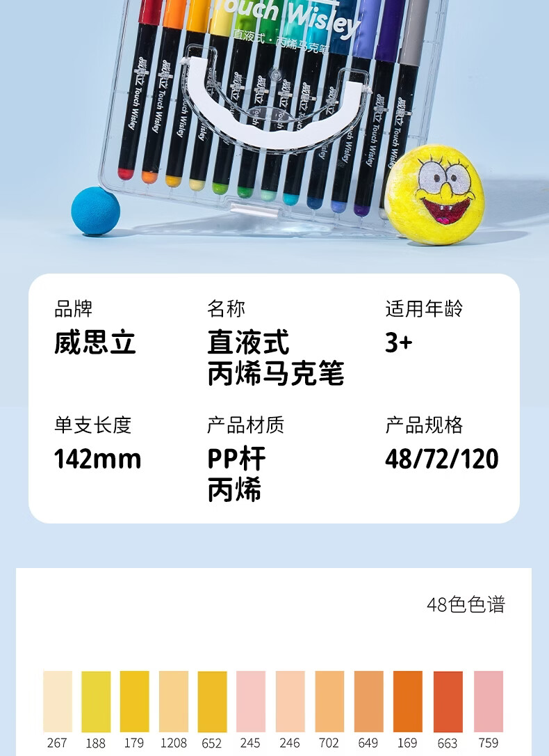 威思立直液式软头丙烯马克笔小学生美术专用绘画彩色涂鸦笔 72色直液式软头+送色卡
