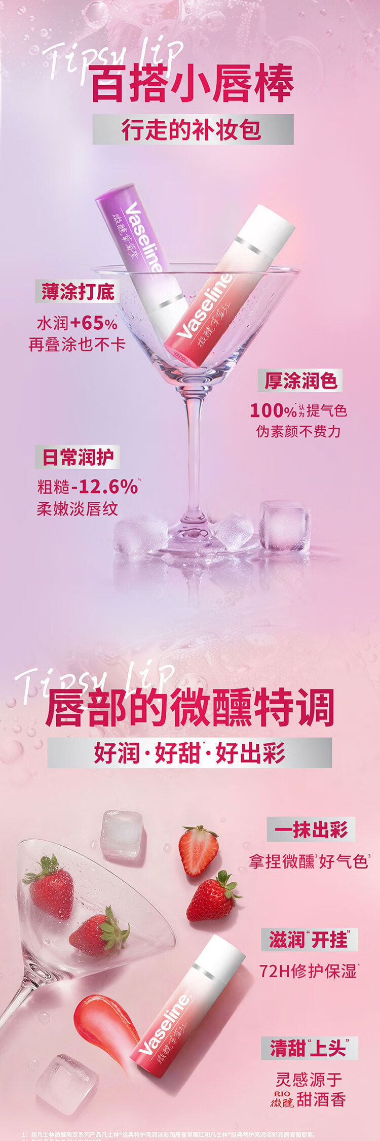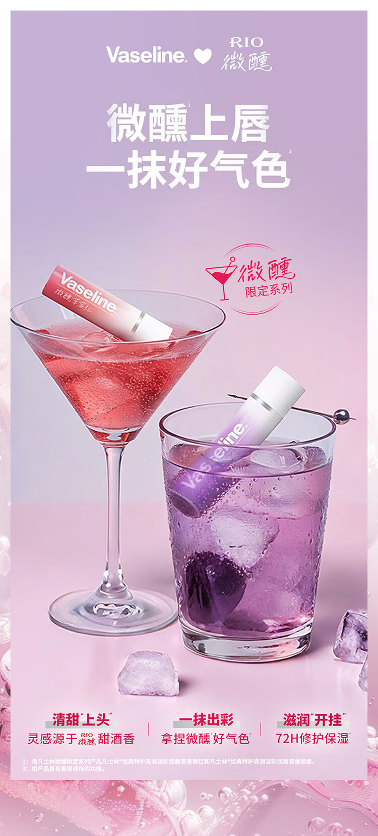 凡士林[热卖榜TOP1]淡彩葡萄紫变色润唇膏3.5g淡化唇纹滋润