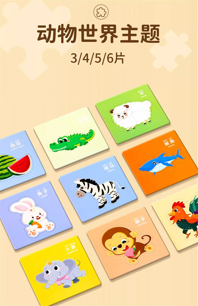 喜比姆幼儿童益智拼图宝宝0-3到6岁三岁小孩早教平图男女孩玩具生日礼物