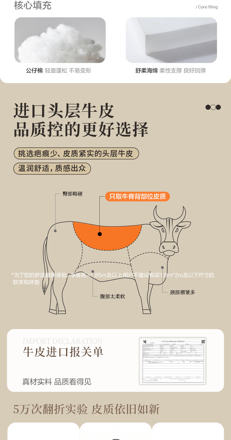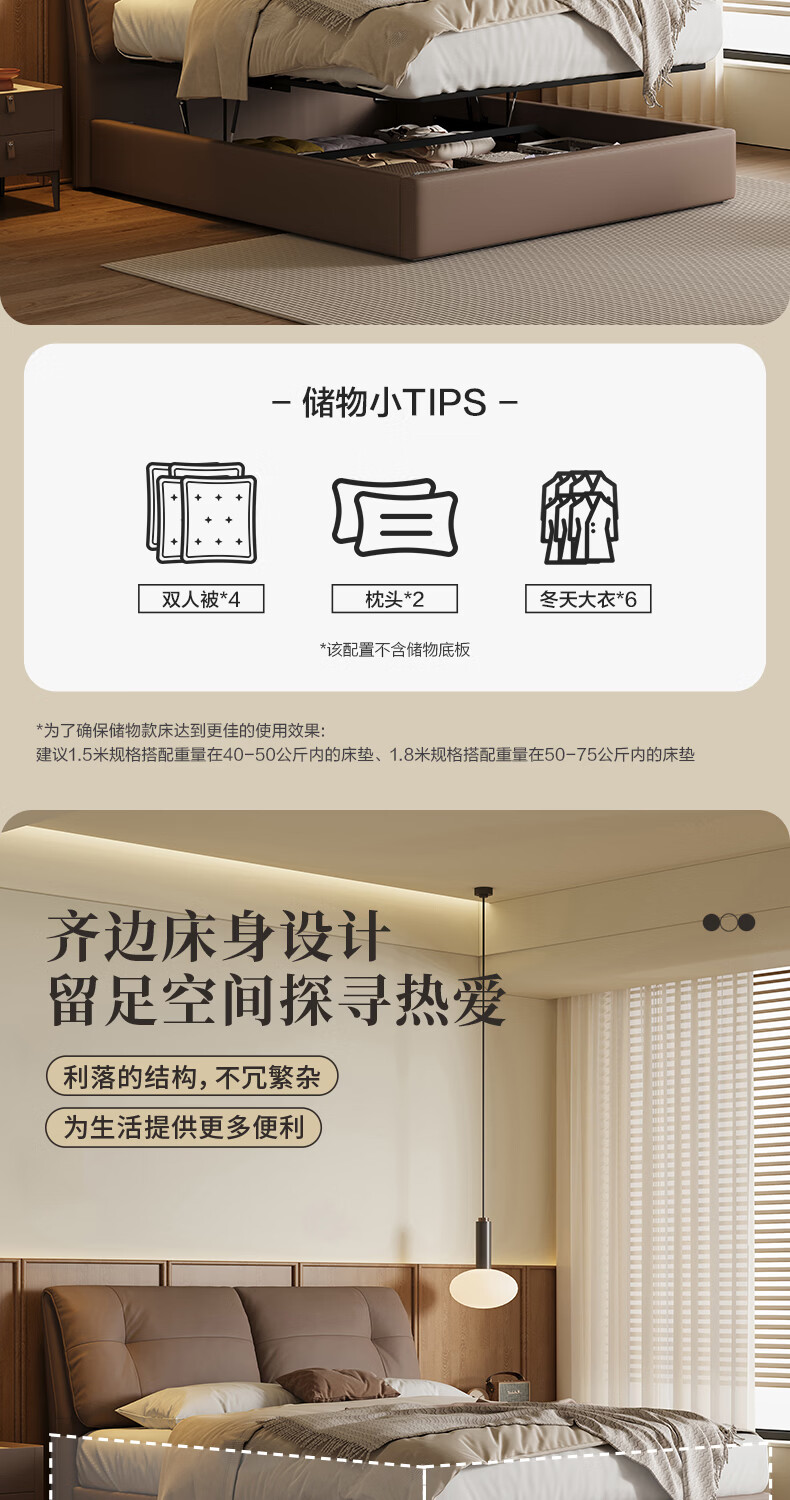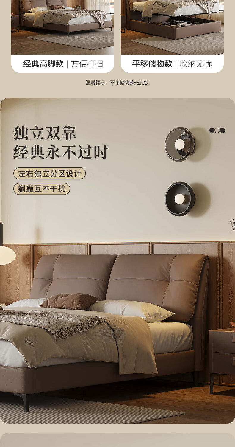 全友家居现代简约茉伊真皮床轻奢高级感2026年新款头层牛皮软包靠背床 【牛皮 | 米白 | 平移+上翻开合电动储物款】 1.8米x2米 床+床头柜*1