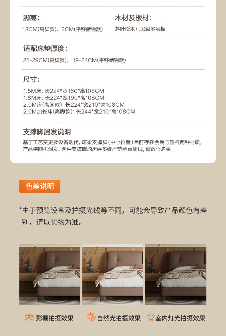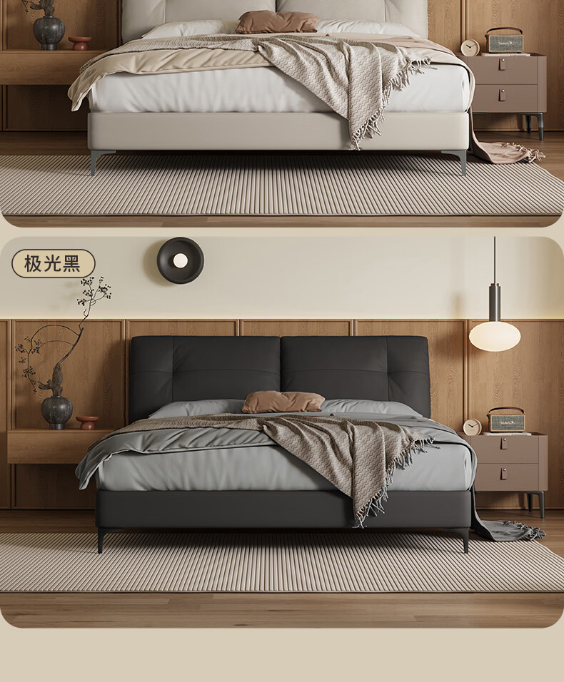 全友家居线下门店同款布朗尼皮艺床软包床头靠背主卧大床床头柜U30001 【松露黑 | 高脚款】单床 2x2.2米