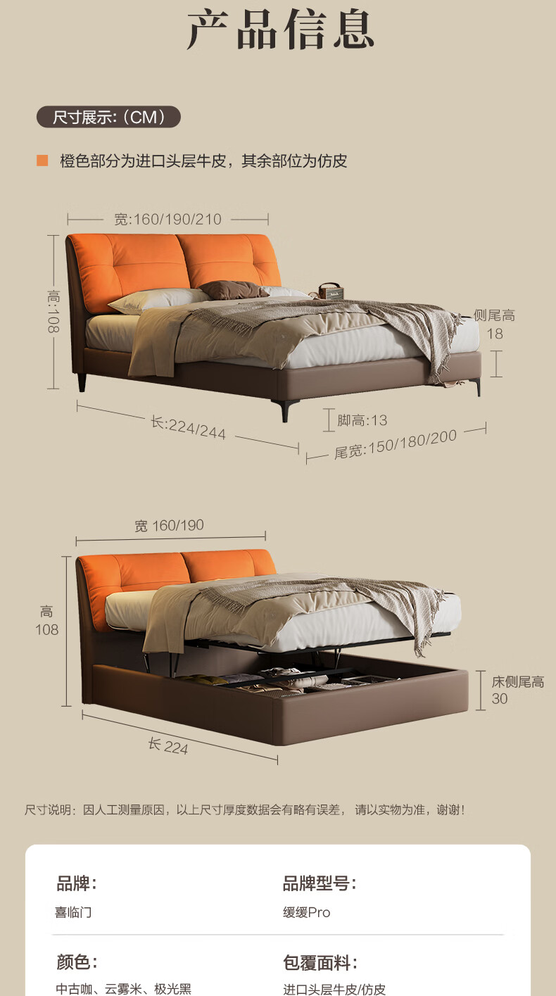 喜临门【比与辉同行价格低】缓缓pro皮床+漾pro床垫套餐