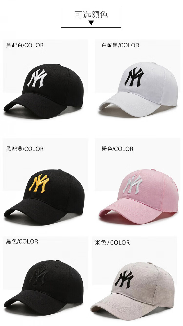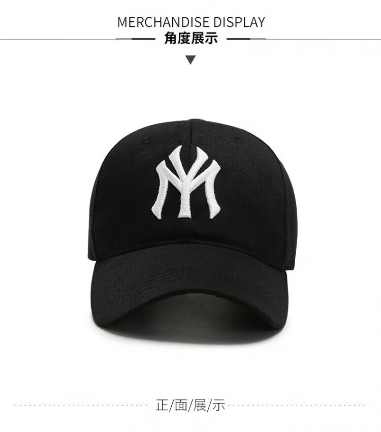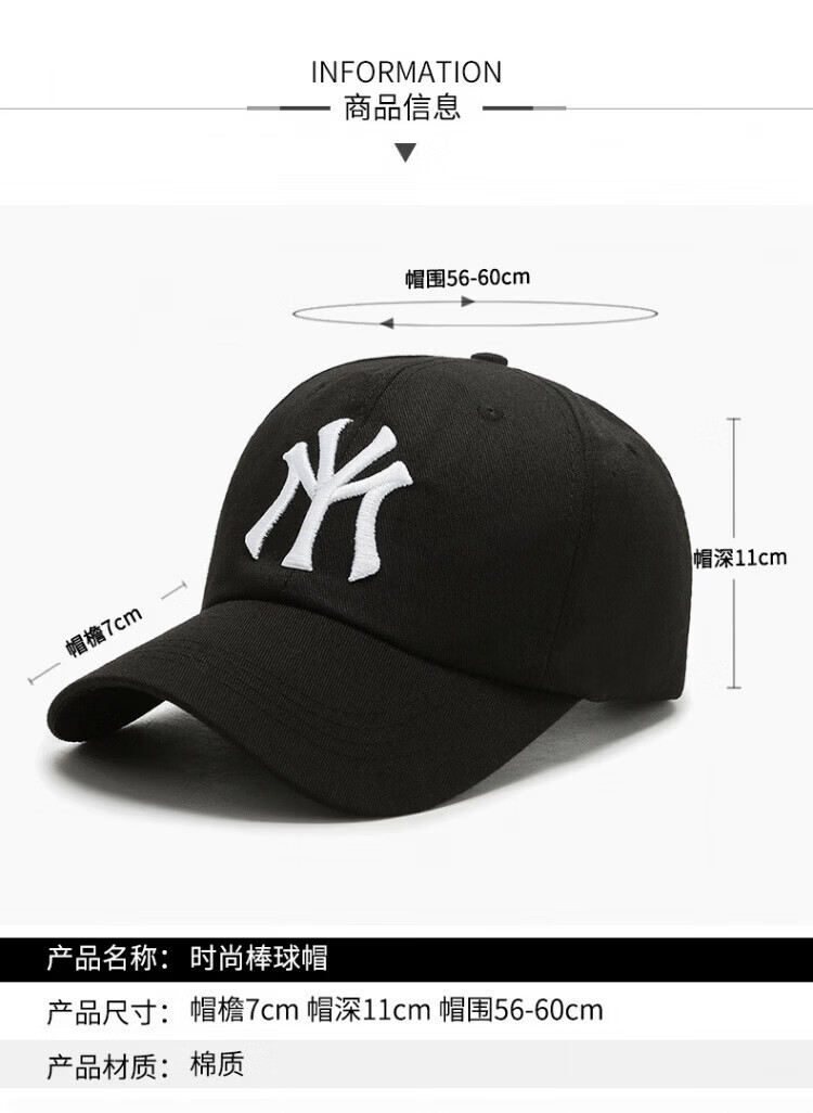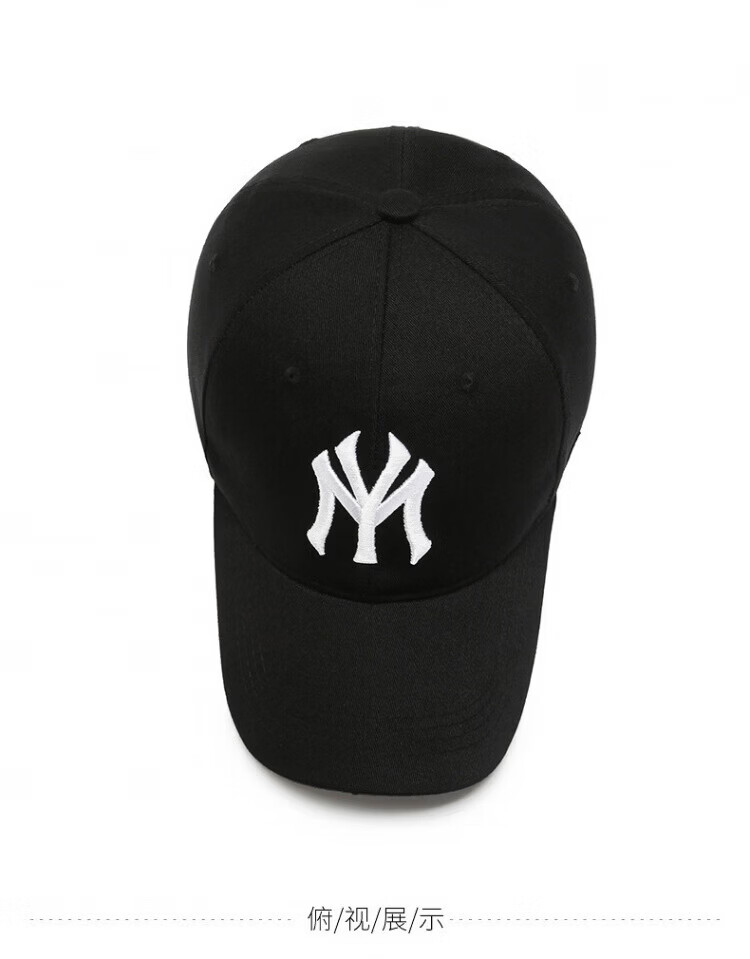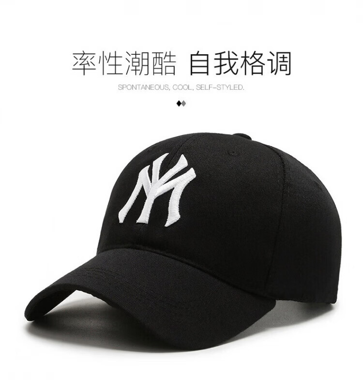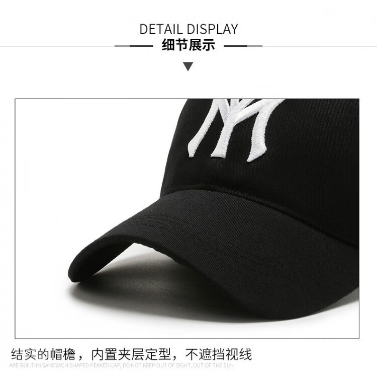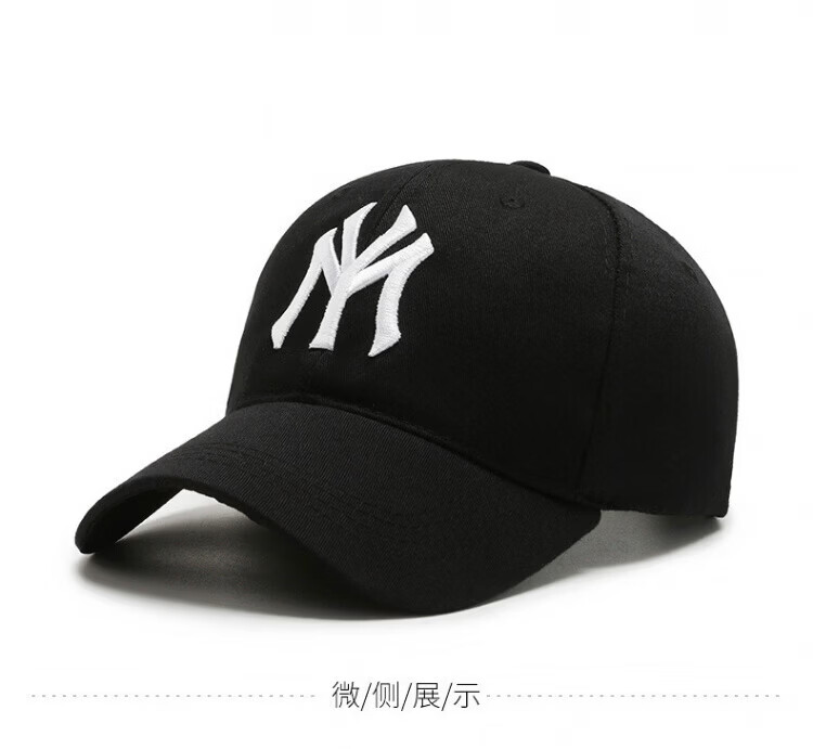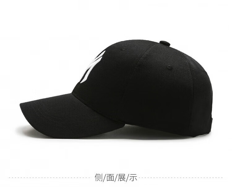 MLBNY棒球帽男士刺绣MY硬顶大头围帽子女春秋户外旅游登山遮阳鸭舌帽夏 黑色绣金字 均码 可调节