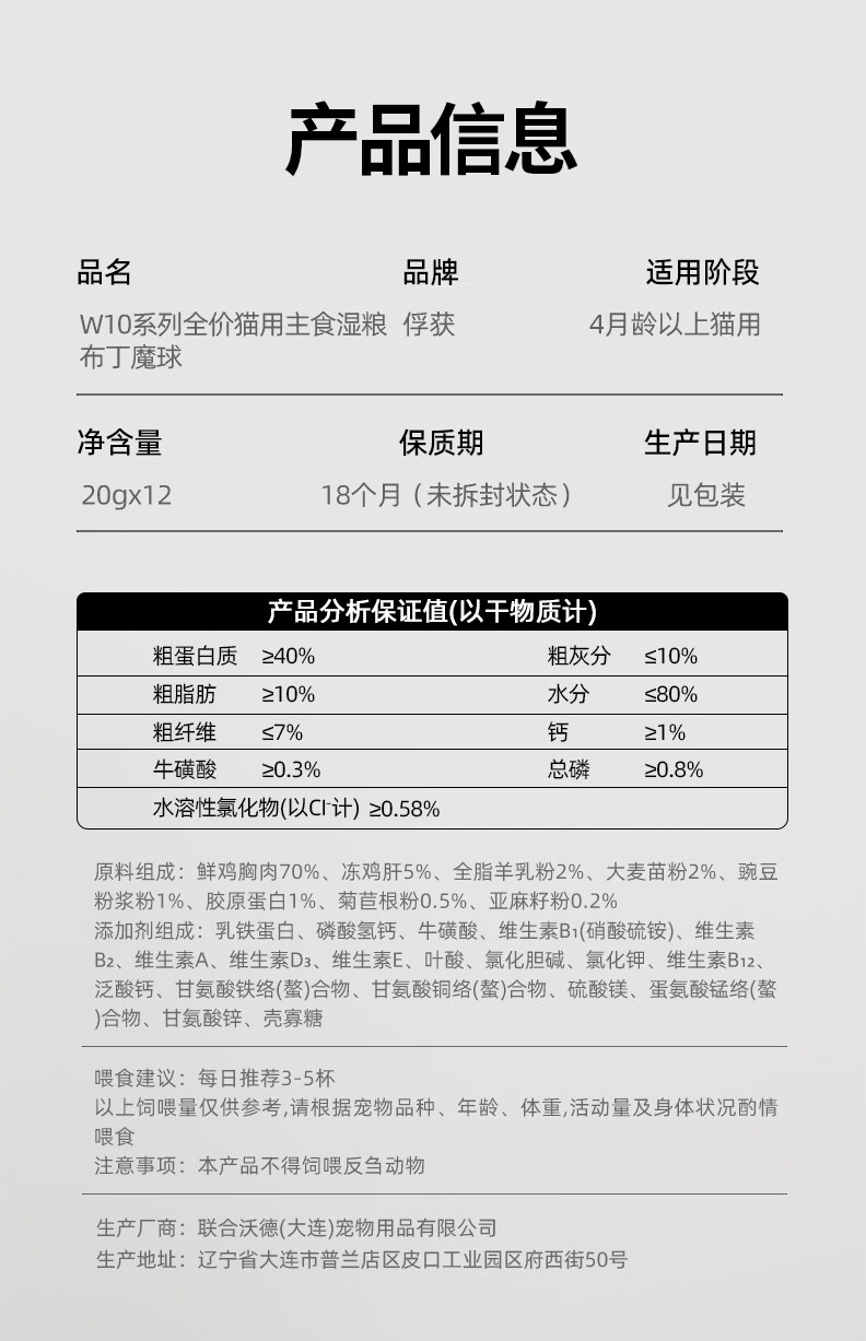 俘获W10布丁魔球猫咪零食主食湿粮罐头全价成幼猫