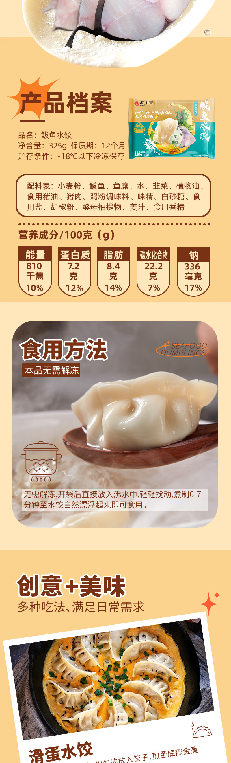 海大厨海鲜鲅鱼水饺325g/18枚*5 速冻饺子蒸饺煎饺 鲅鱼水饺325g/18枚/袋*5袋