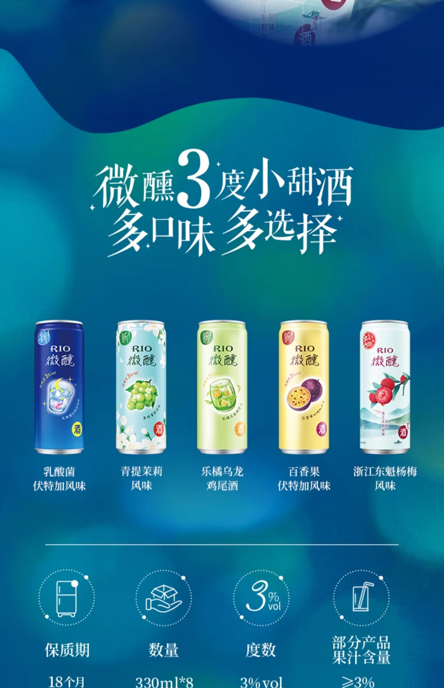 锐澳(RIO)洋酒 预调酒 鸡尾酒 果酒甜酒 微醺3度 330ml*24罐口味随机