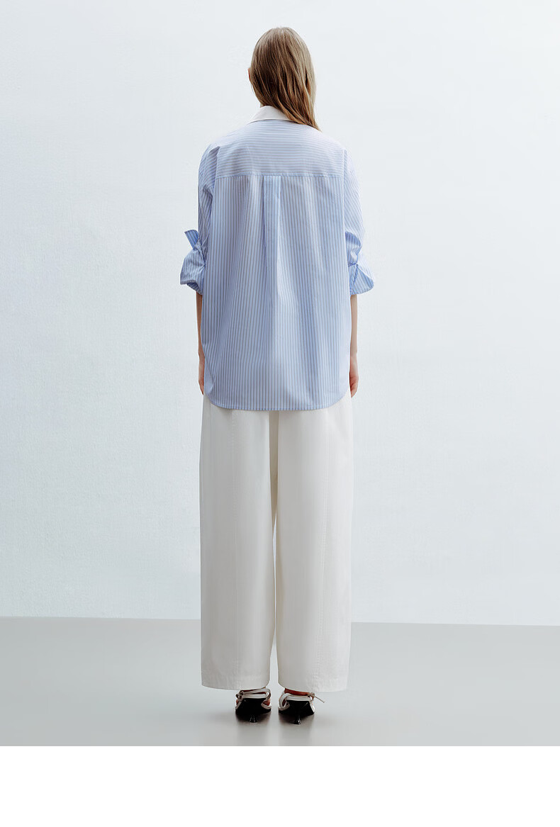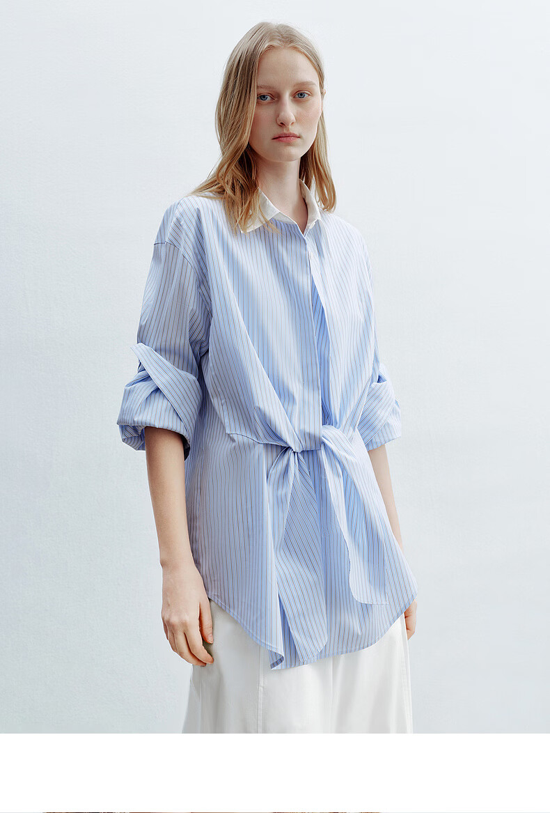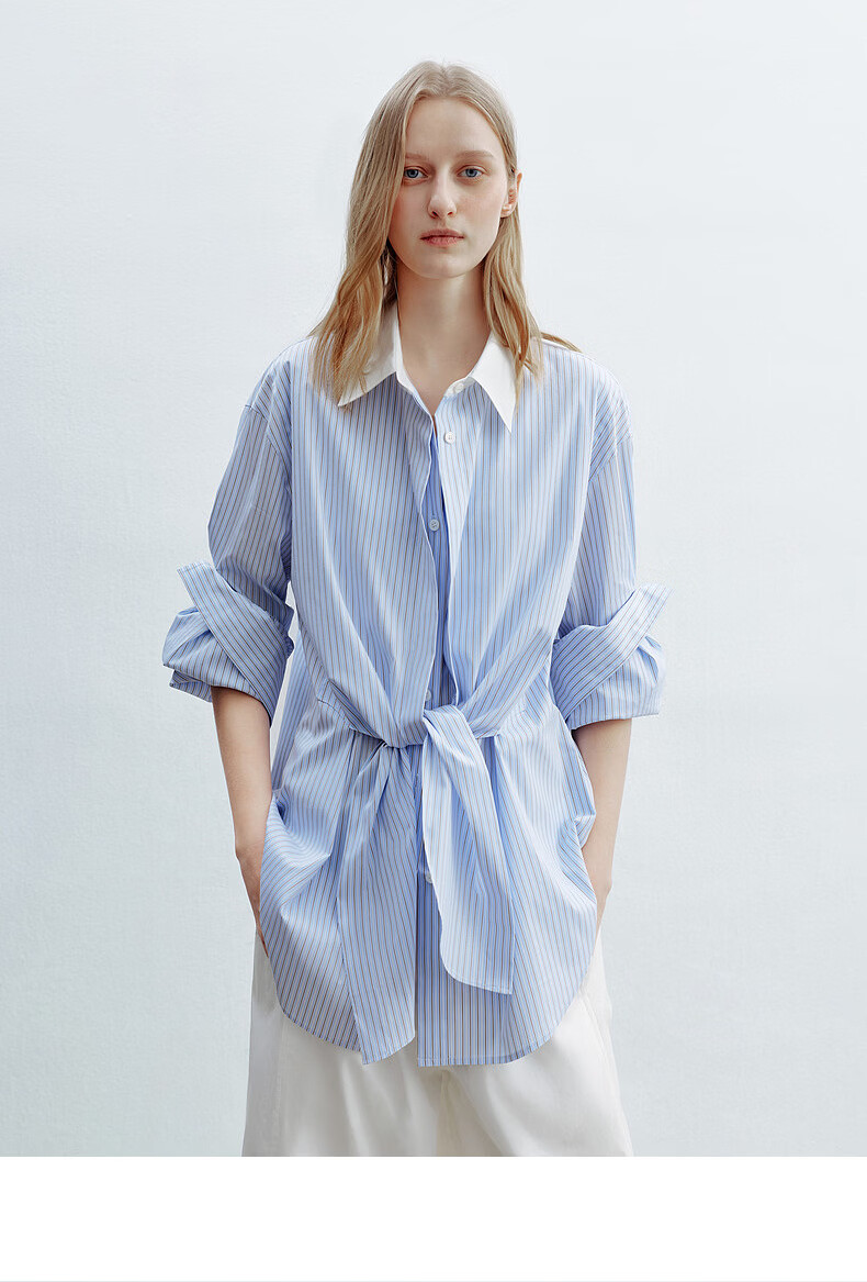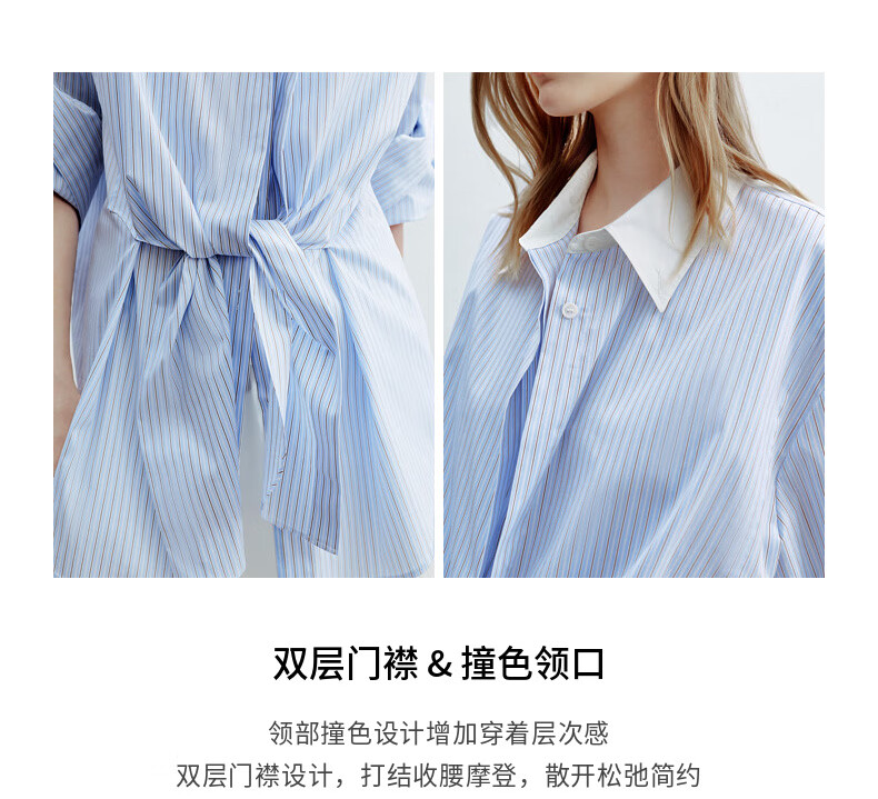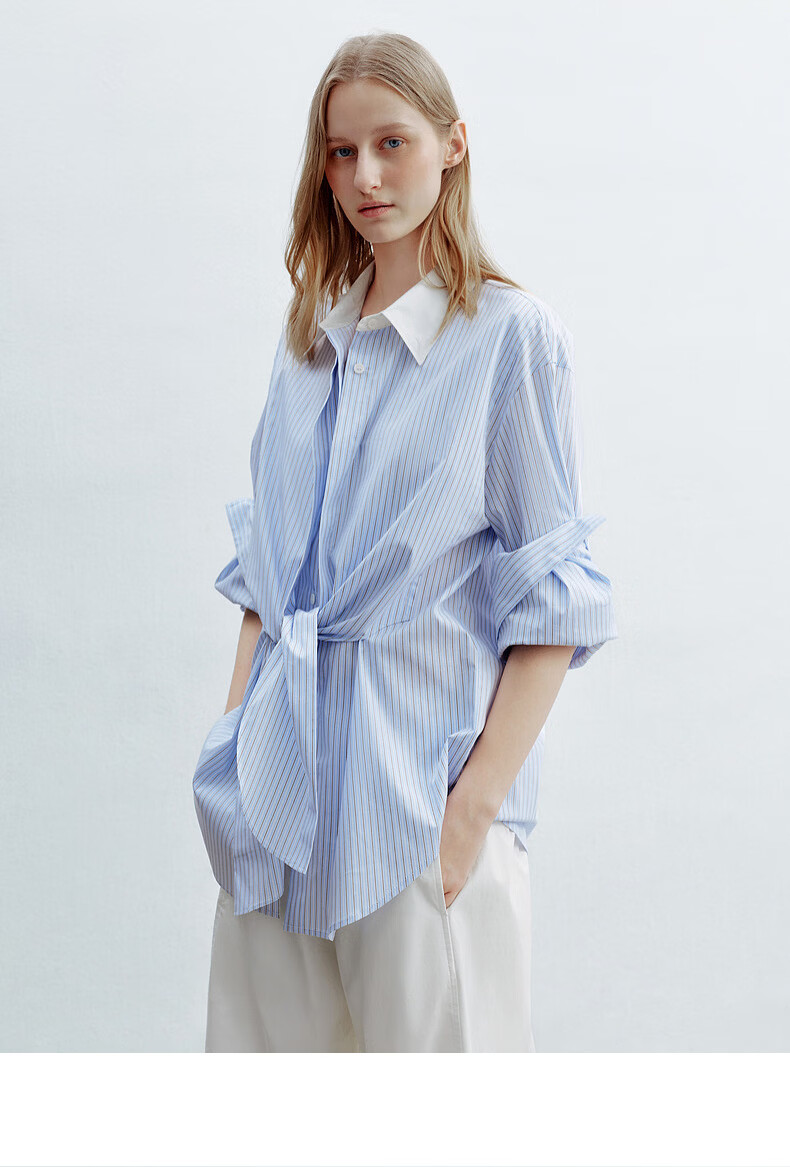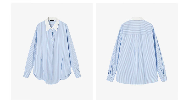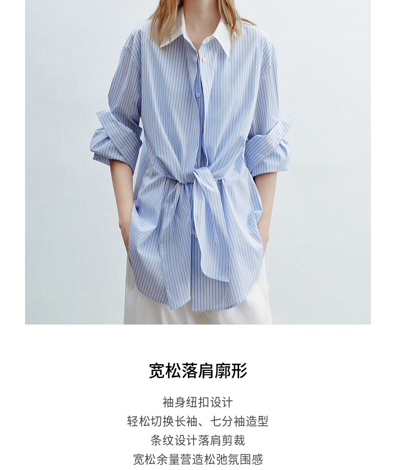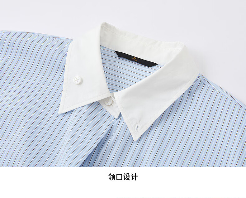 H's蓝白条纹长袖衬衫女26年夏季新款高级设计感落肩廓形撞色衬衣 蓝白条纹 S