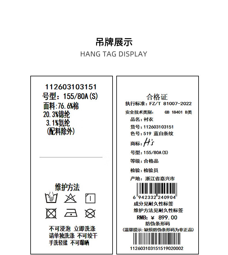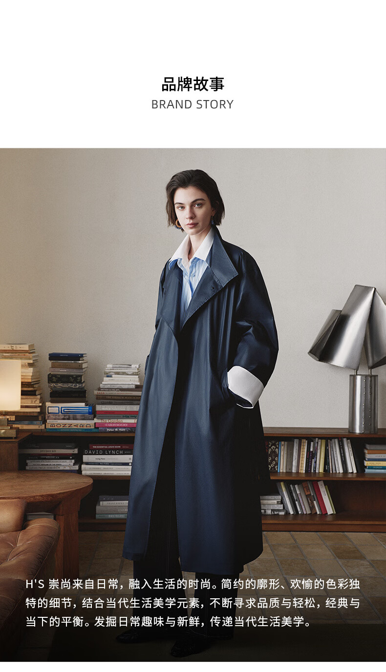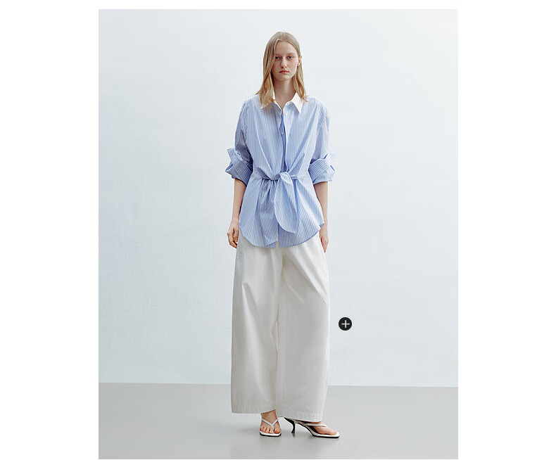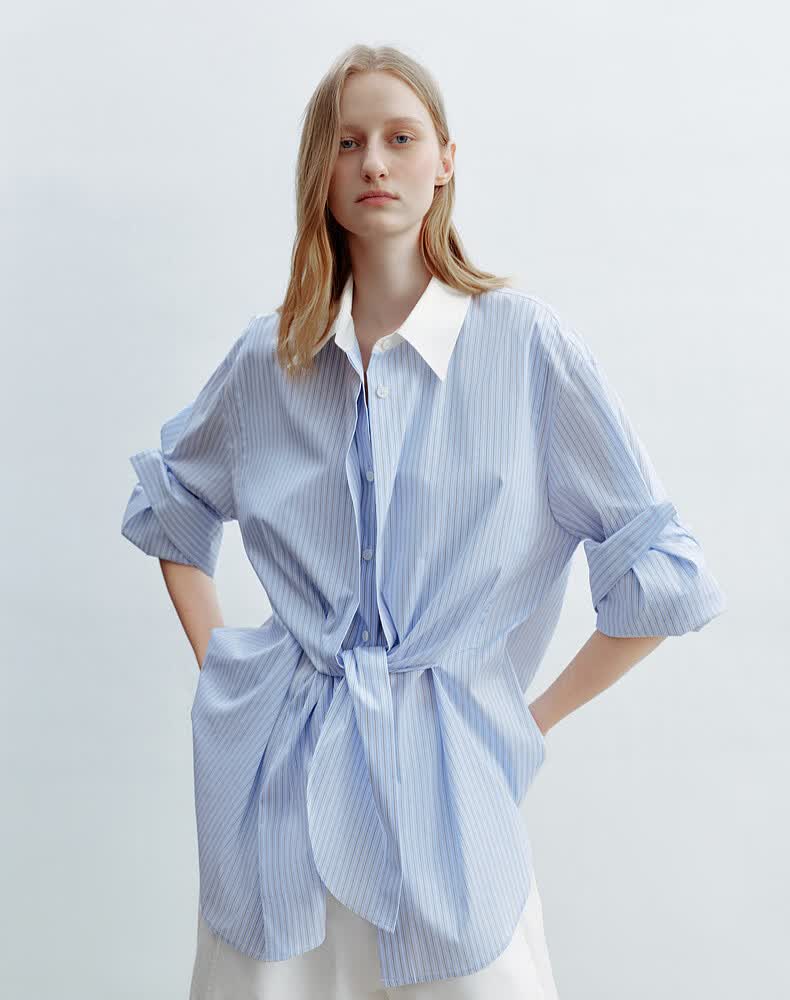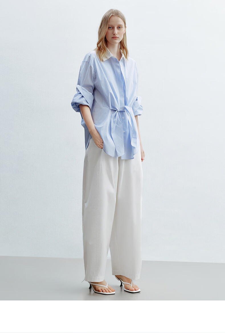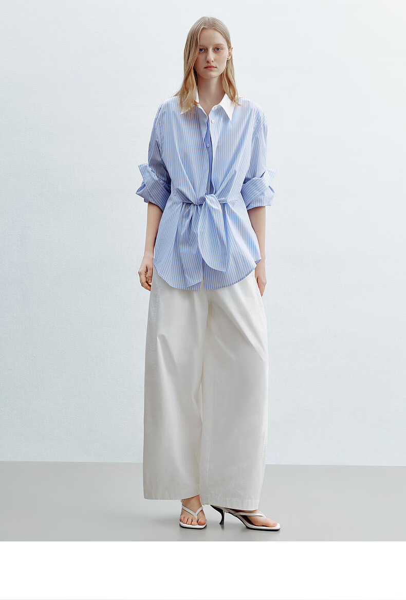 H's蓝白条纹长袖衬衫女26年夏季新款高级设计感落肩廓形撞色衬衣 蓝白条纹 S