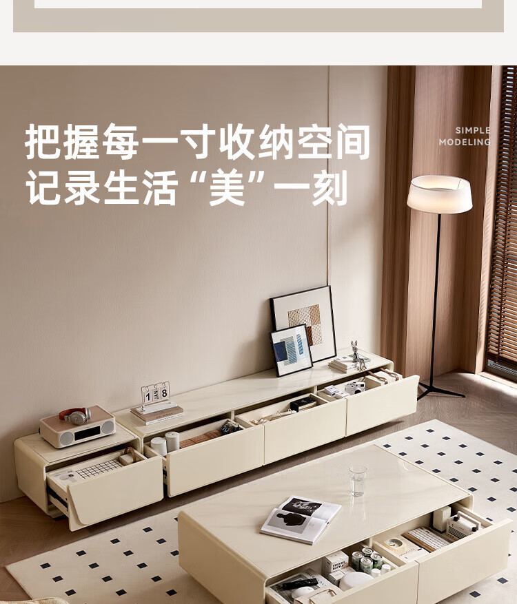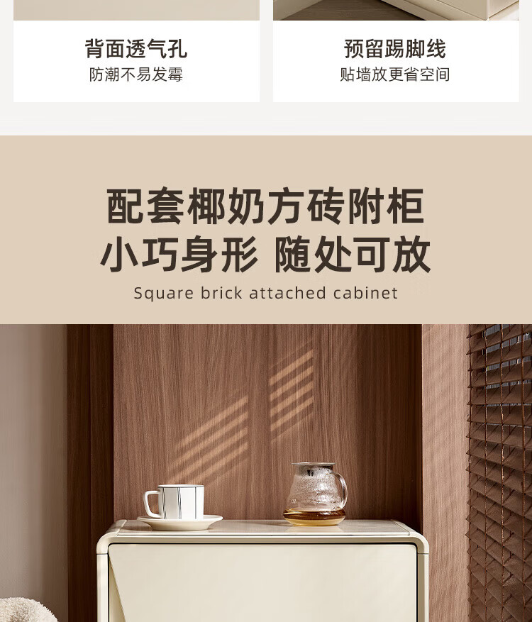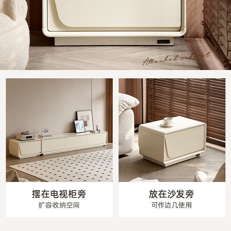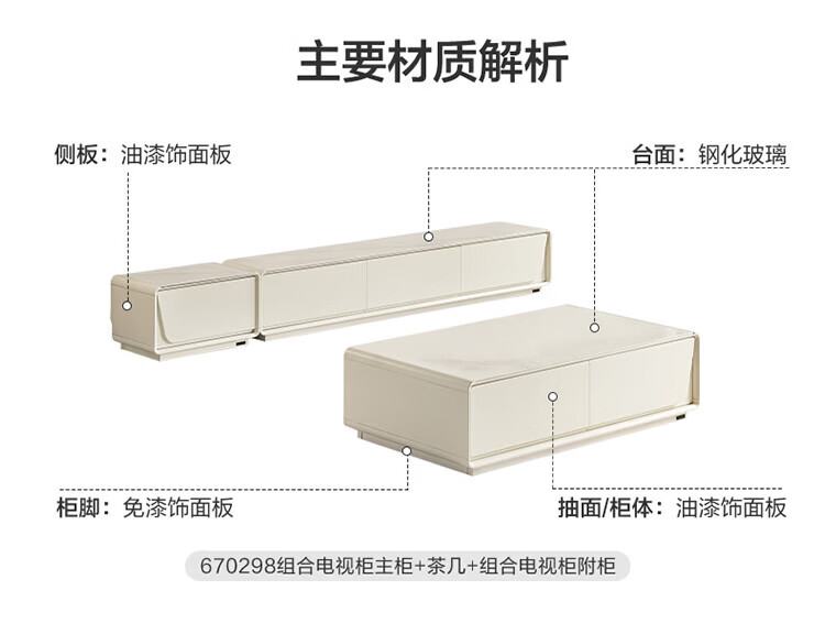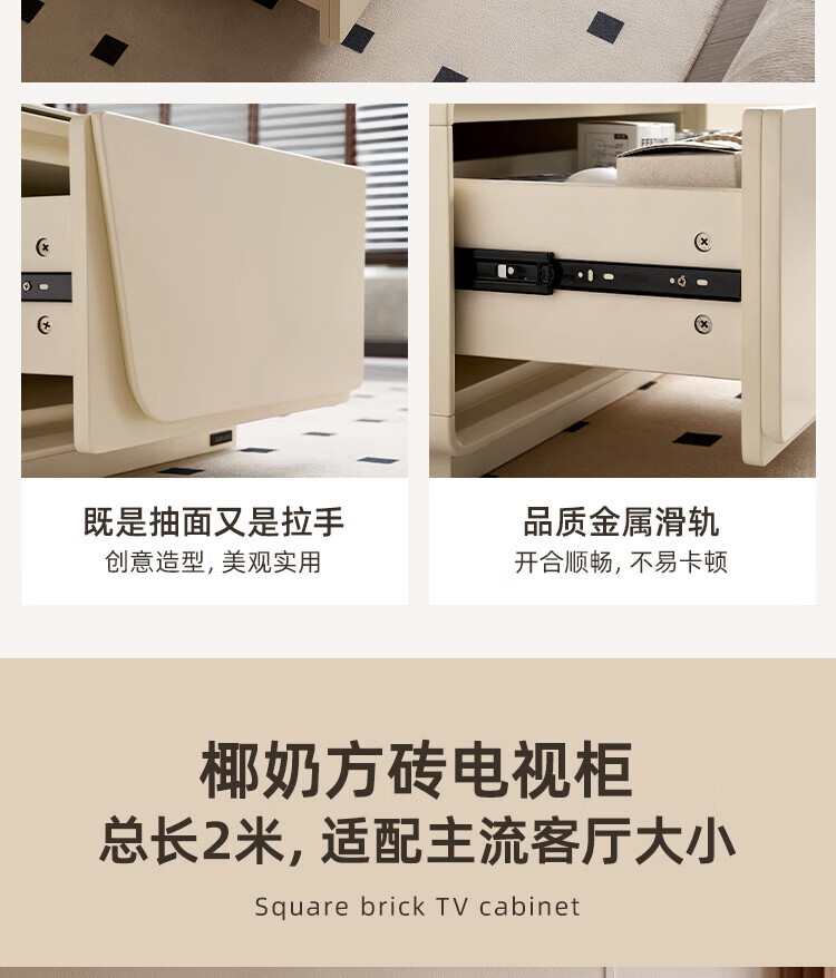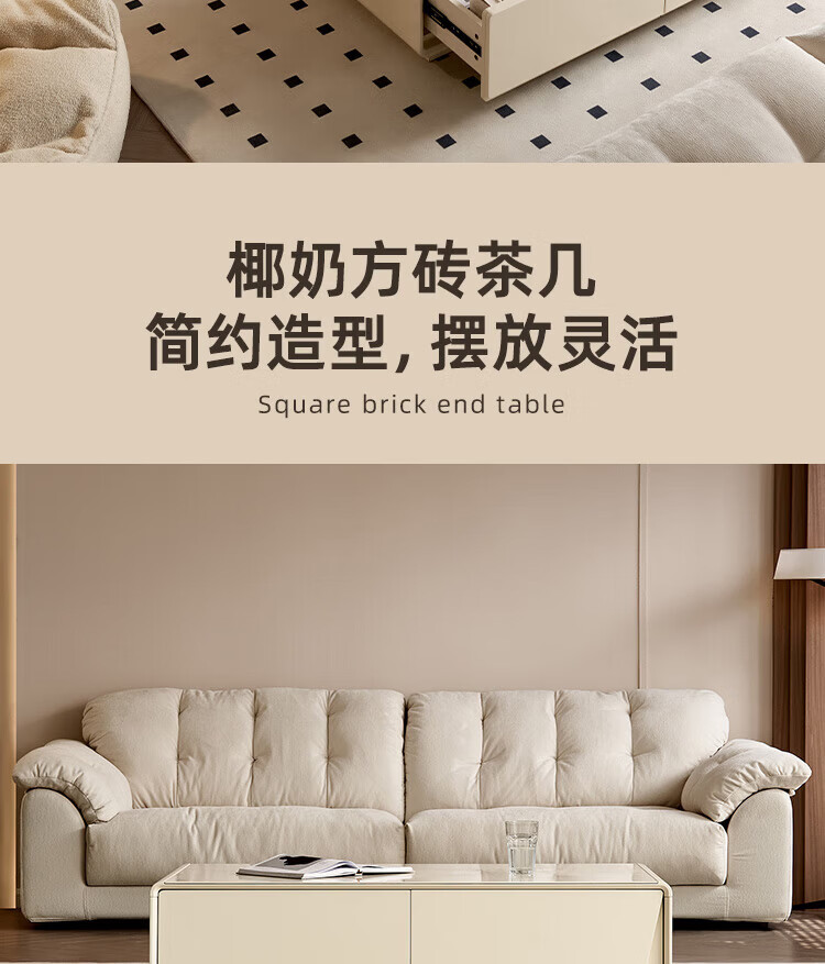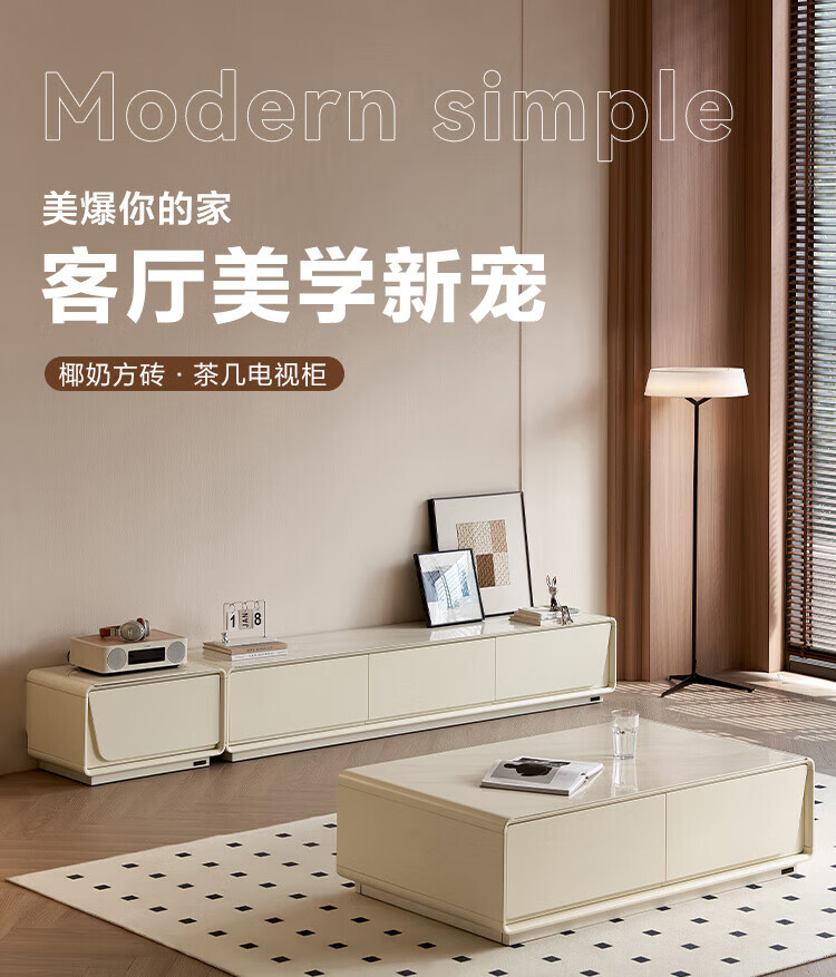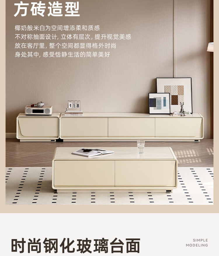 全友(QUANU)【迷瞪清仓货盘】椰奶方砖茶几电视柜收纳置物桌家用小户型茶几 钢化玻璃|电视柜附柜
