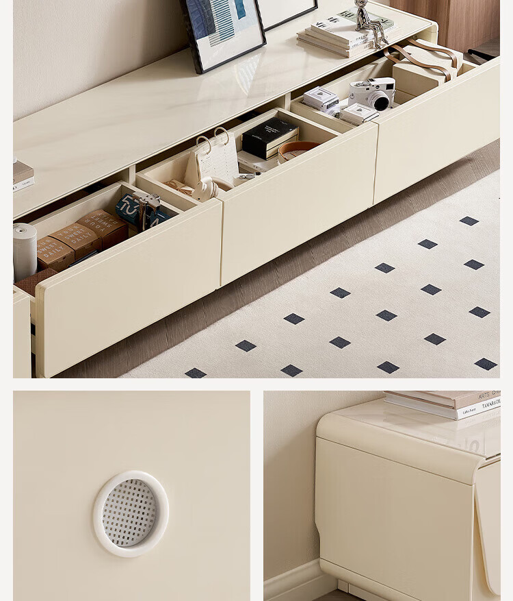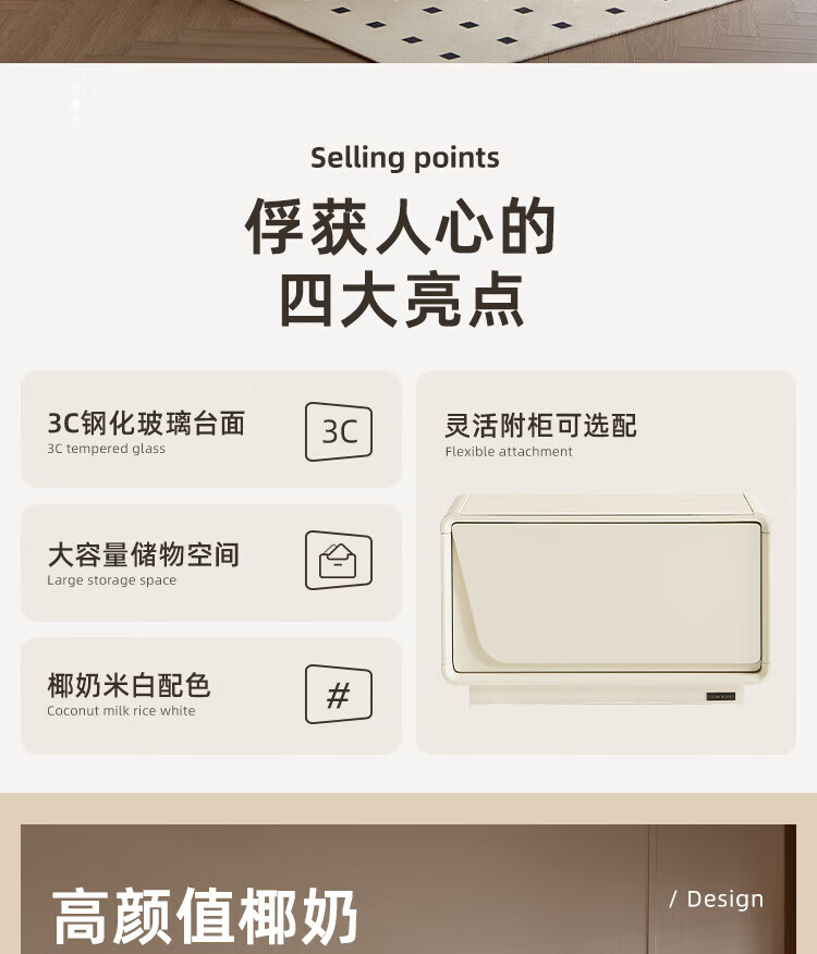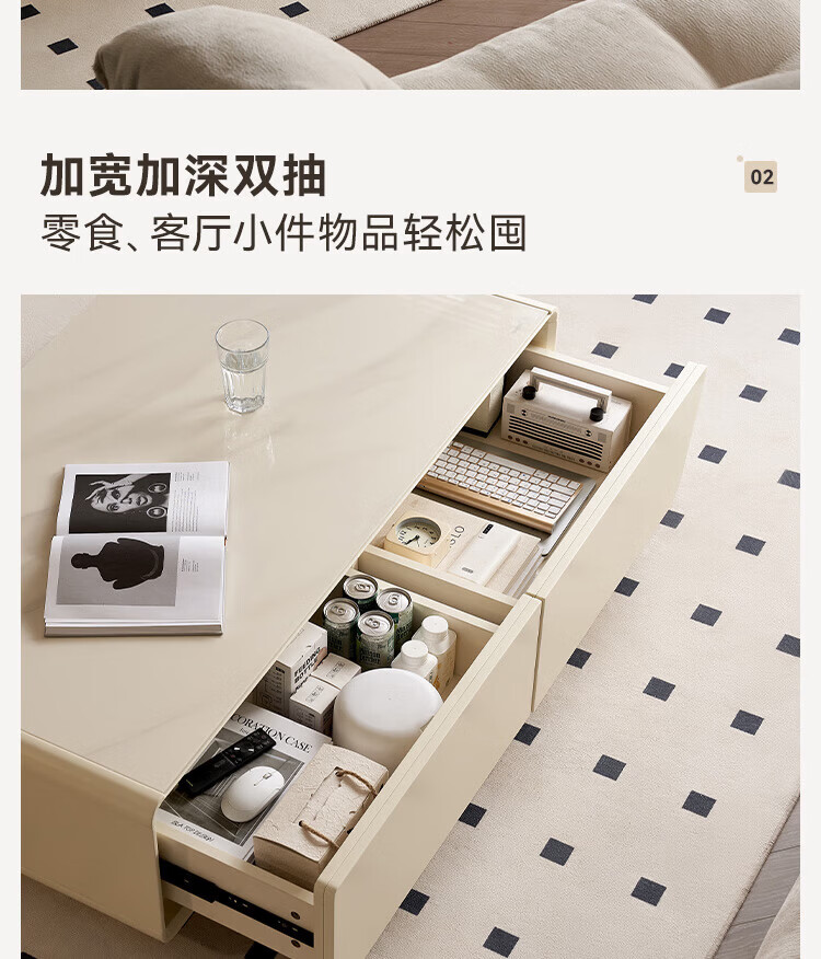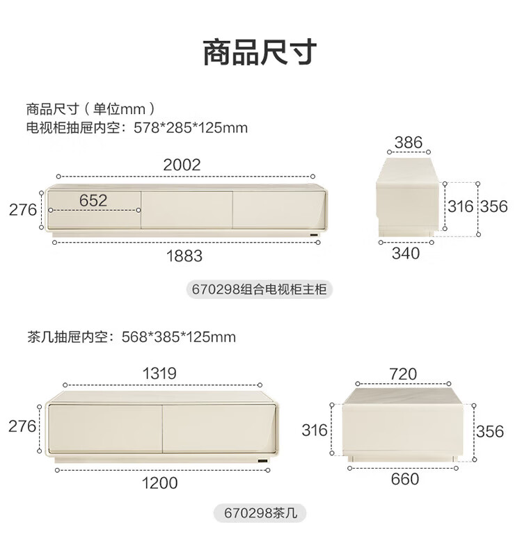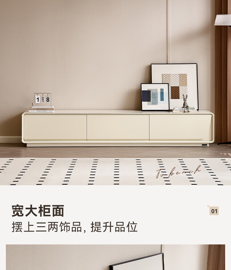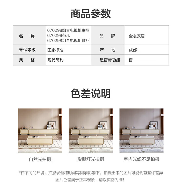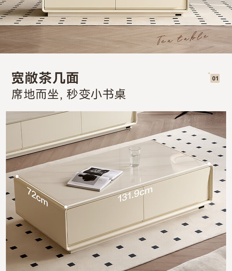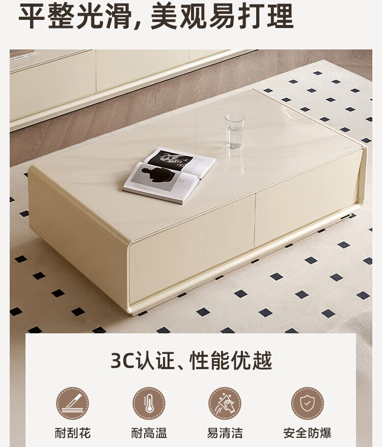 全友(QUANU)【迷瞪清仓货盘】椰奶方砖茶几电视柜收纳置物桌家用小户型茶几 钢化玻璃|电视柜附柜