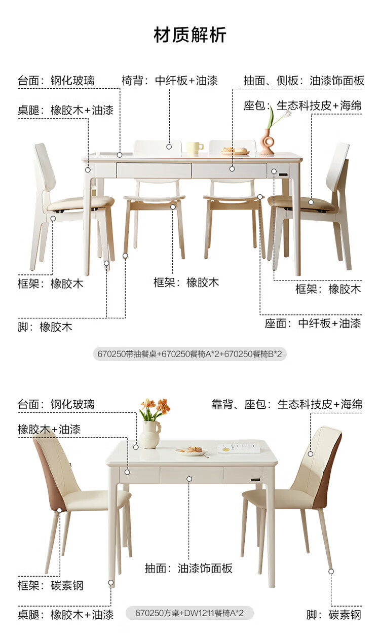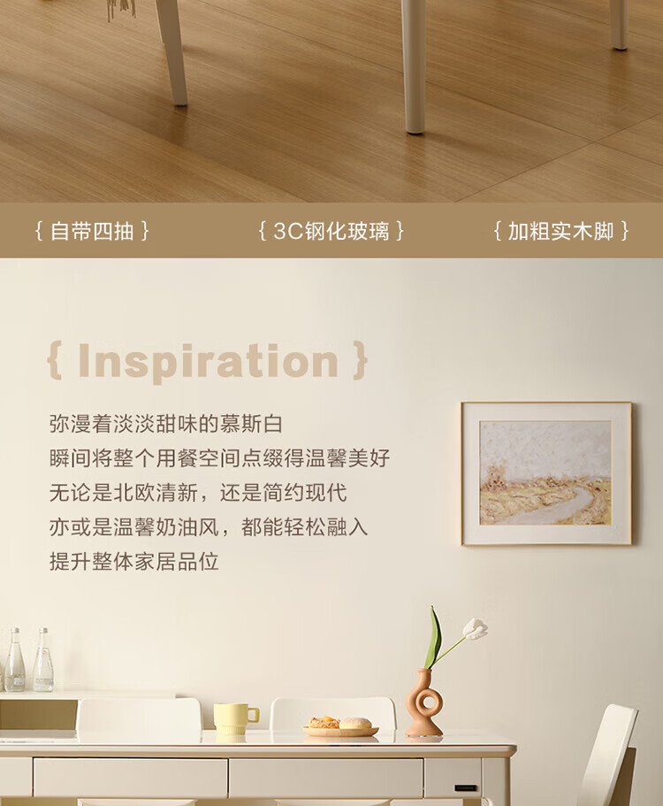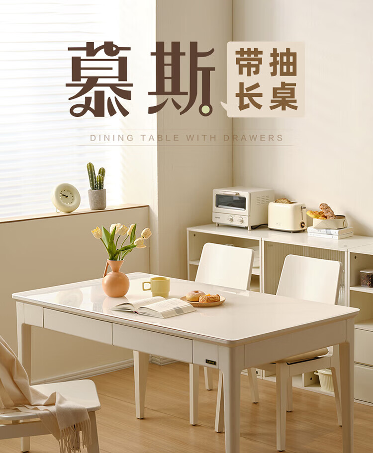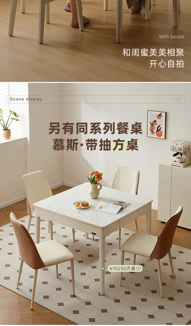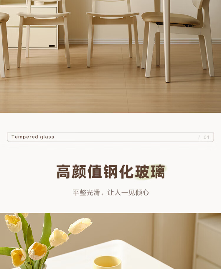 全友(QUANU)【迷瞪清仓货盘】带抽屉餐桌小户型实木腿家用收纳储物长餐桌椅子 钢化玻璃|方桌+慕斯软包椅*4