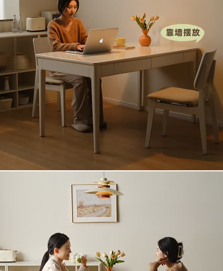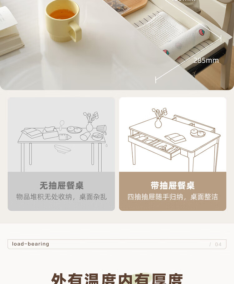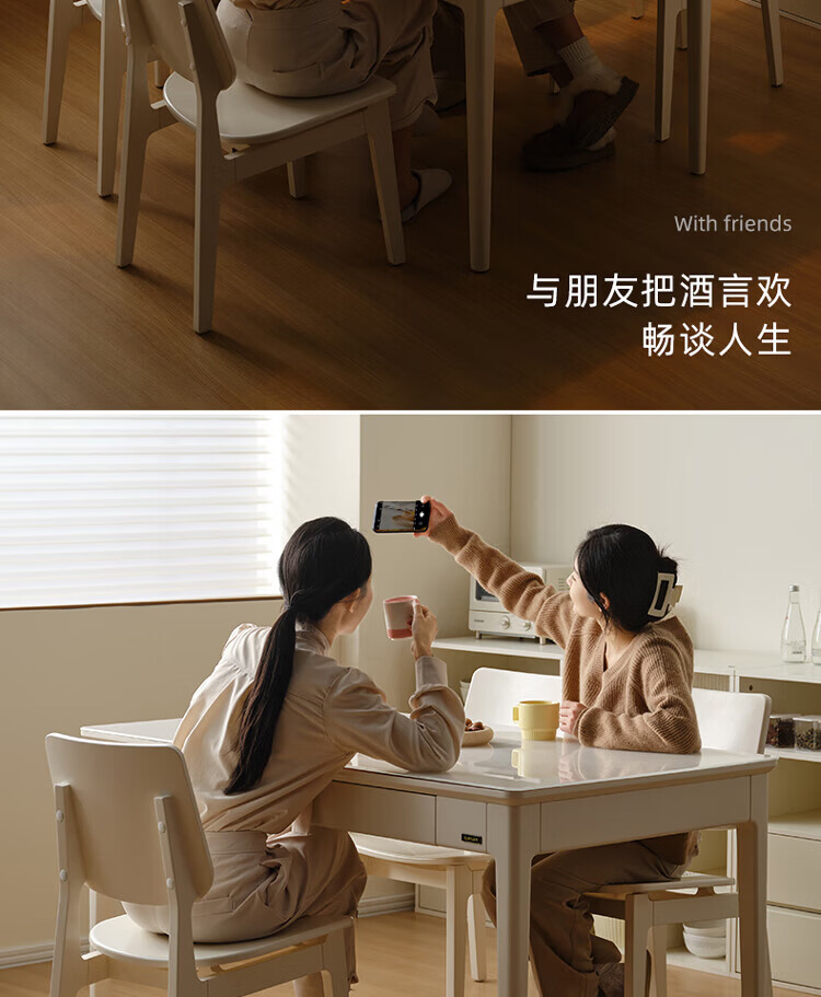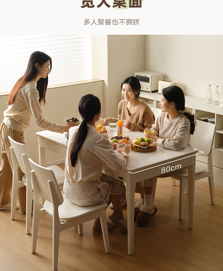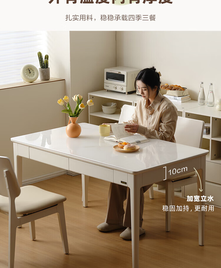 全友(QUANU)【迷瞪清仓货盘】带抽屉餐桌小户型实木腿家用收纳储物长餐桌椅子 钢化玻璃|方桌+慕斯软包椅*4