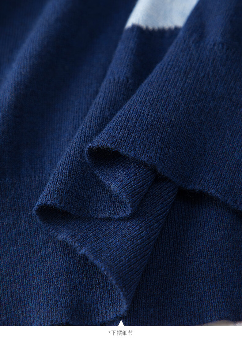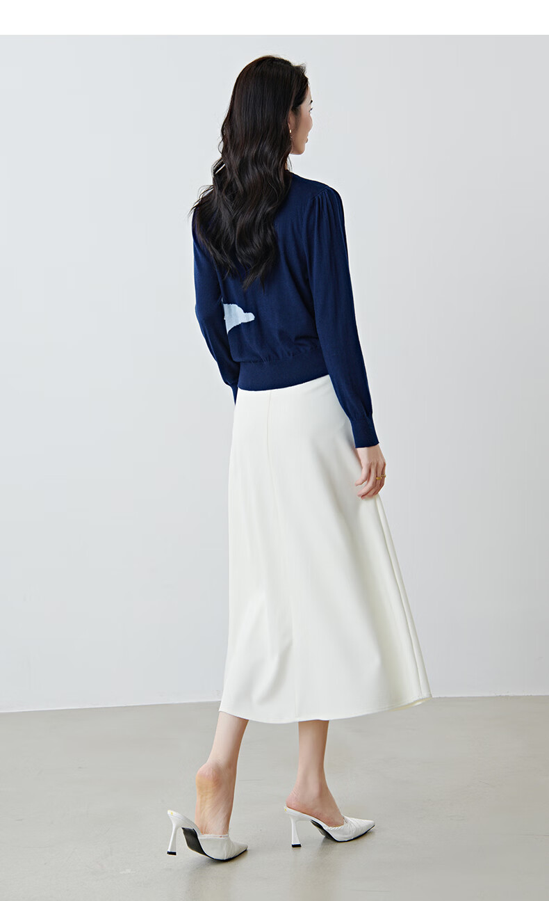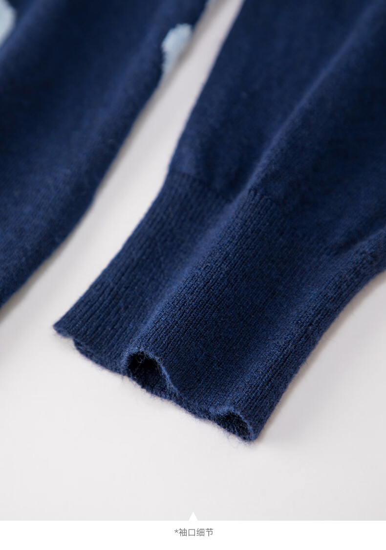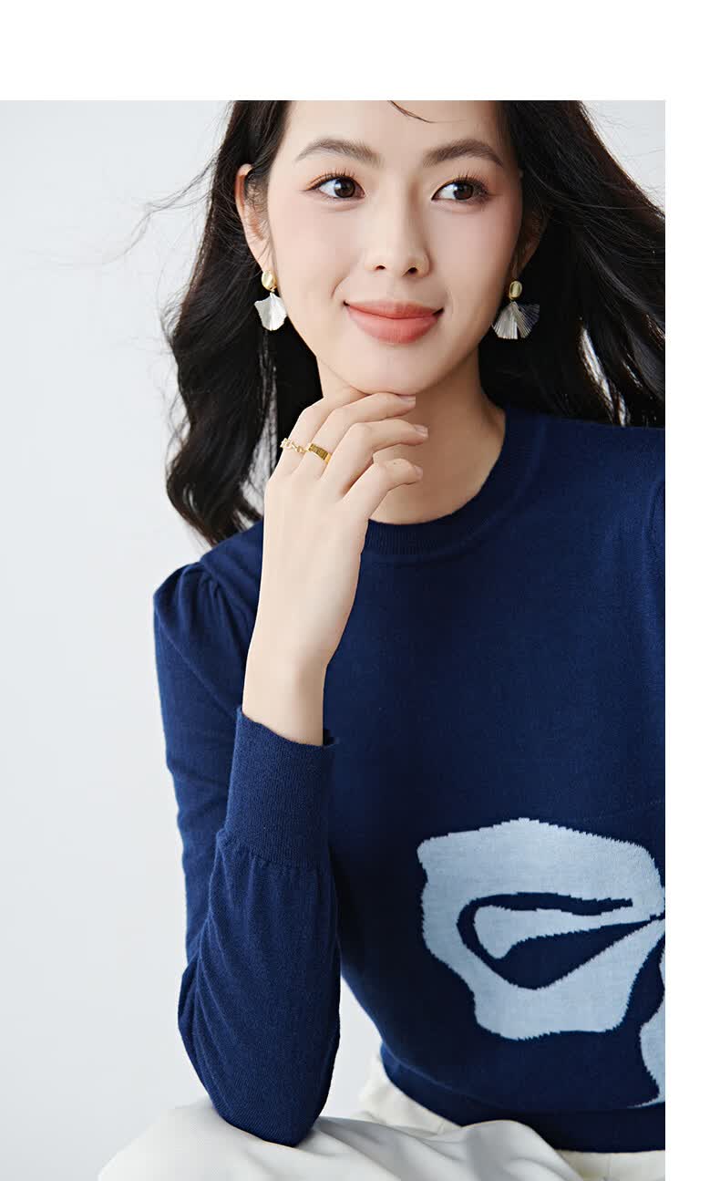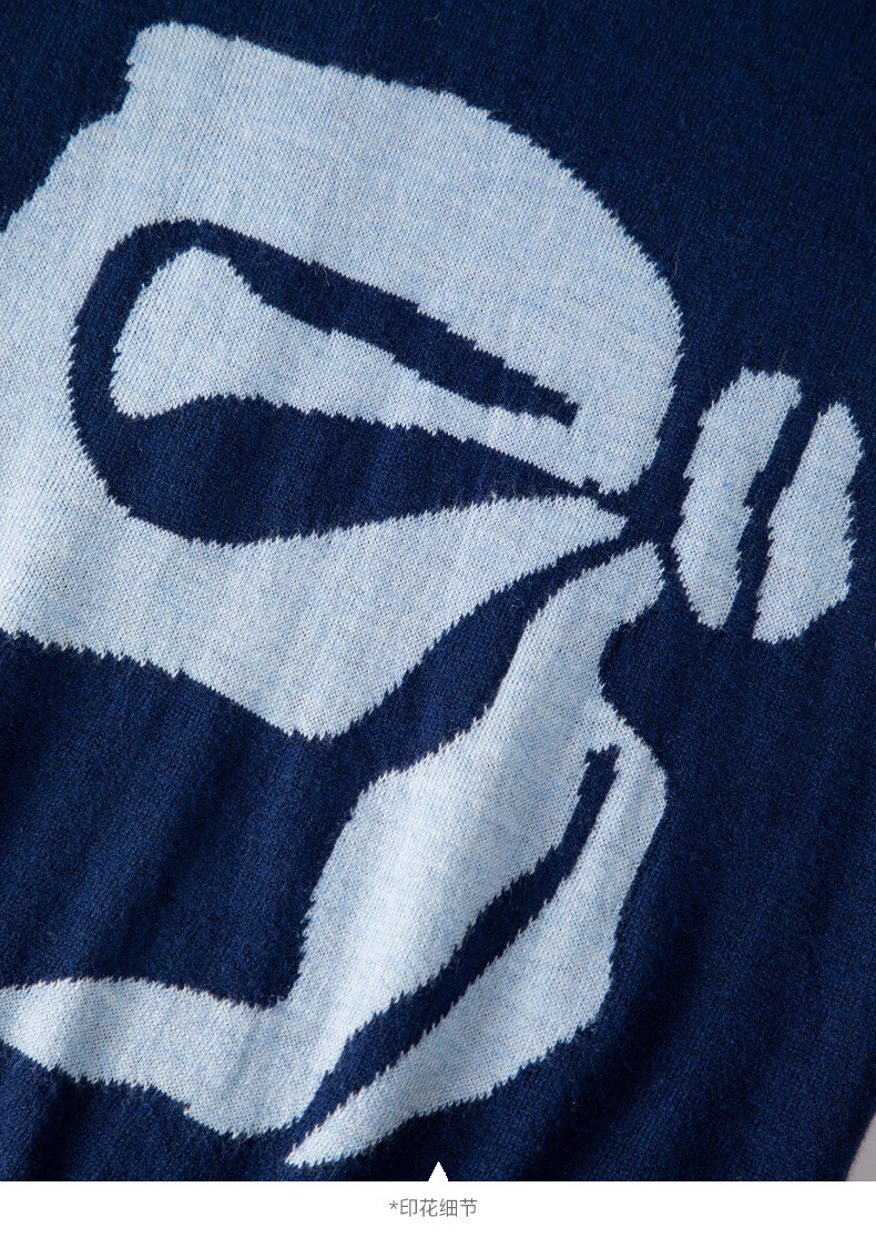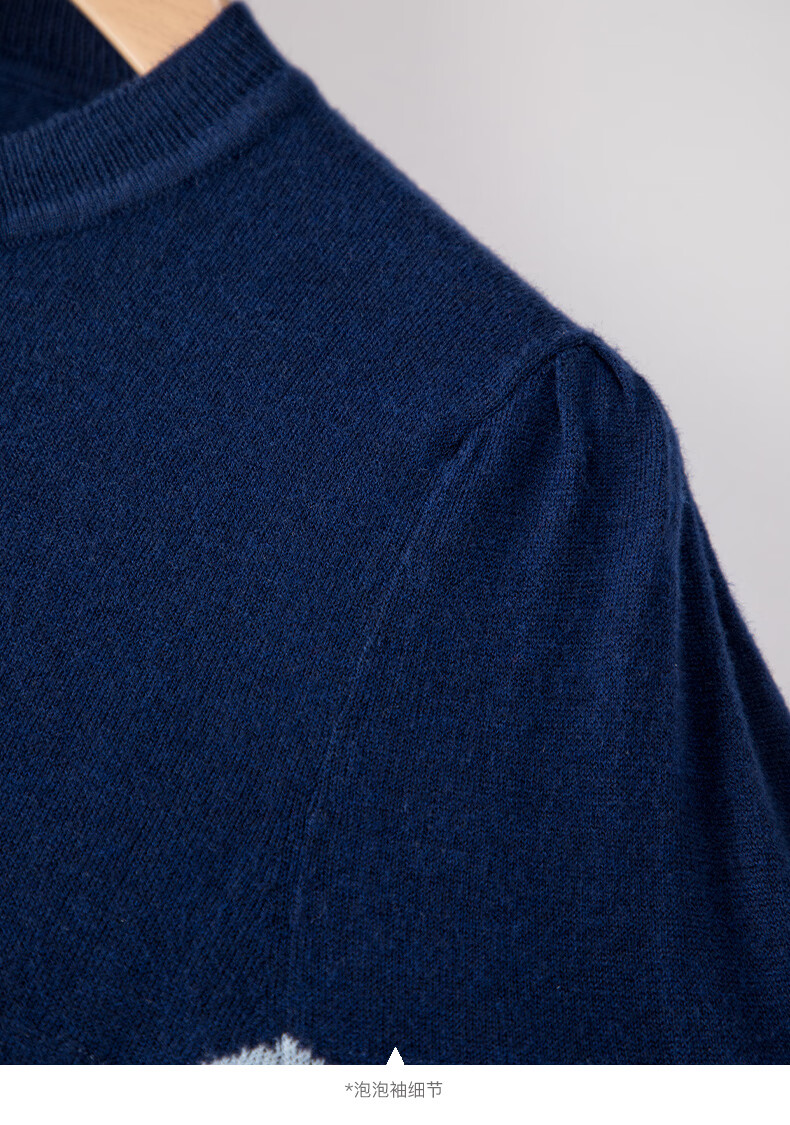 晚白2026春款时尚撞色高温洗烘定型圆领上衣蝴蝶结印花宽松显瘦针织衫 蓝色 L