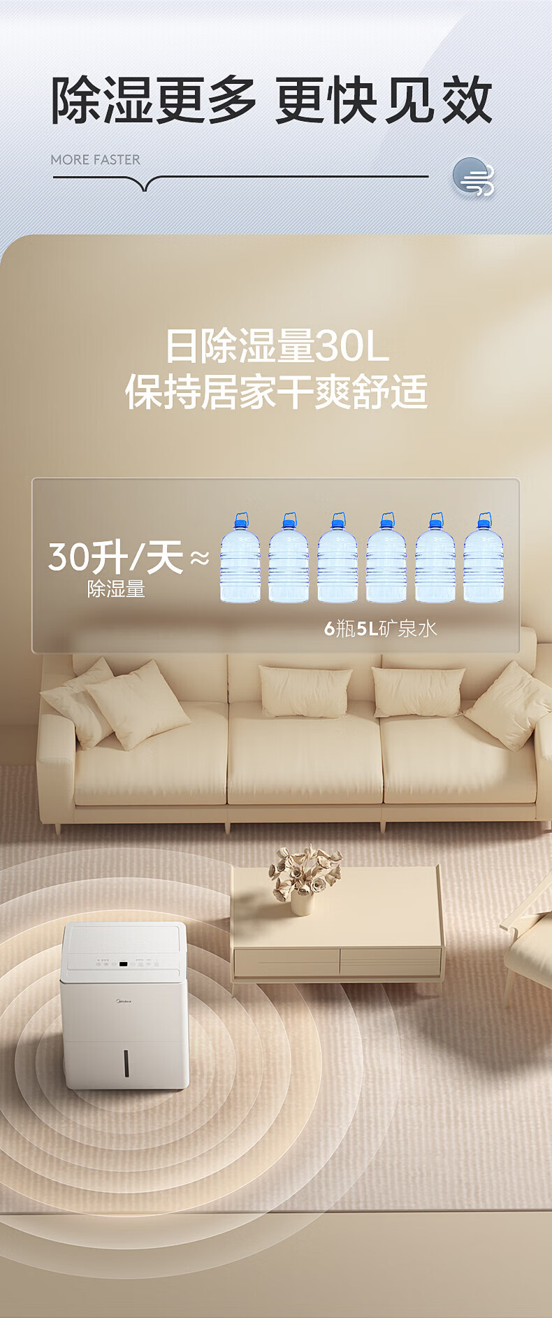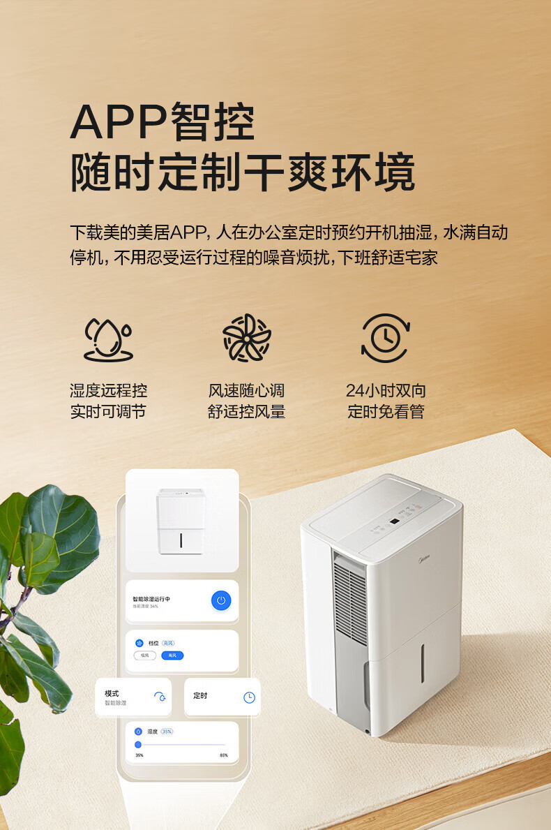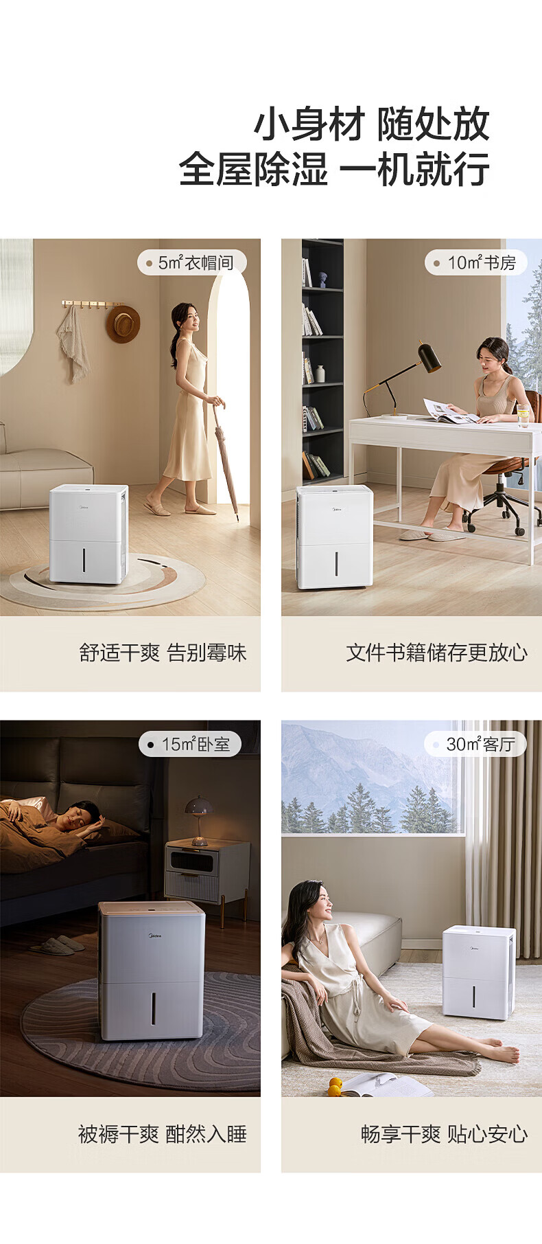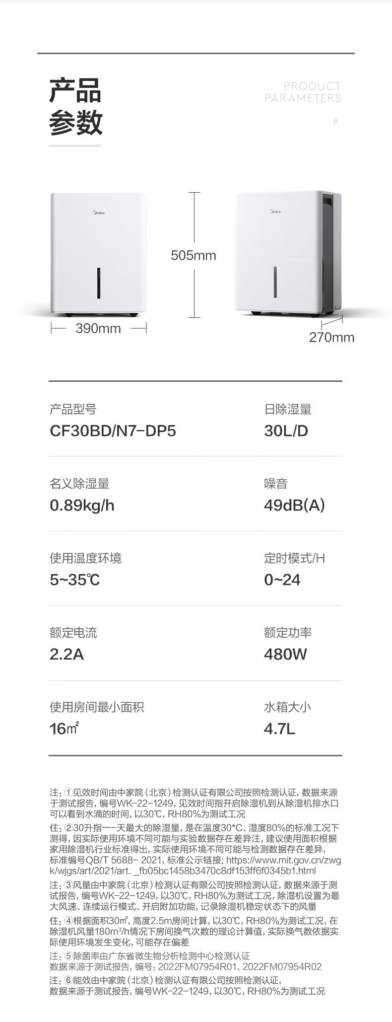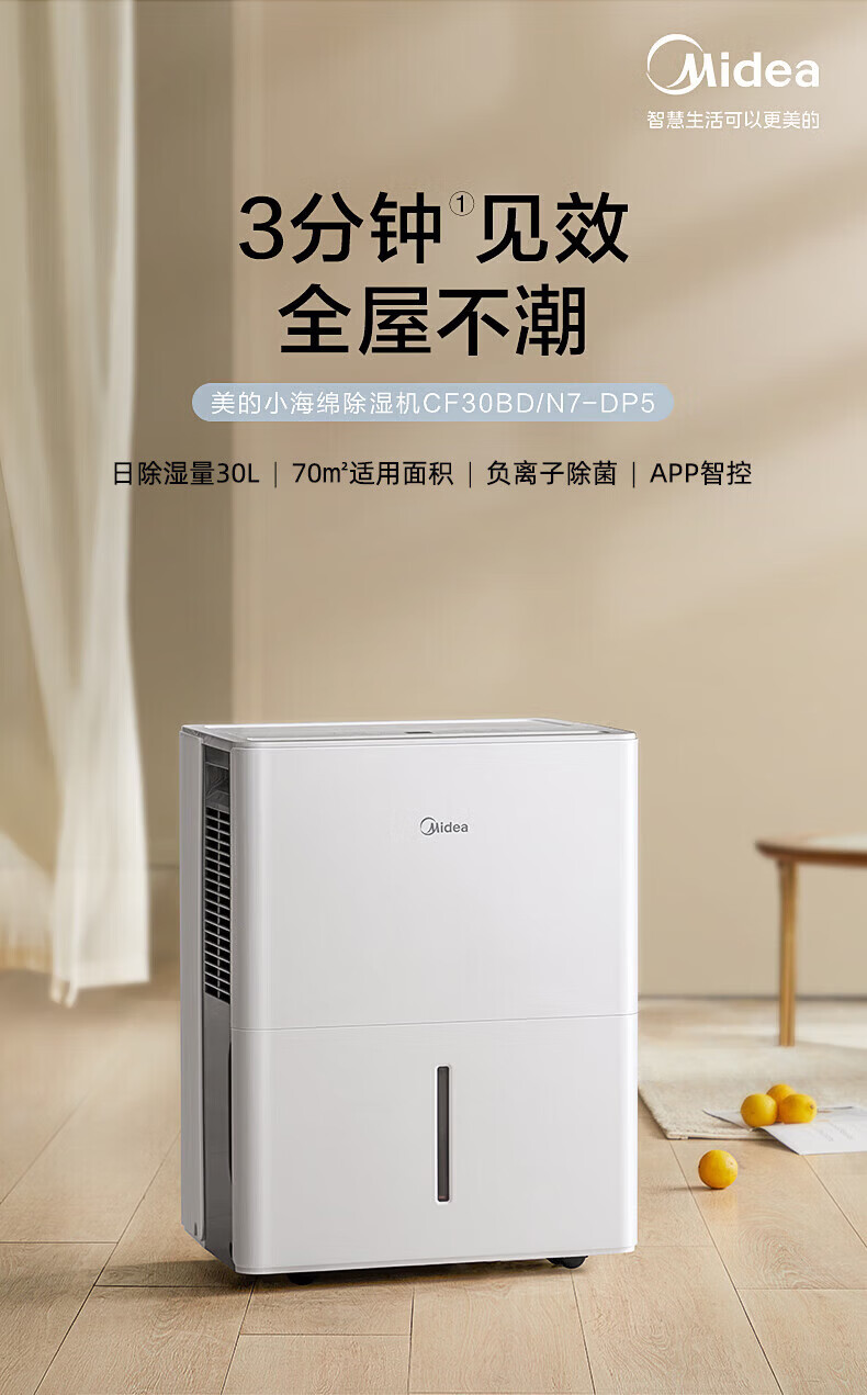 美的除湿机/抽湿机 小海绵除湿机/除湿量30/54升/天 家用轻音App智控 地下室大功率除湿器 30L/天 40-70㎡ CF30BD/N7-DP5