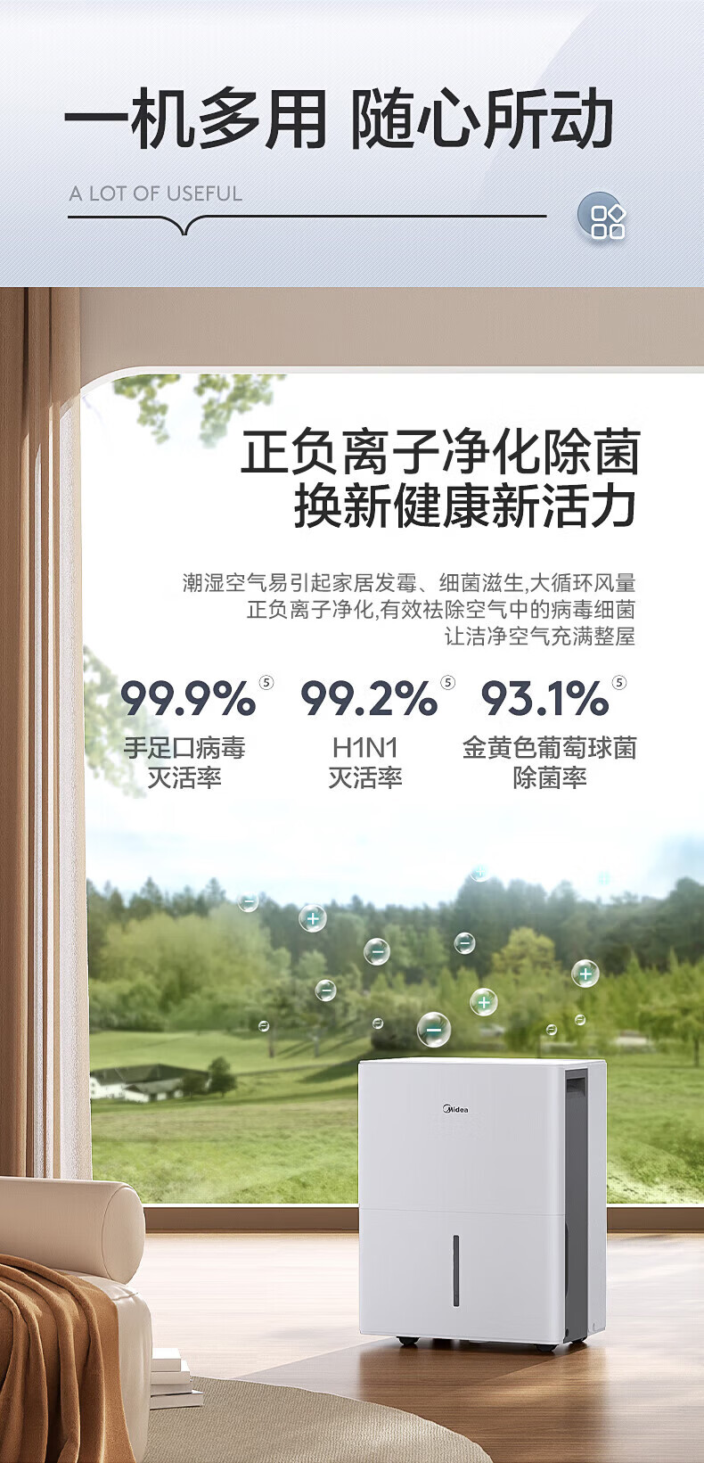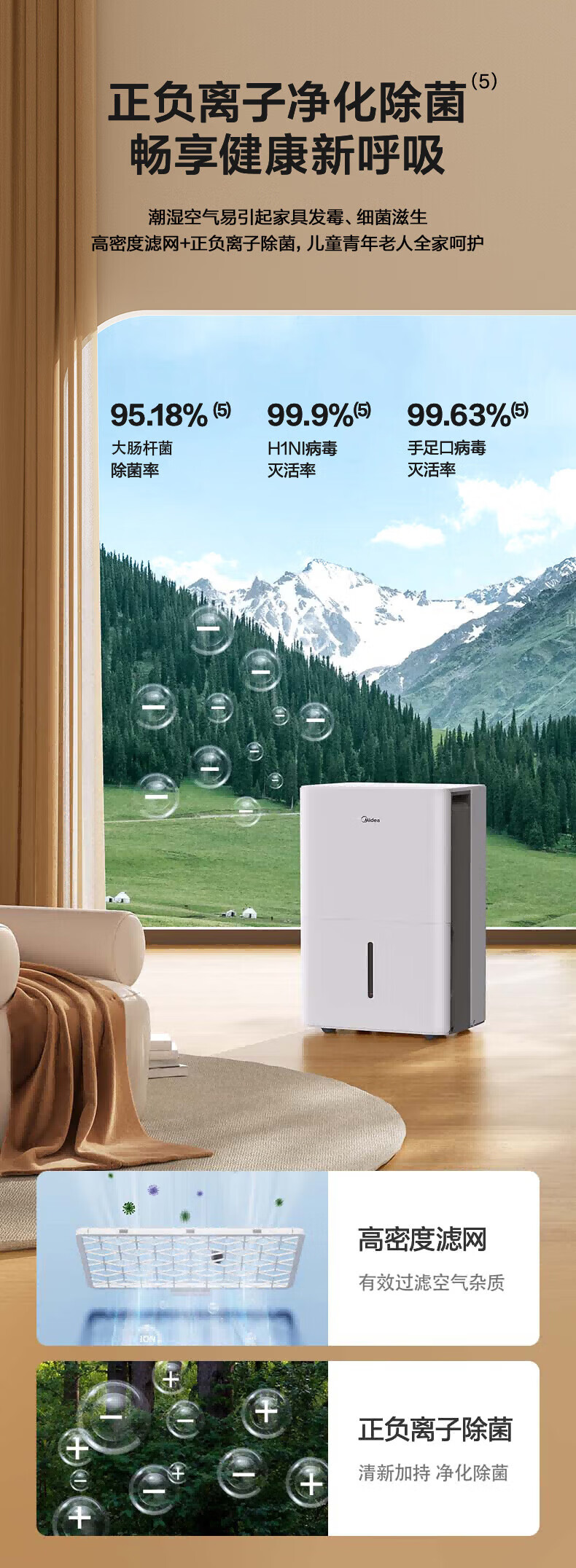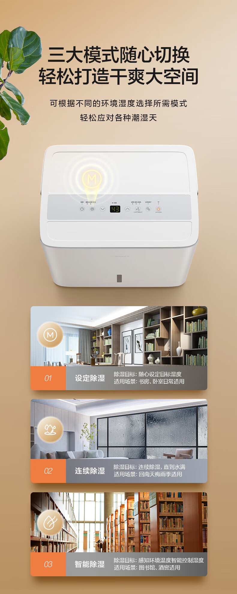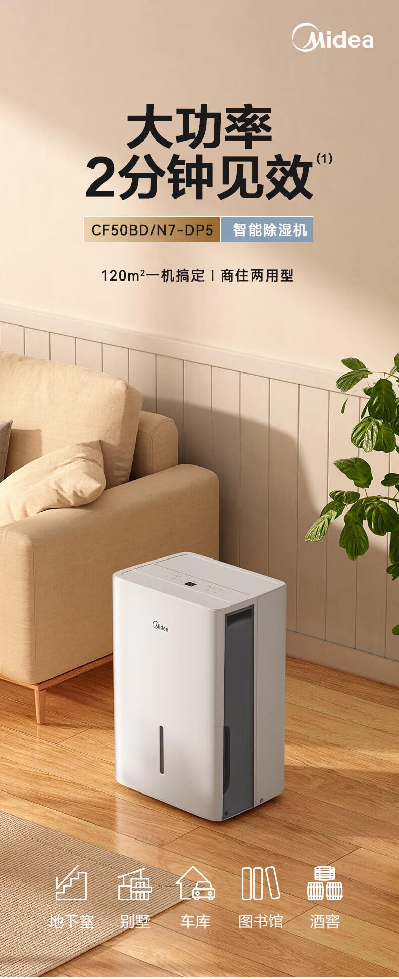 美的除湿机/抽湿机 小海绵除湿机/除湿量30/54升/天 家用轻音App智控 地下室大功率除湿器 30L/天 40-70㎡ CF30BD/N7-DP5