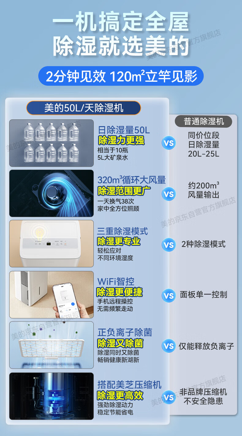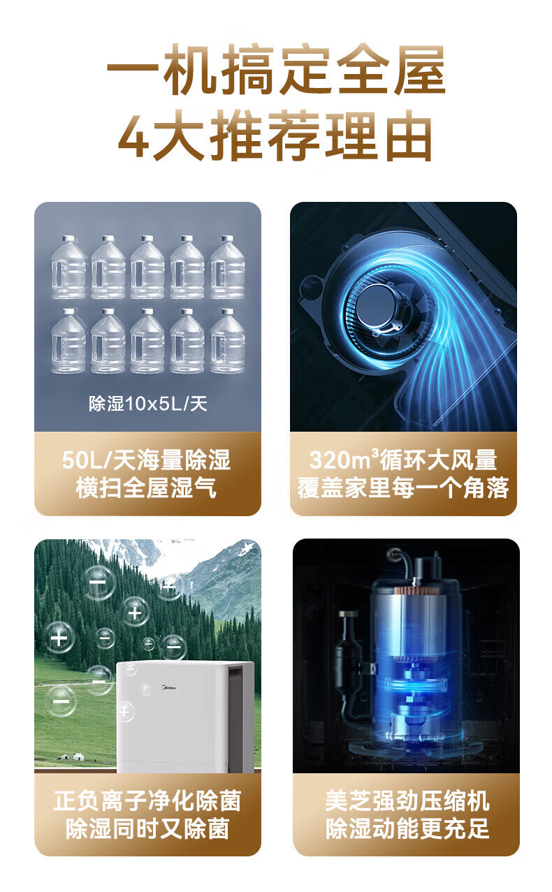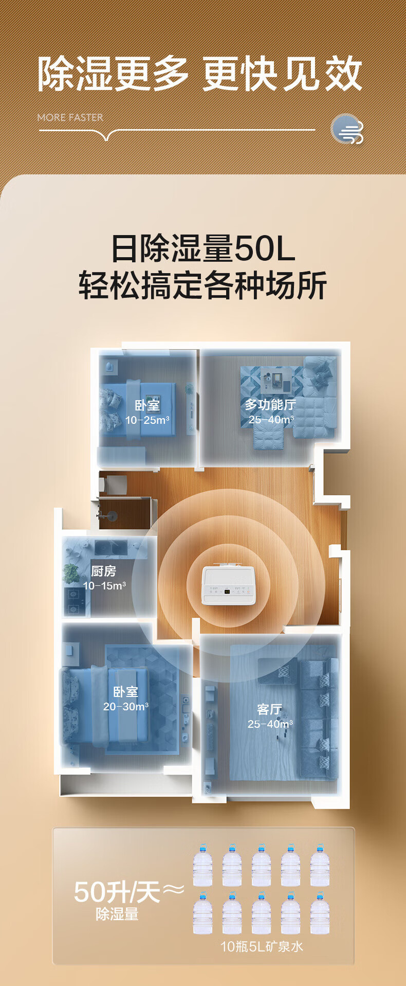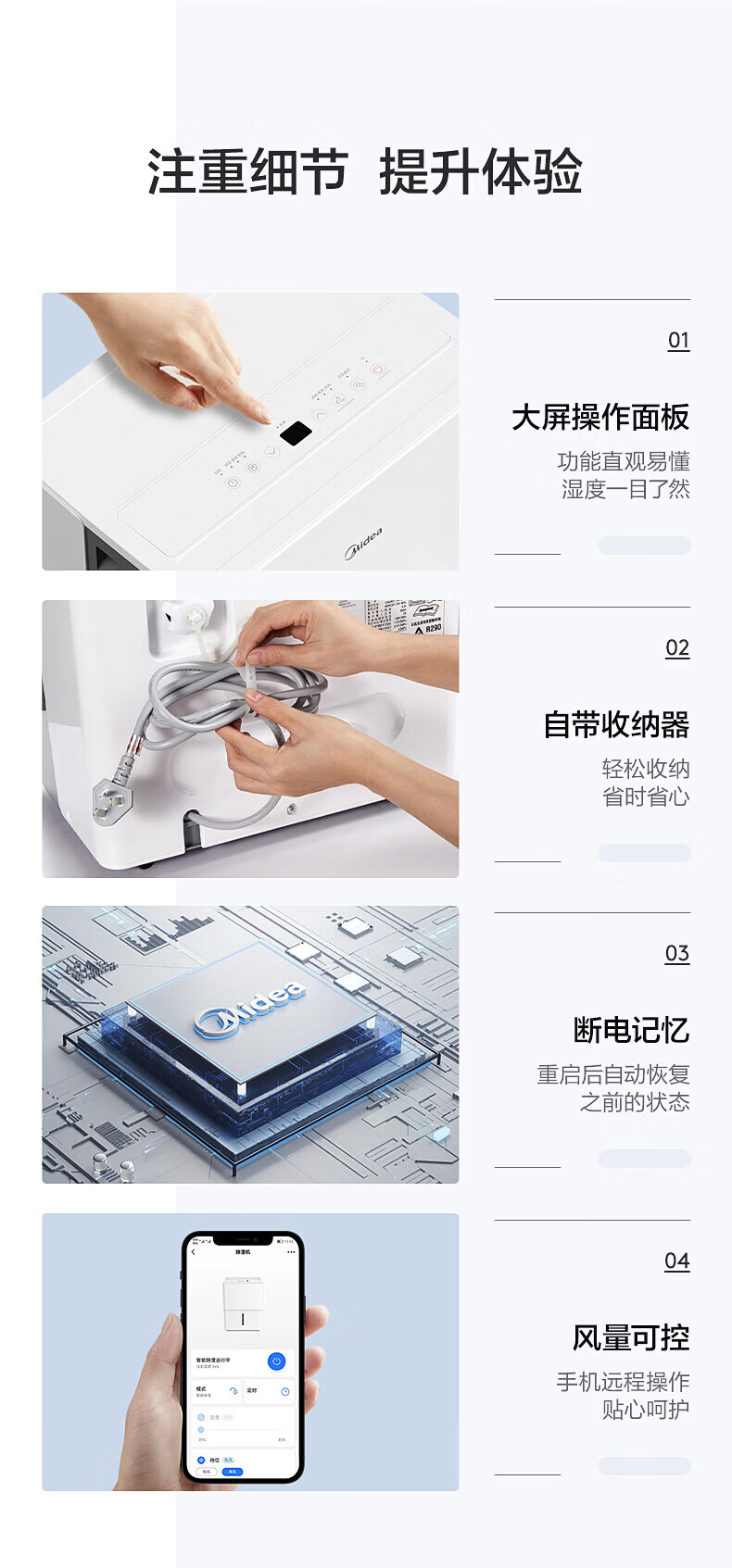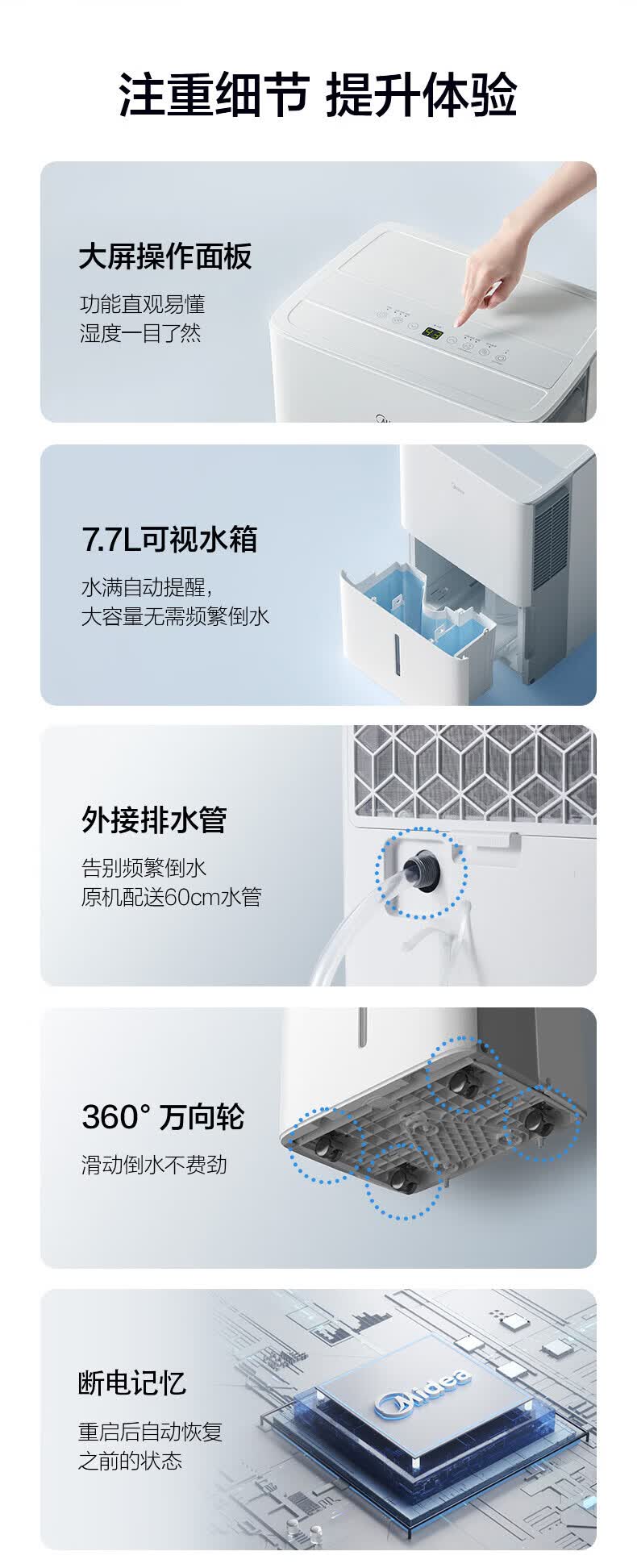 美的除湿机/抽湿机 小海绵除湿机/除湿量30/54升/天 家用轻音App智控 地下室大功率除湿器 30L/天 40-70㎡ CF30BD/N7-DP5