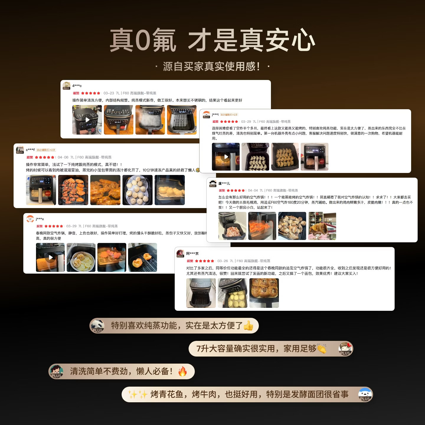 追觅空气炸锅蒸烤一体 大师系列F60 双热源免翻面 7L家用大容量 0氟钛陶烤盘 全金属内腔 2026年新款