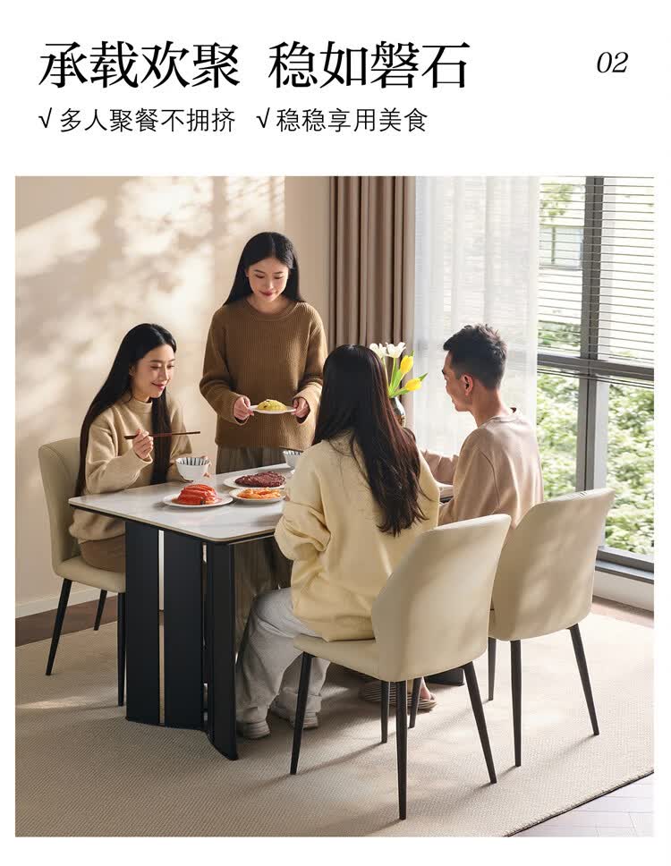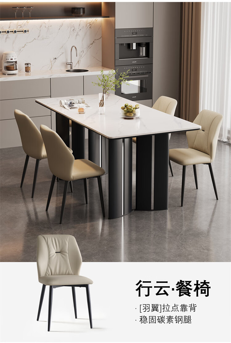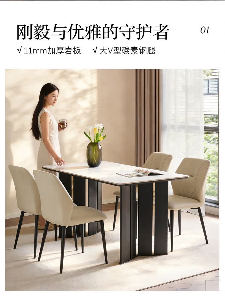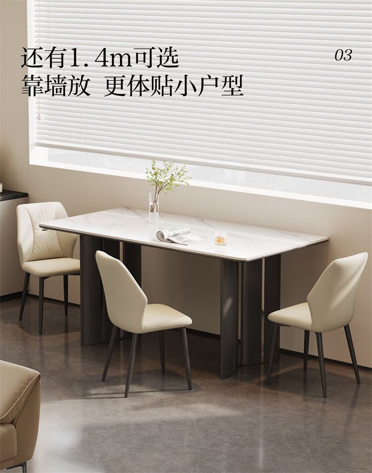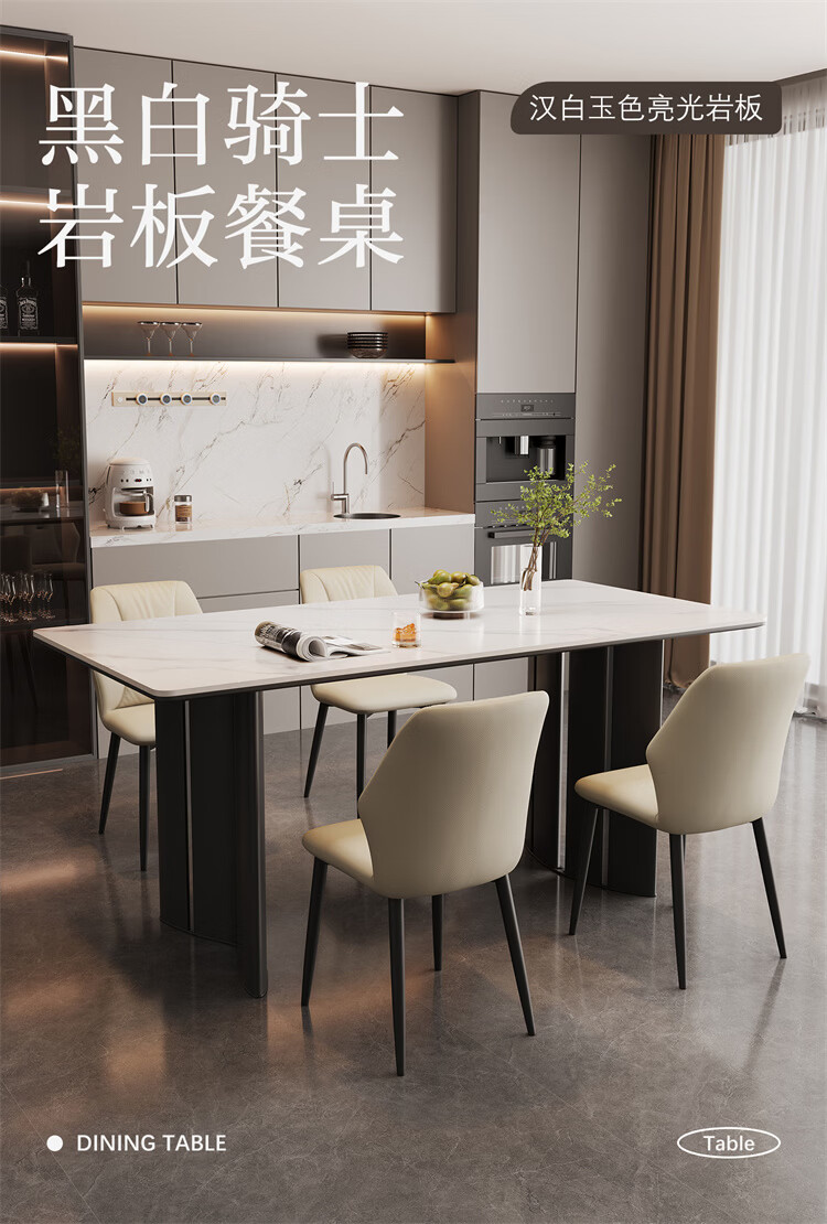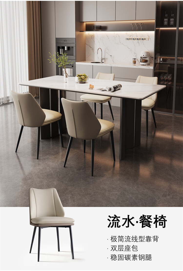 全友家居现代简约岩板餐桌轻奢高级感2026新款餐桌椅组合套装一桌四椅 【亮光岩板】1.4米餐桌+流水·餐椅*4
