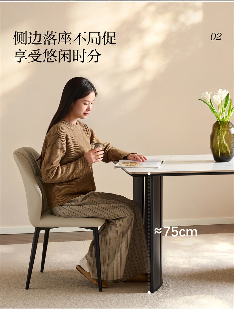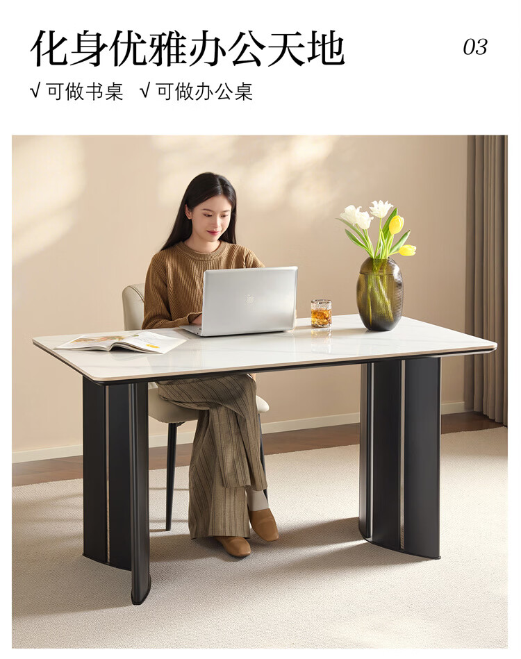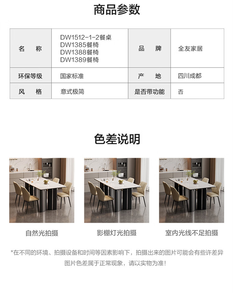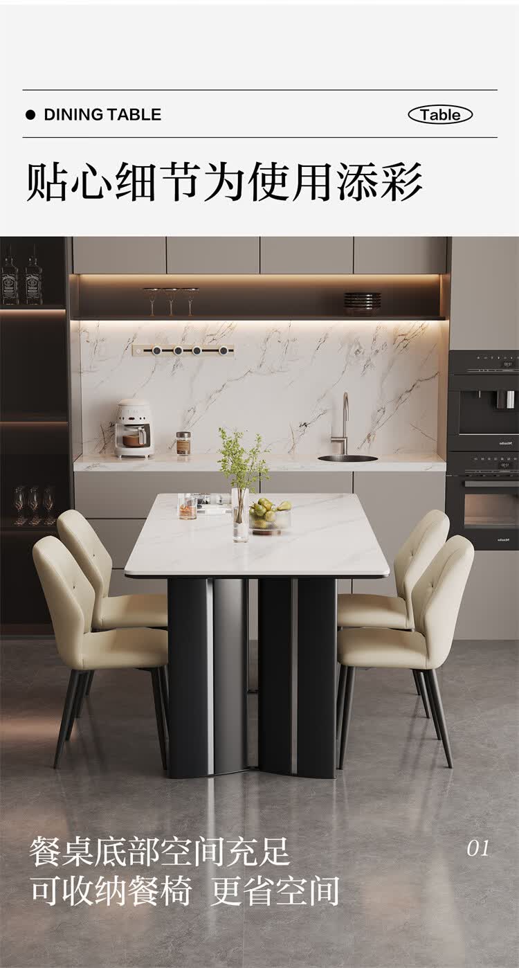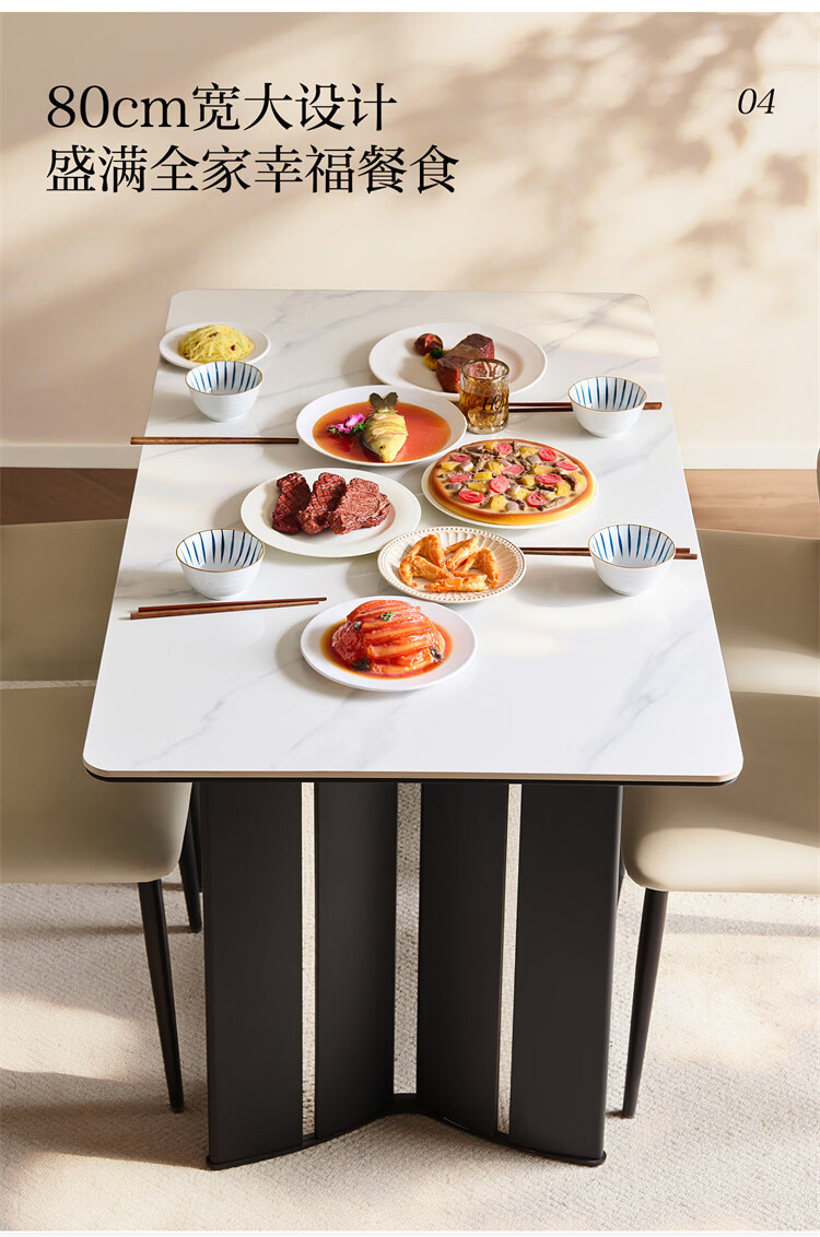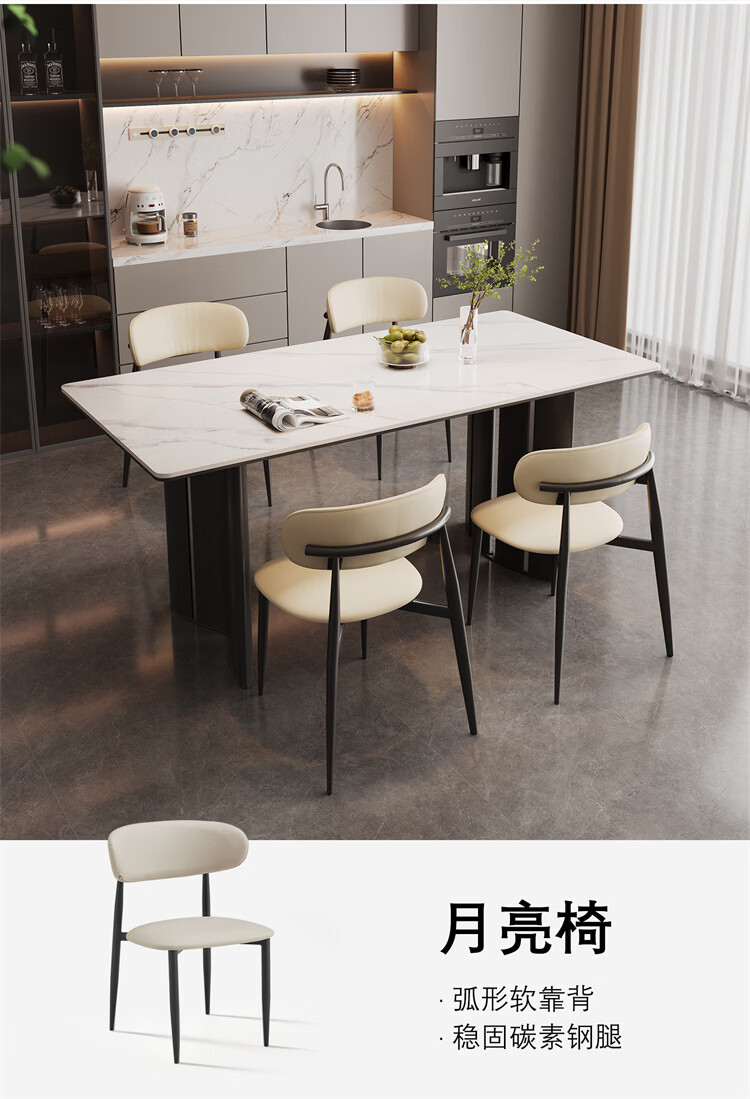 全友家居现代简约岩板餐桌轻奢高级感2026新款餐桌椅组合套装一桌四椅 【亮光岩板】1.4米餐桌+流水·餐椅*4