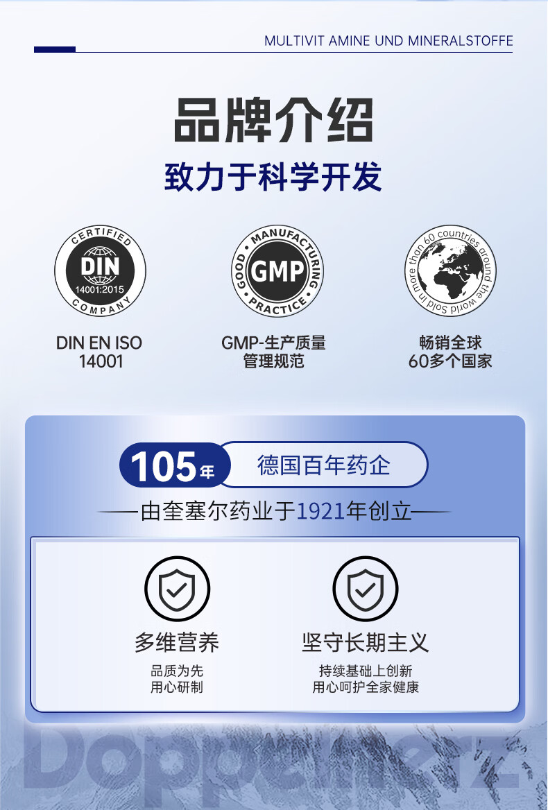 双心(Doppel herz)复合维生素矿物质片16种多维烟酰胺叶酸 蓝帽保健品 男士复合多维 60粒*2盒 【1周期】