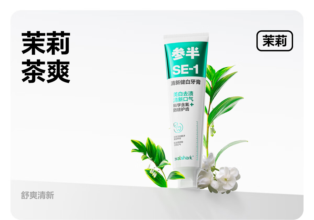 参半SE-1清新健白美白亮白牙膏去黄去牙渍防龋清新口气茉莉茶爽味180g