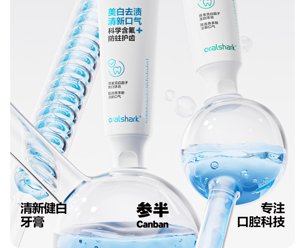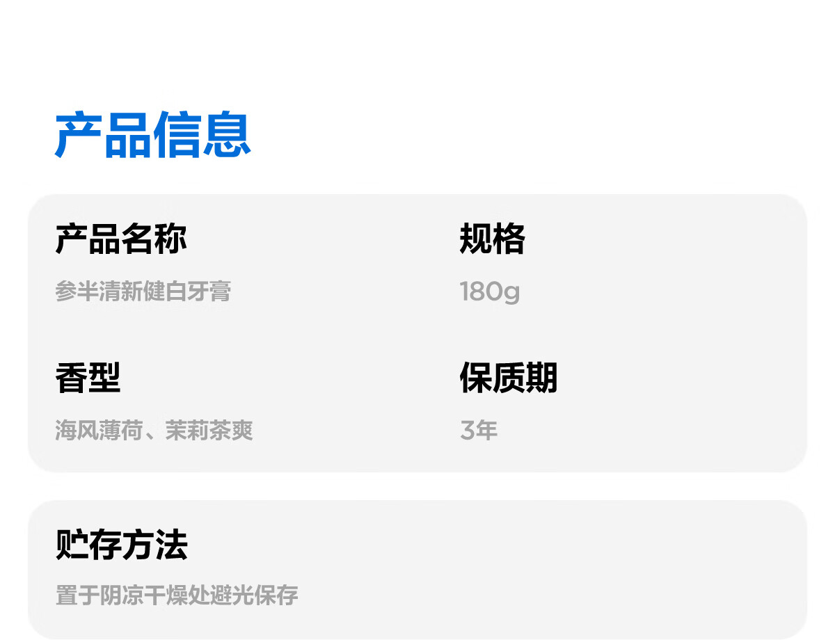 参半 洁白牙膏 氨基酸美白亮白去黄清新去渍防渍120g