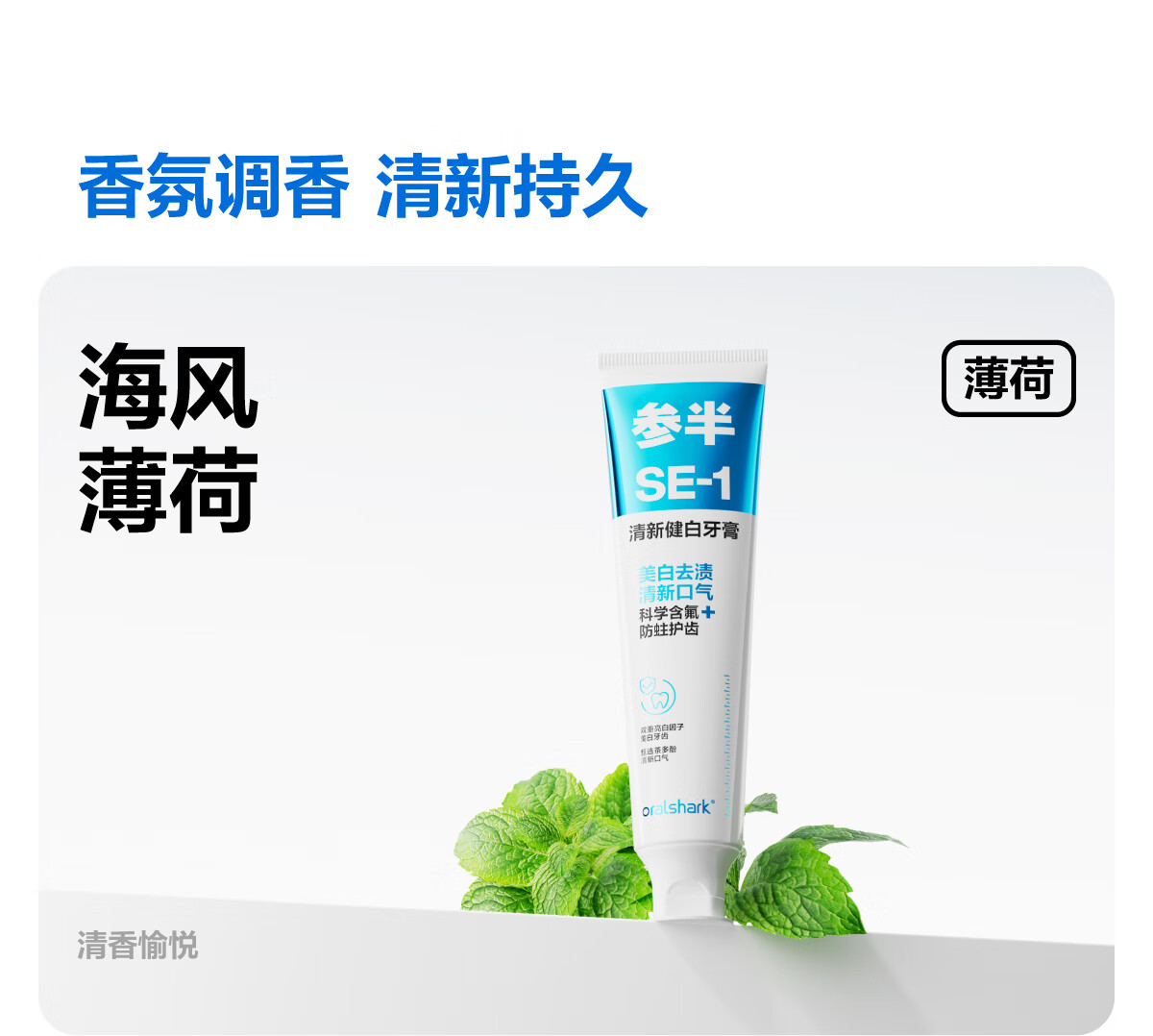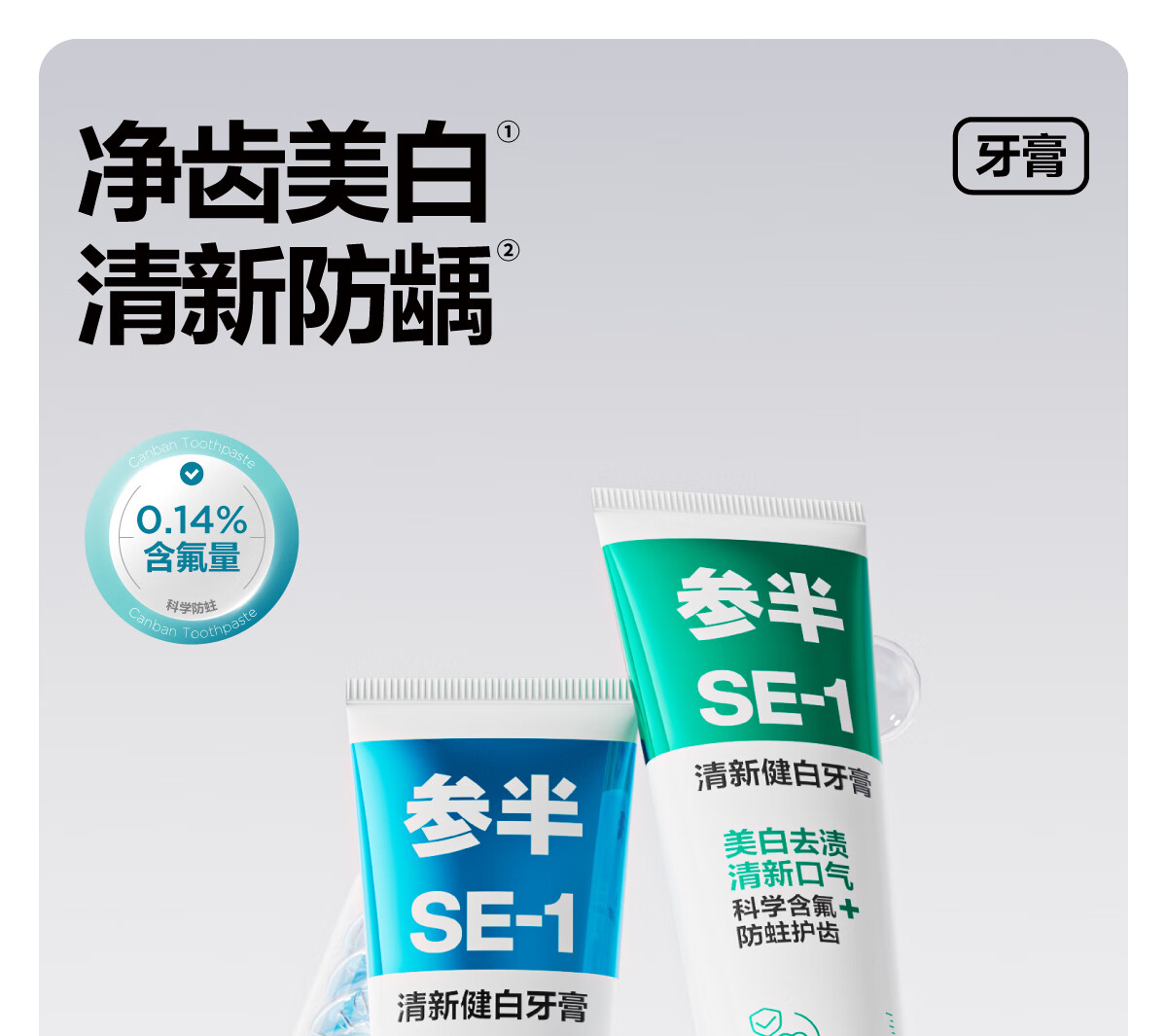 参半SE-1清新健白美白亮白牙膏去黄去牙渍防龋清新口气海风薄荷味180g
