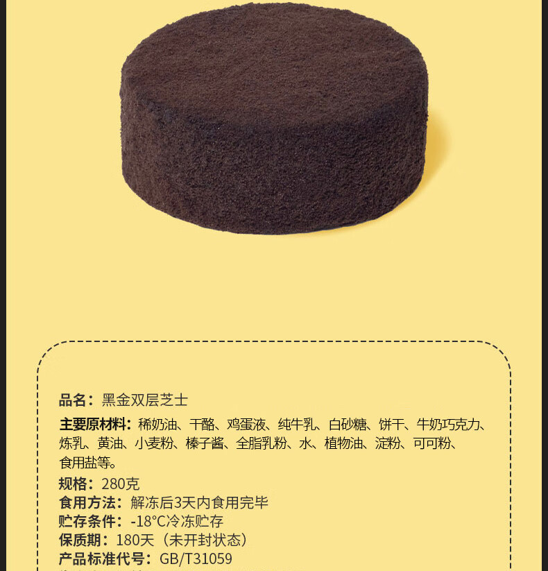 映悦黑金双层芝士蛋糕280g零食网红甜品冷链早餐聚会下午茶盒子 黑金双层芝士蛋糕280g/盒(纯动物黄油)