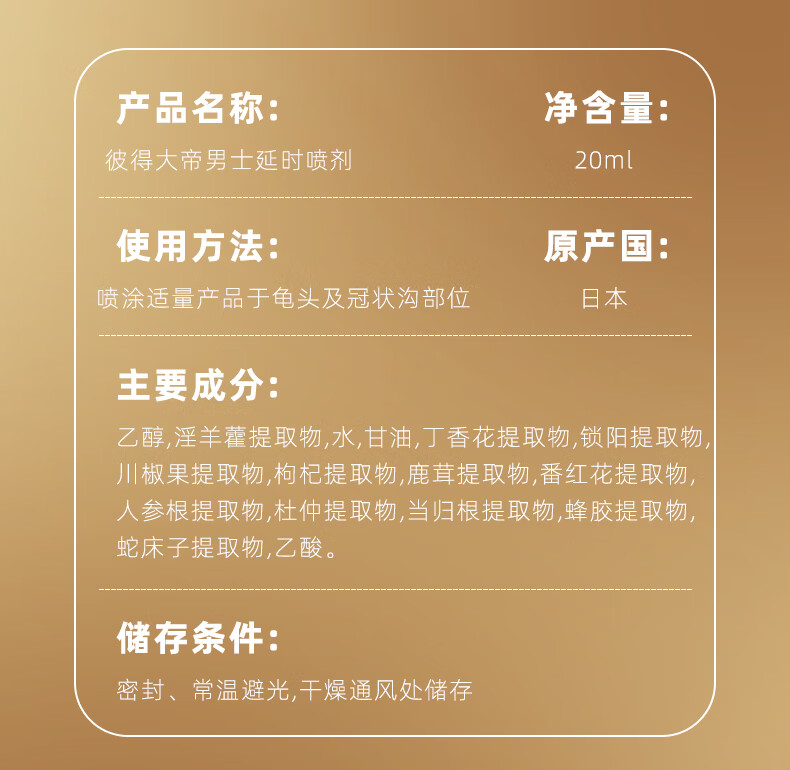 彼得大帝 进口男用延时喷剂 鹿角延时喷雾 延时持久口不麻木男士外用延长夫妻房事专用大容量成人情趣用品