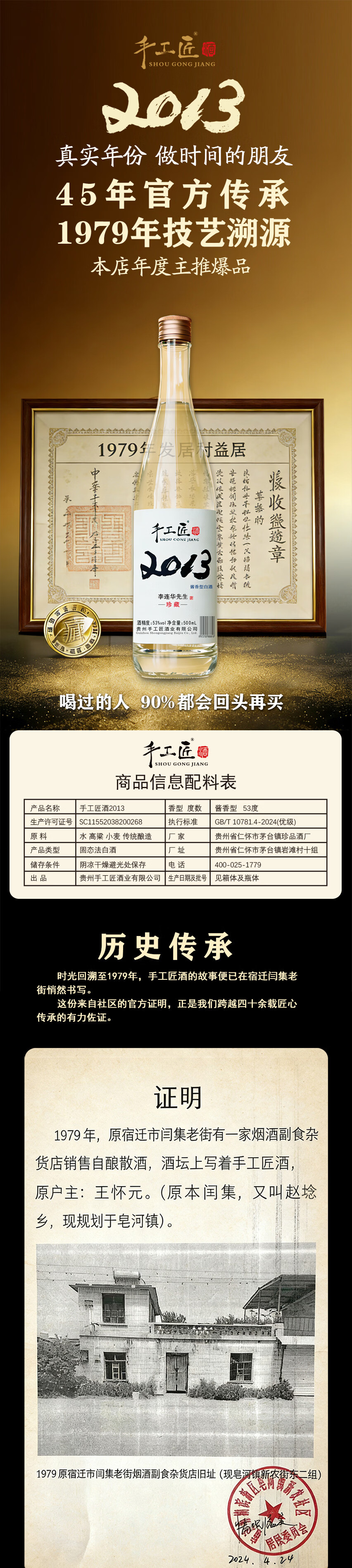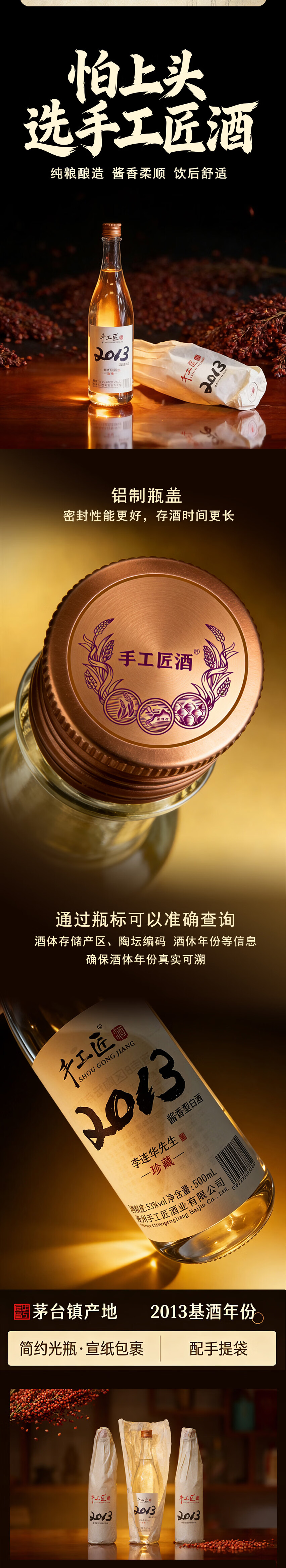 手工匠2013酱酒 白酒 53度500mL 酒 老酱酒 酱香经典 白酒酱香型 茅台镇 53度 50mL 1瓶 手工匠酒2013品鉴