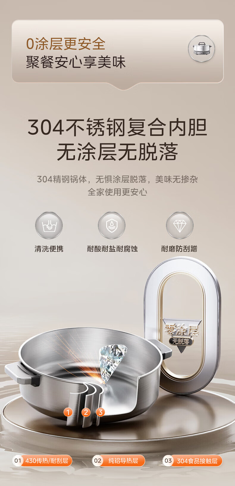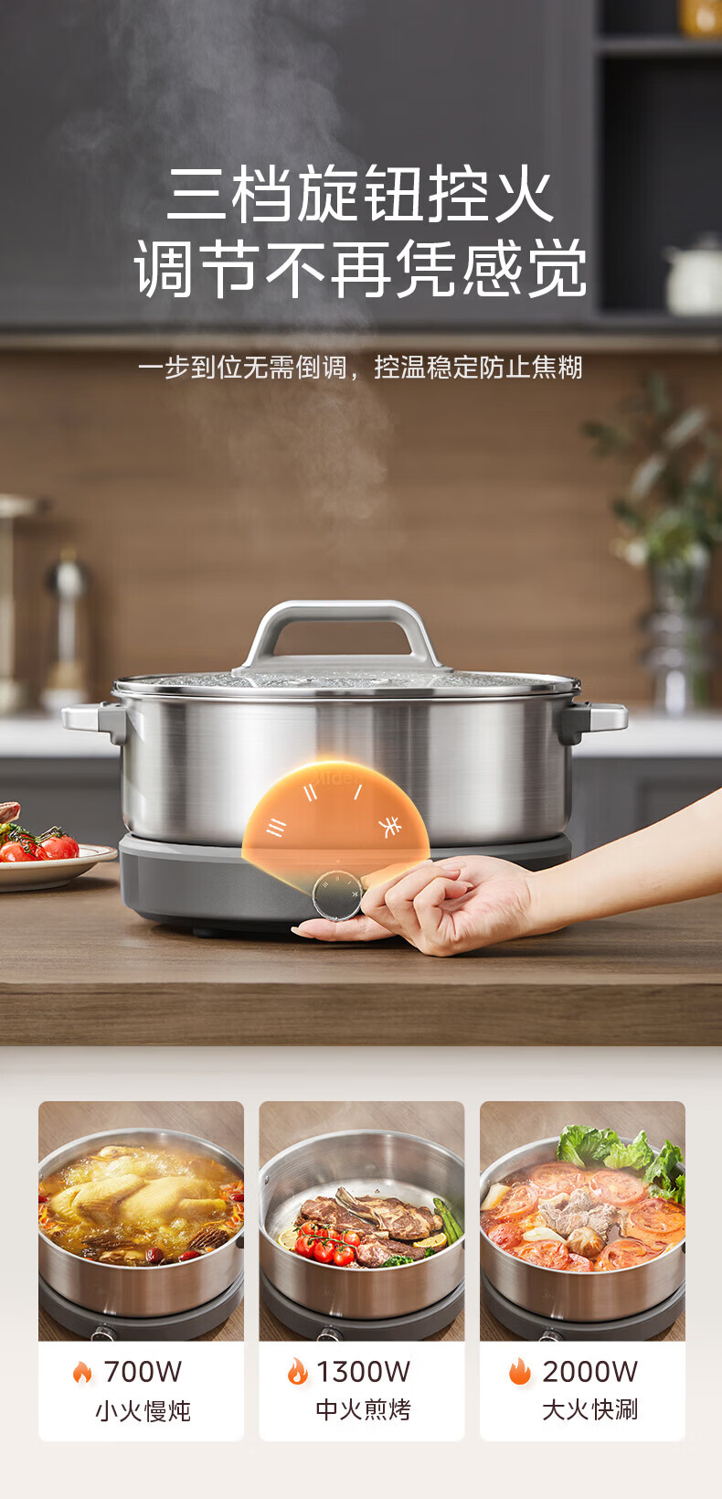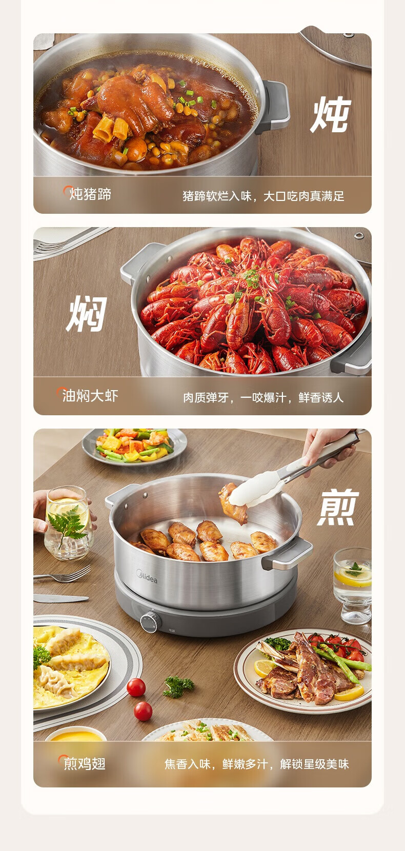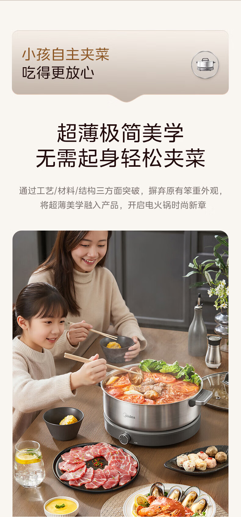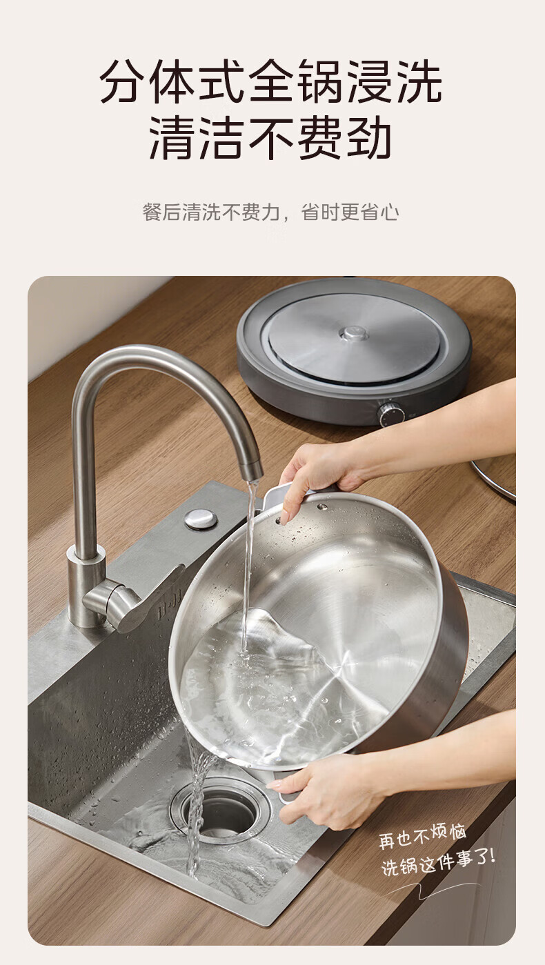 美的(Midea)0涂层电火锅电煮锅不锈钢火锅专用锅分体可拆全钢速沸电火锅电热锅多功能锅6.5L多用途锅HGS30G1