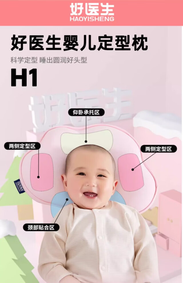好医生(HAOYISHENG)婴儿宝宝枕头0-6-12个月定型枕防偏头1-3岁儿童枕头护颈记忆枕 云朵枕【0-3岁/全水洗】 梦幻粉 【0-3岁】【医学定型+防惊吓】