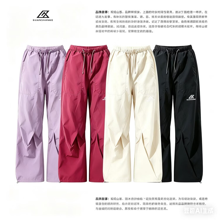 观山客 情侣防泼防风透气速干耐磨运动冲锋裤 浅卡其 XL