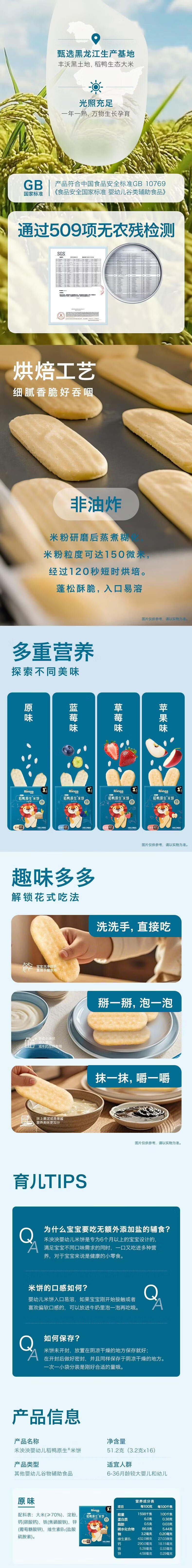 禾泱泱婴幼儿稻鸭原生米饼宝宝零食婴儿辅食儿童磨牙饼干6月+ 【热销/第一口米饼】1阶原味51.2g