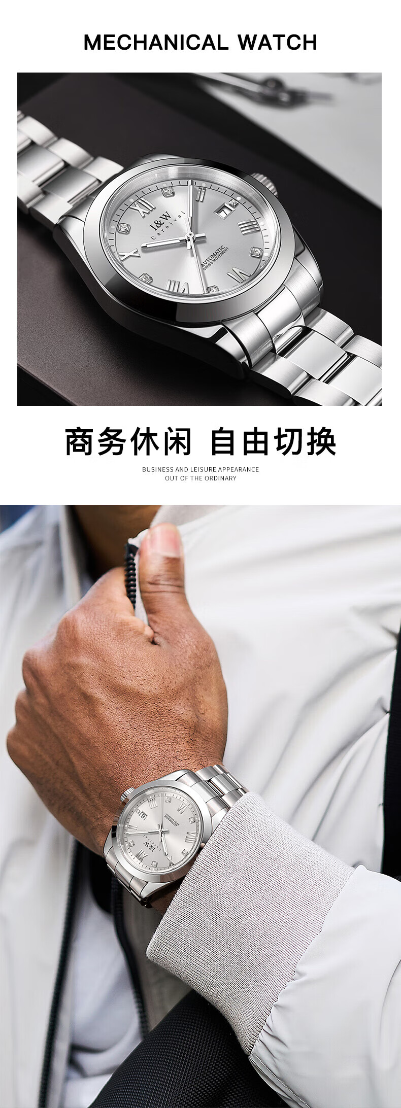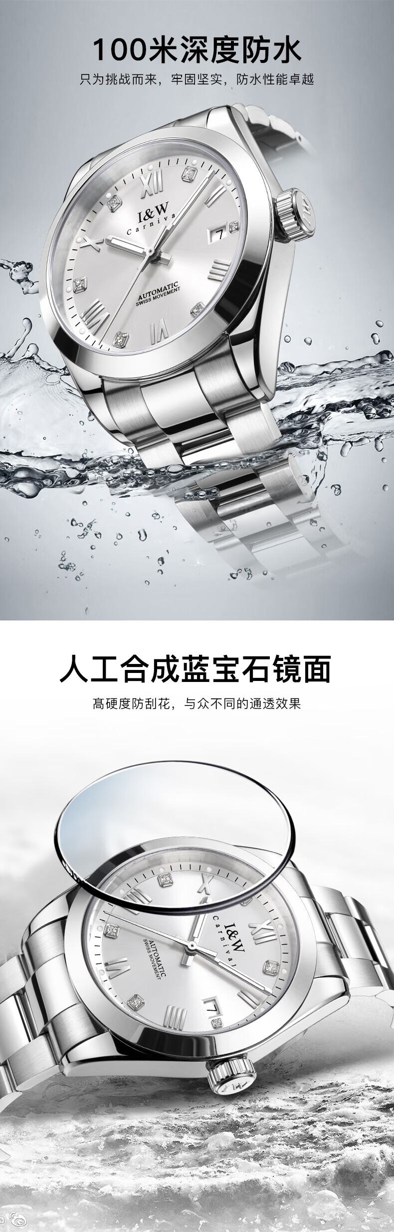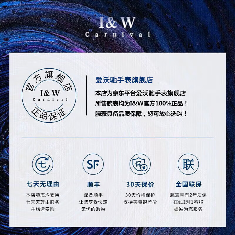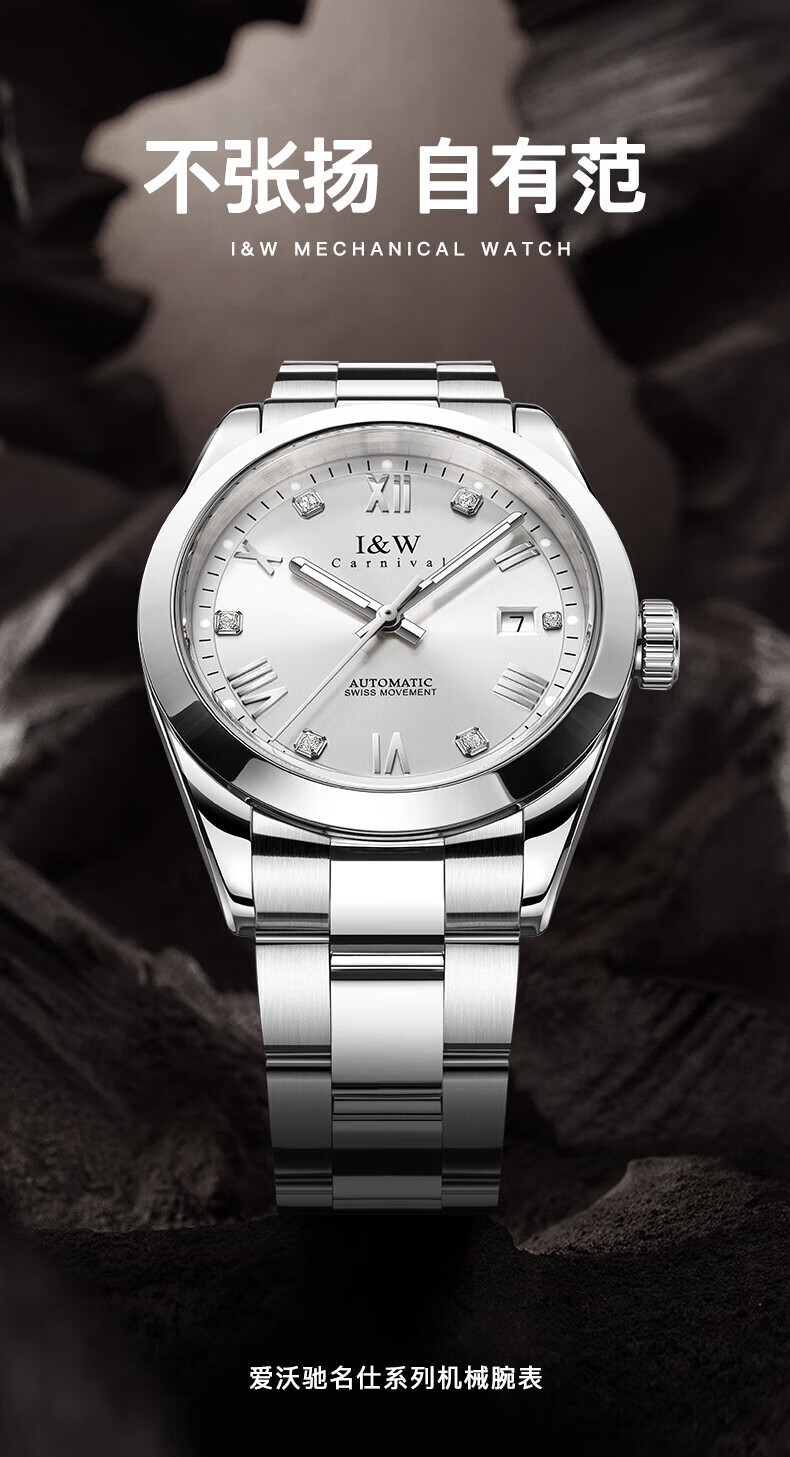 爱沃驰瑞士品牌IW手表男士机械表进口瑞士机芯夜光防水腕表品牌礼物手表 光圈雪花白【瑞士机芯】免费刻字