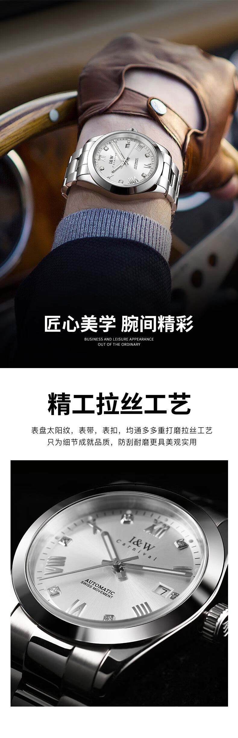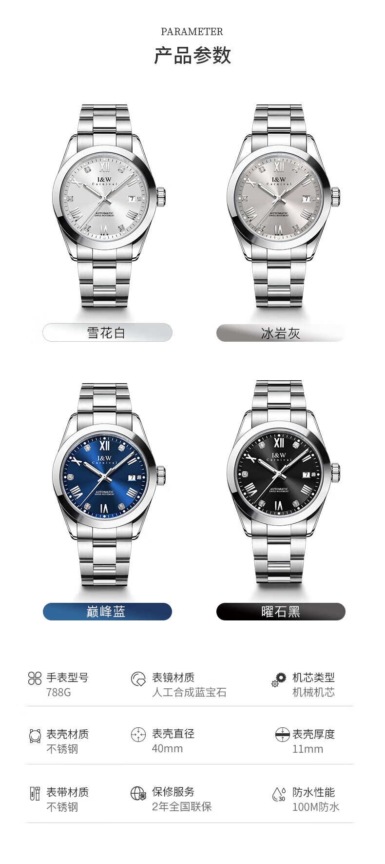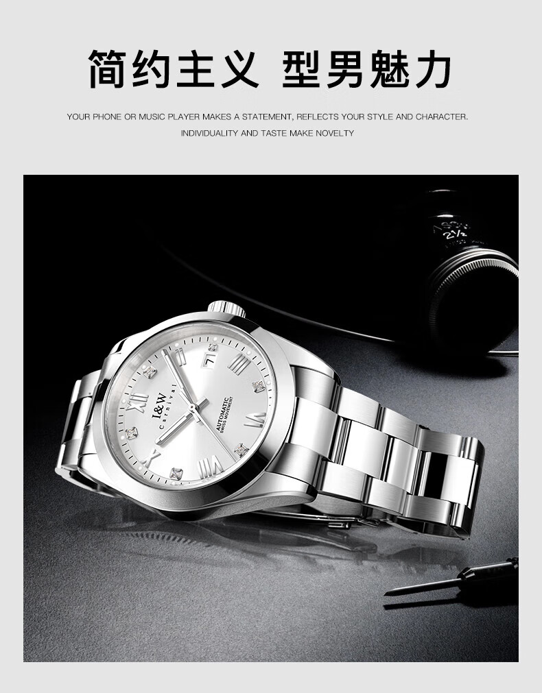 爱沃驰瑞士品牌IW手表男士机械表进口瑞士机芯夜光防水腕表品牌礼物手表 光圈雪花白【瑞士机芯】免费刻字