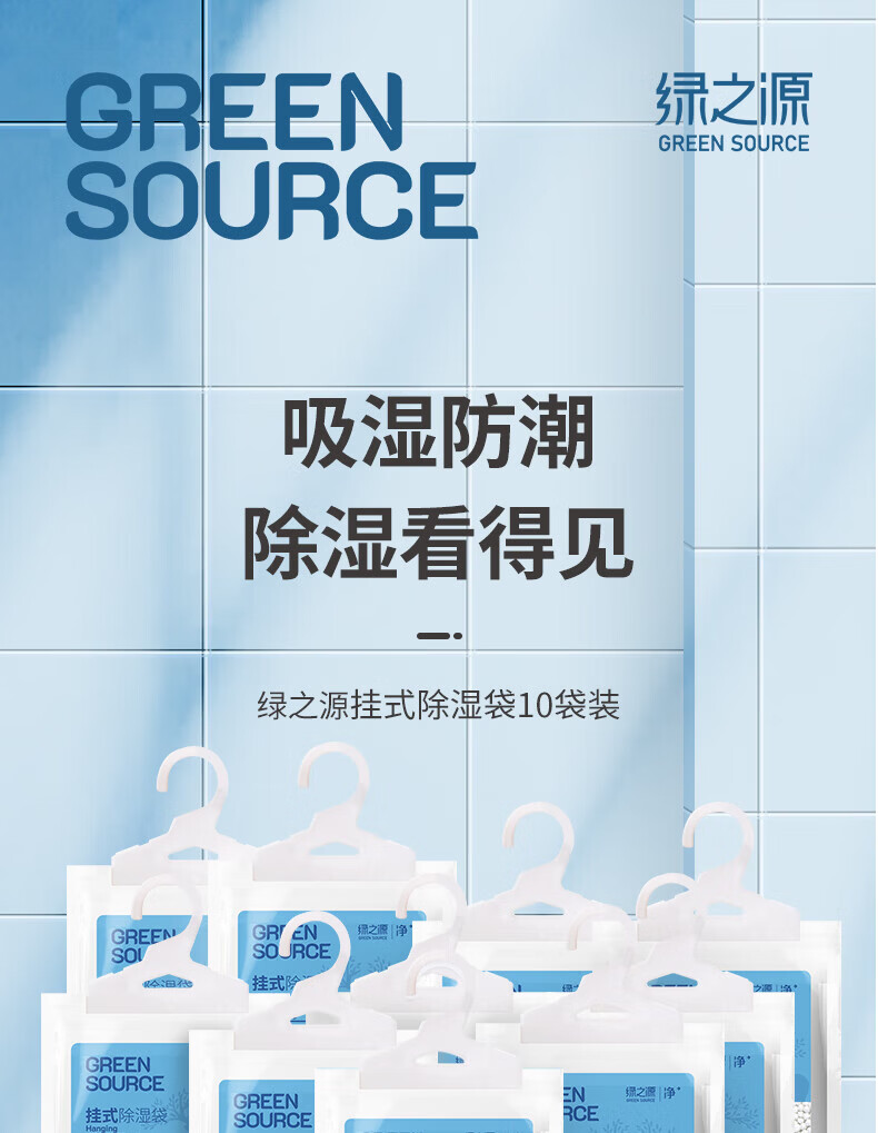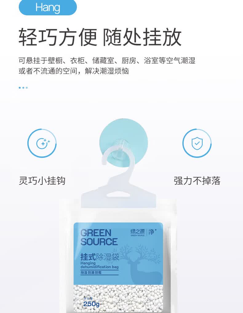 绿之源除湿袋可挂式250g10袋大容量衣柜宿舍床上被子除湿剂干燥剂吸湿包 【超大容量】除湿袋10袋
