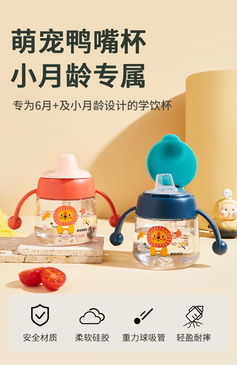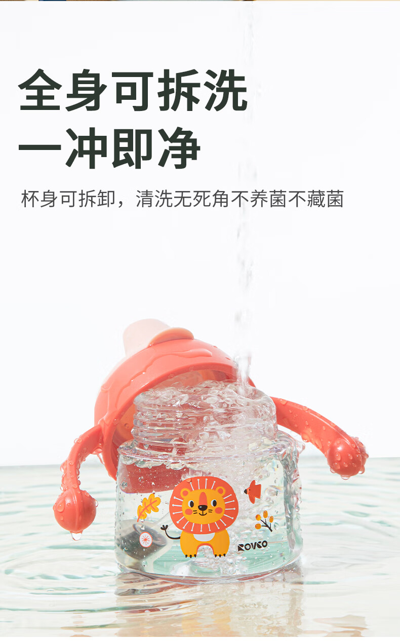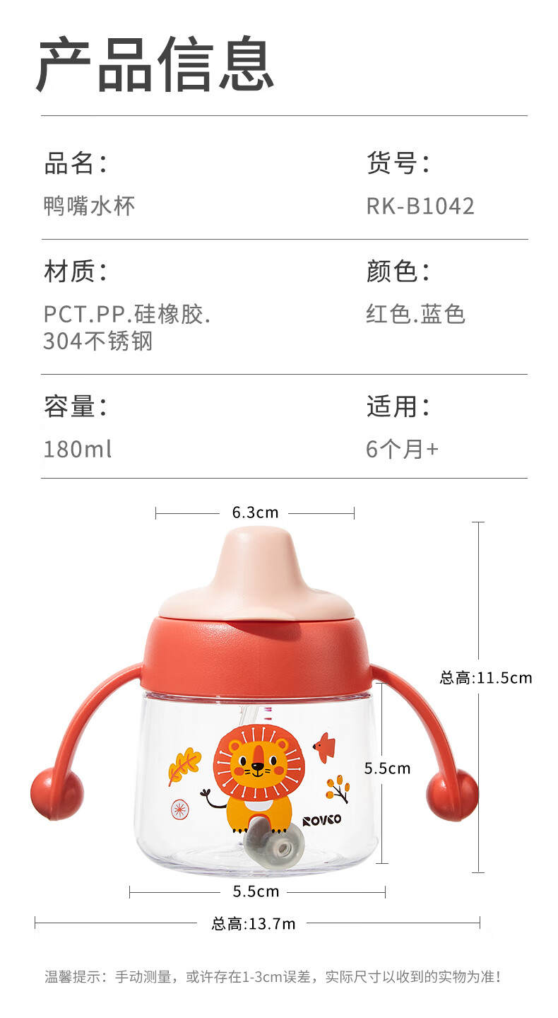 日康(rikang)儿童水杯 学饮杯宝宝鸭嘴杯 Tritan带重力球手柄 红色鸭嘴杯 180ml 赠替换鸭嘴*1