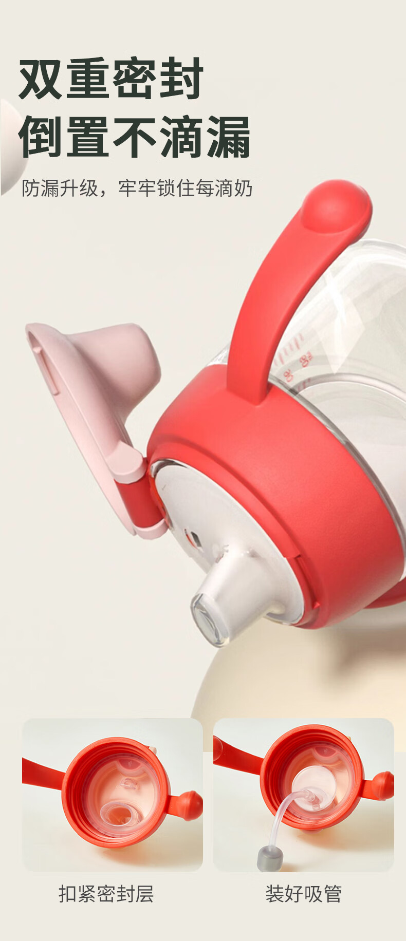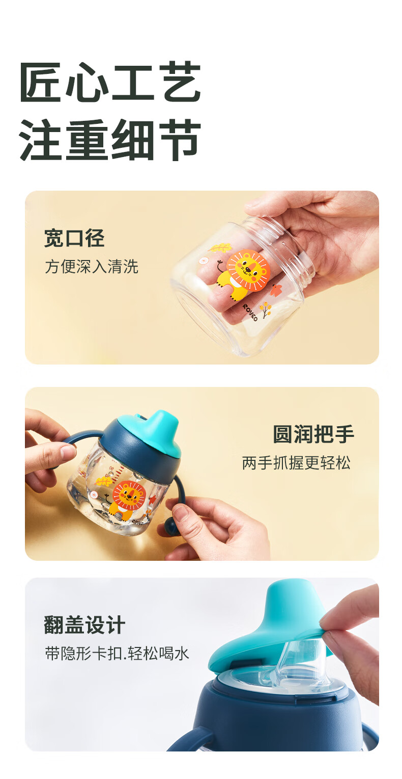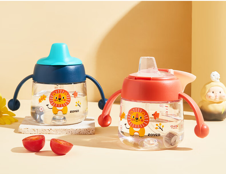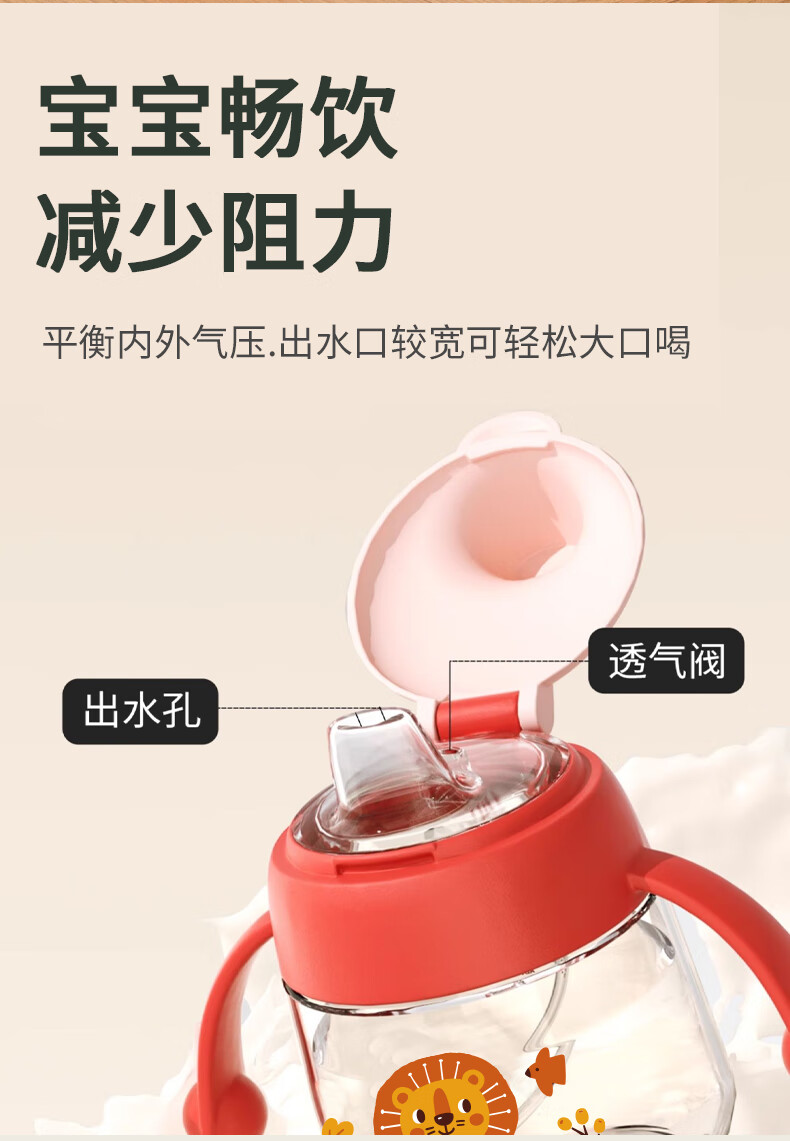 日康(rikang)儿童水杯 学饮杯宝宝鸭嘴杯 Tritan带重力球手柄 红色鸭嘴杯 180ml 赠替换鸭嘴*1