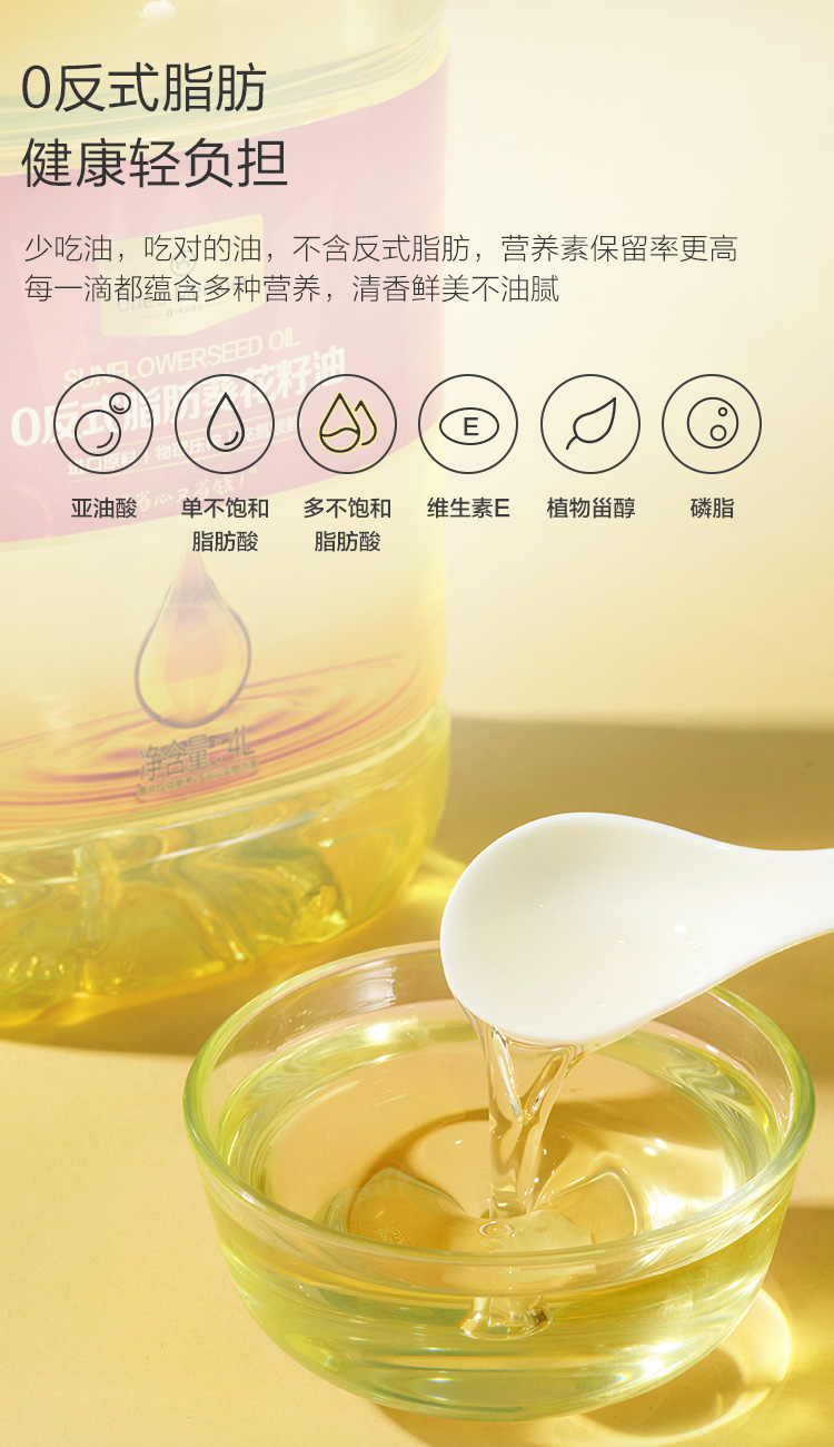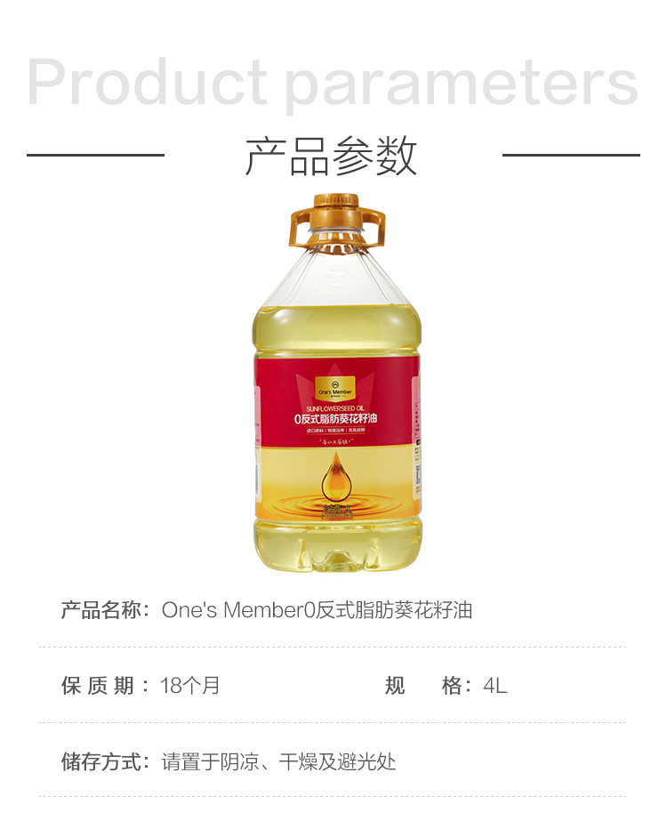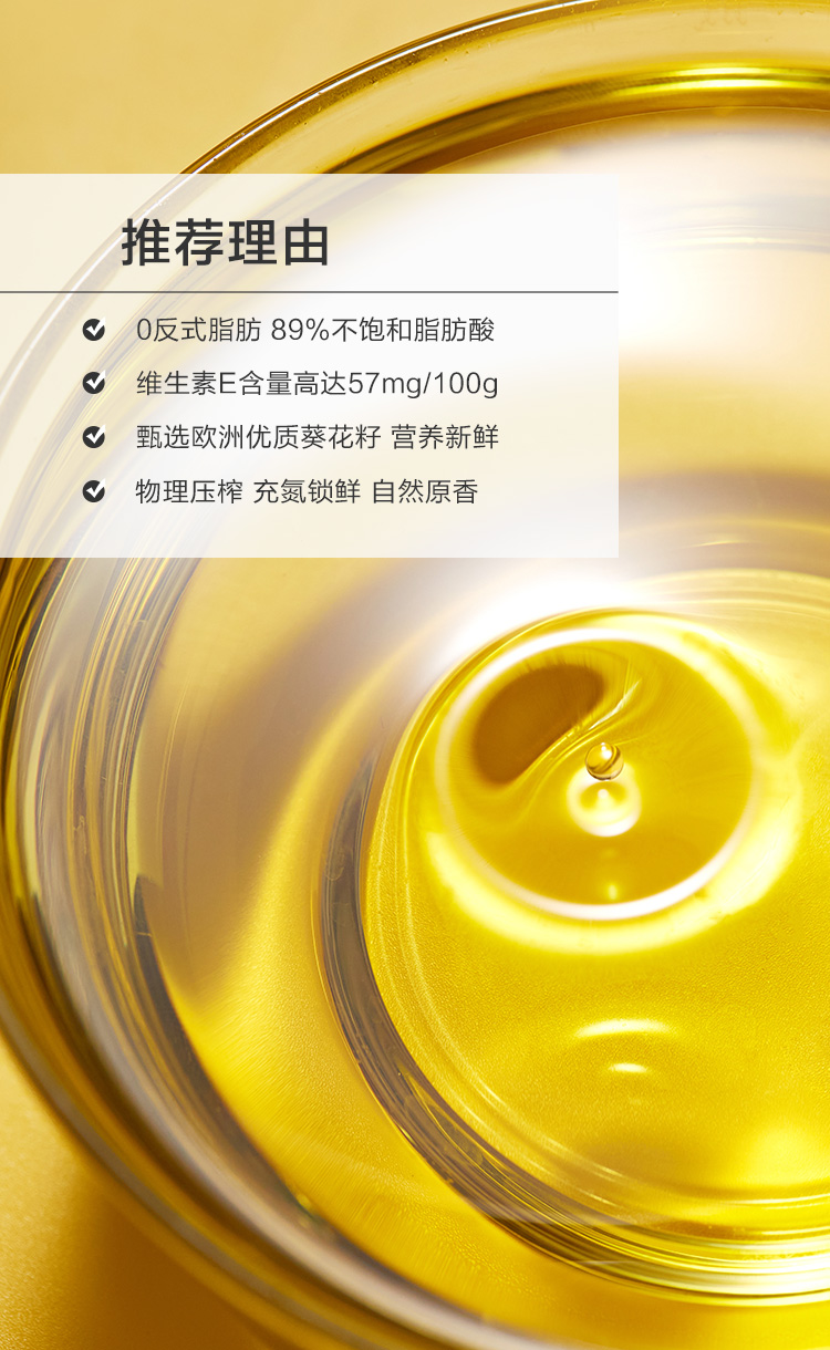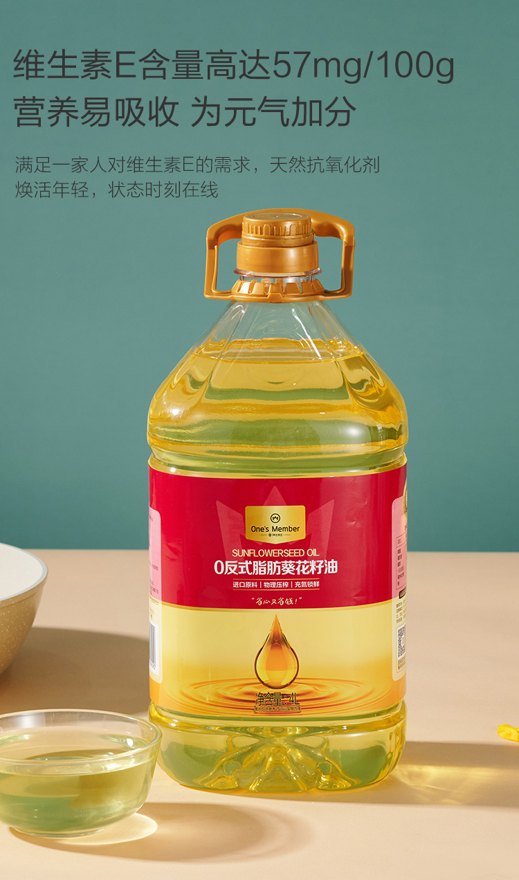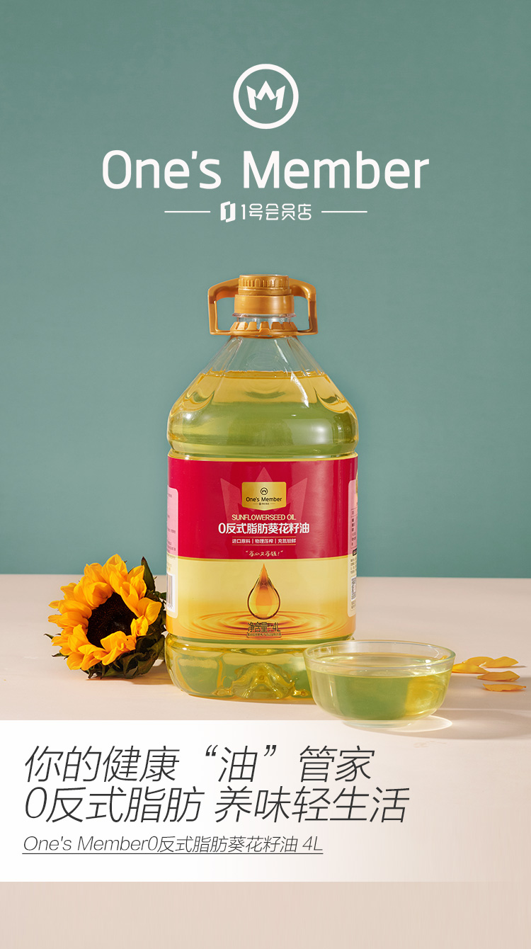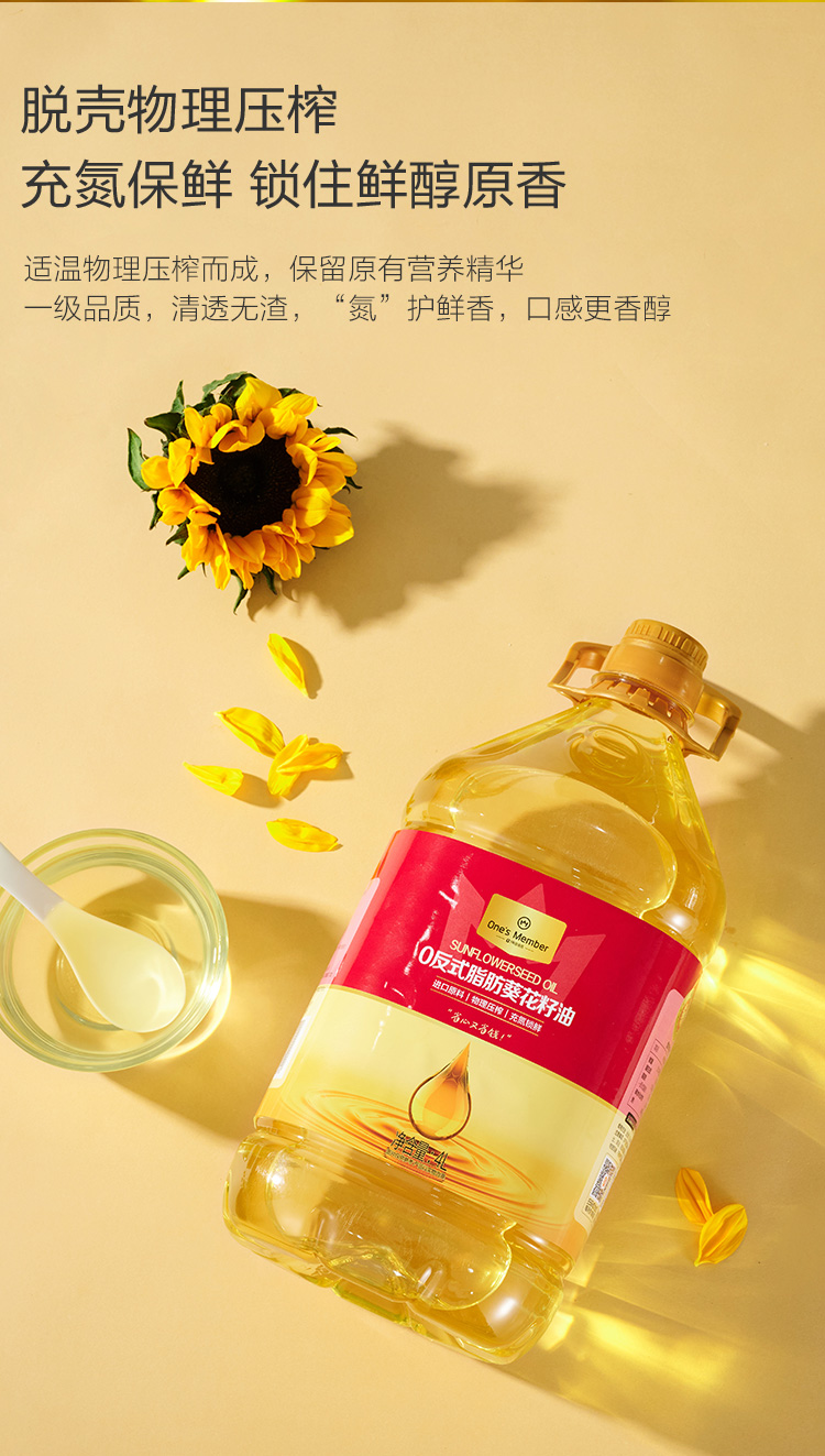1号会员店食用油 零反式脂肪葵花籽油4L 压榨一级 充氮锁鲜